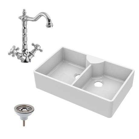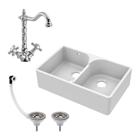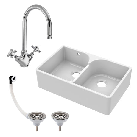 In stock£325.00£712.00Unit price /UnavailableDouble Bowl Fireclay Ceramic Butler Kitchen Sink Bundle with Stepped Weir, Classic Tap & Wastes