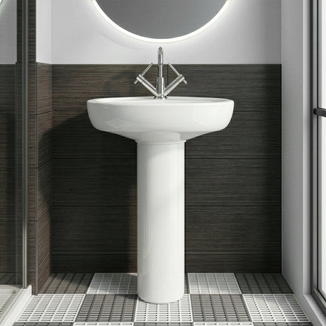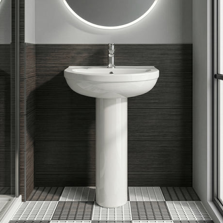 Anslow Round Ceramic Bathroom Basin and Full Pedestal - 550mm