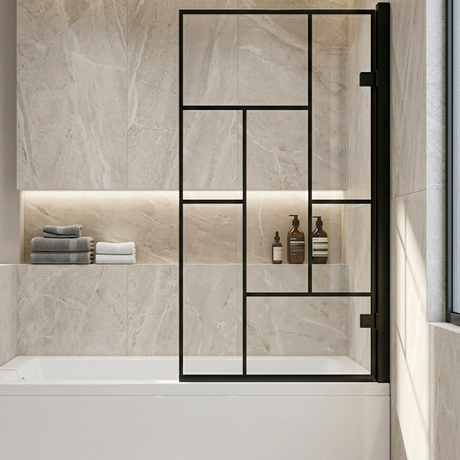 In stockFrom £79.00Unit price /UnavailableAbstract Modern Square Bath Shower Screen - Black, 830 x 1520 x 38 mm