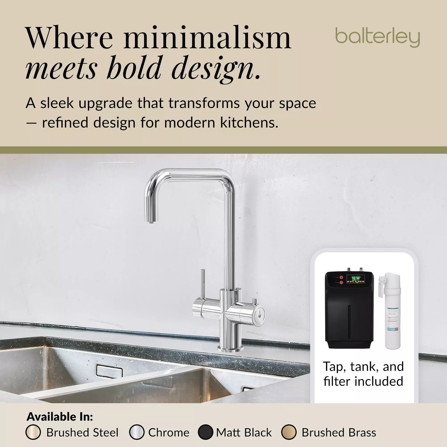 Transform your space with this innovative boiling water tap kit. It’s not just a practical addition—it’s a statement piece that enhances the beauty and functionality of your kitchen.