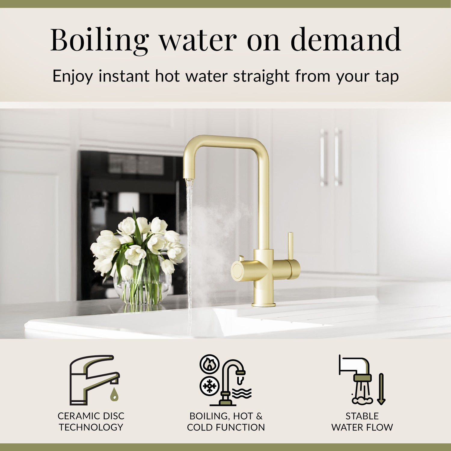 - Instant Boiling Water: No waiting, no fuss—enjoy instant boiling water at the twist of a handle, perfect for tea, coffee, cooking, or sterilising.