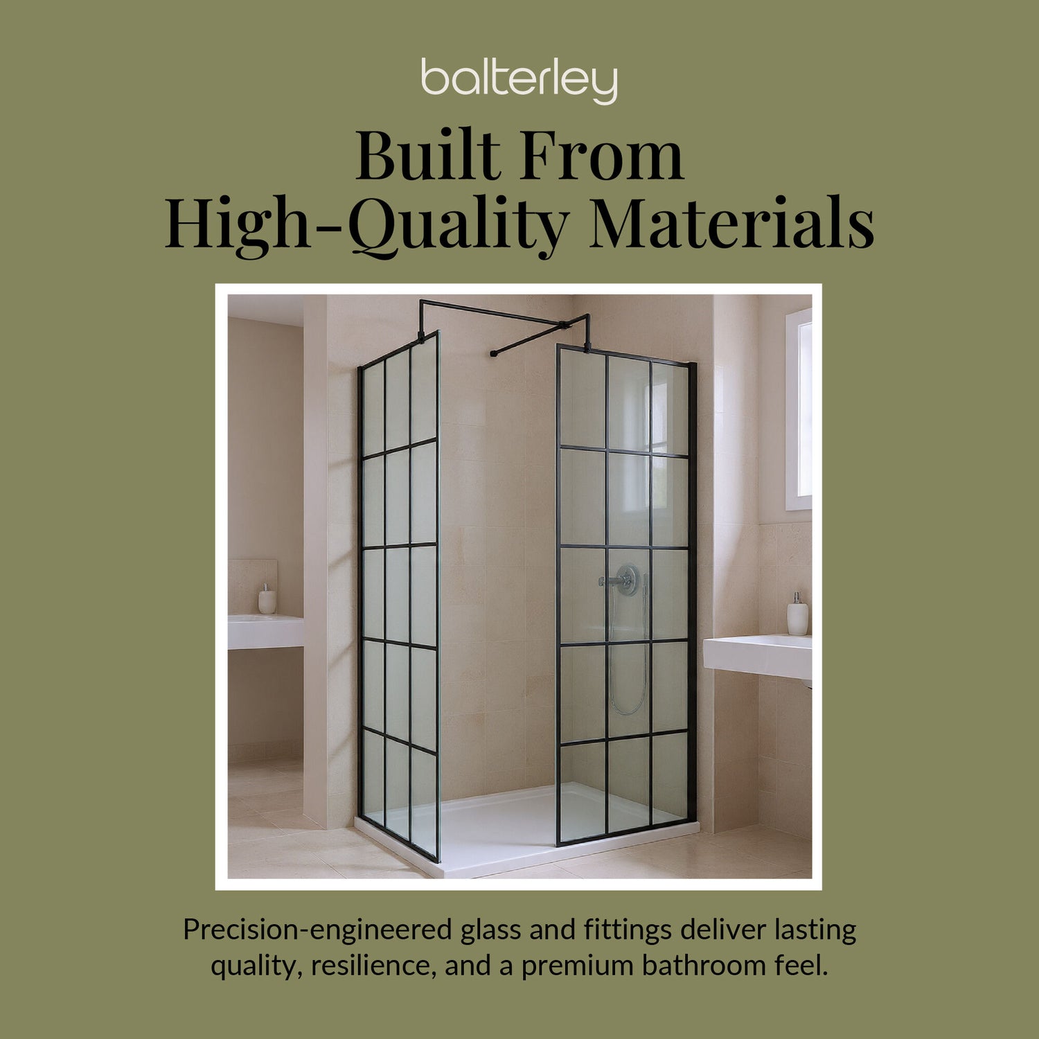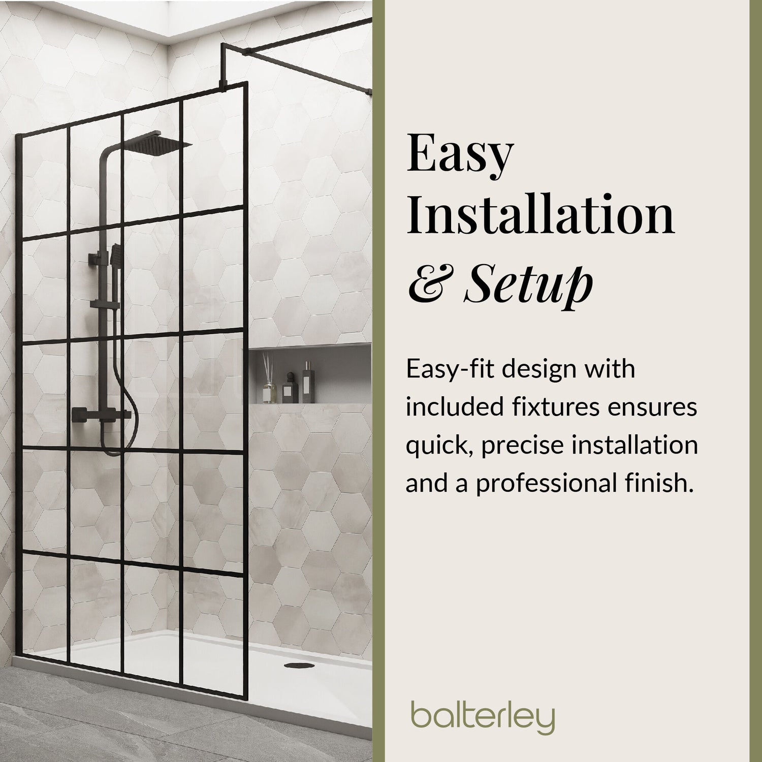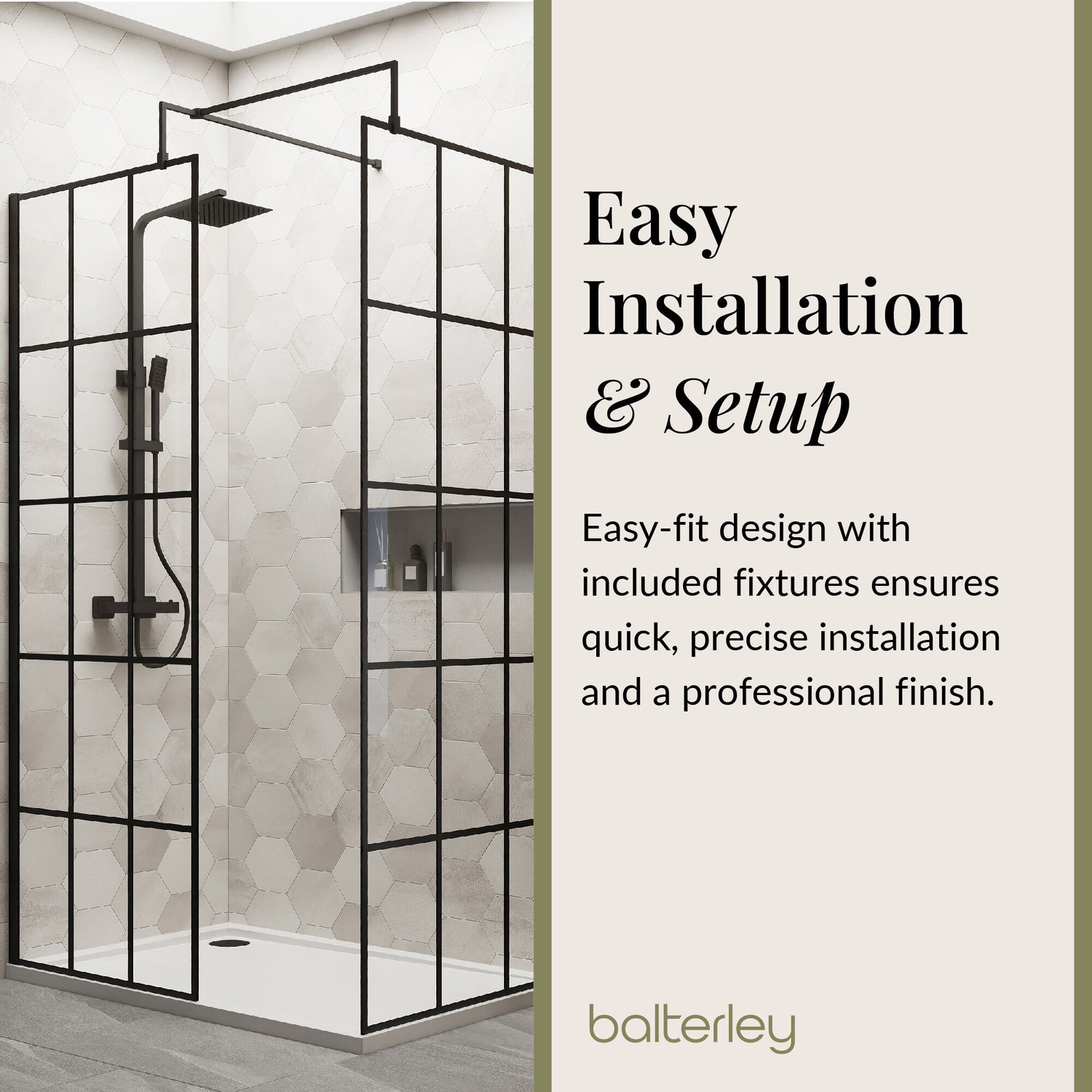 Create a bold and contemporary showering space with this striking walk in wetroom screen, designed to bring clean lines and confident style into your bathroom. The matt black framed design adds strong visual definition, turning your shower area into a standout feature while maintaining an open and airy feel.