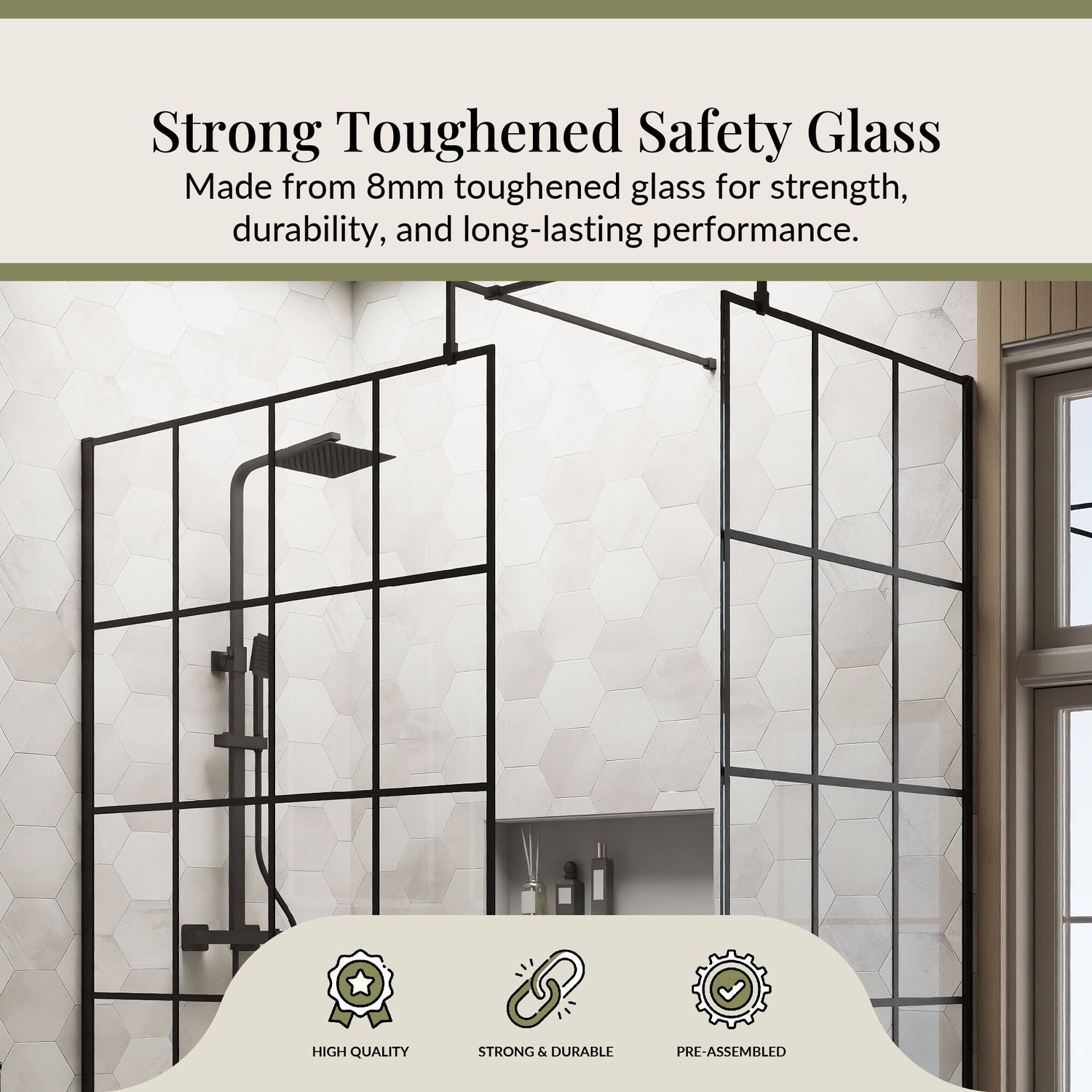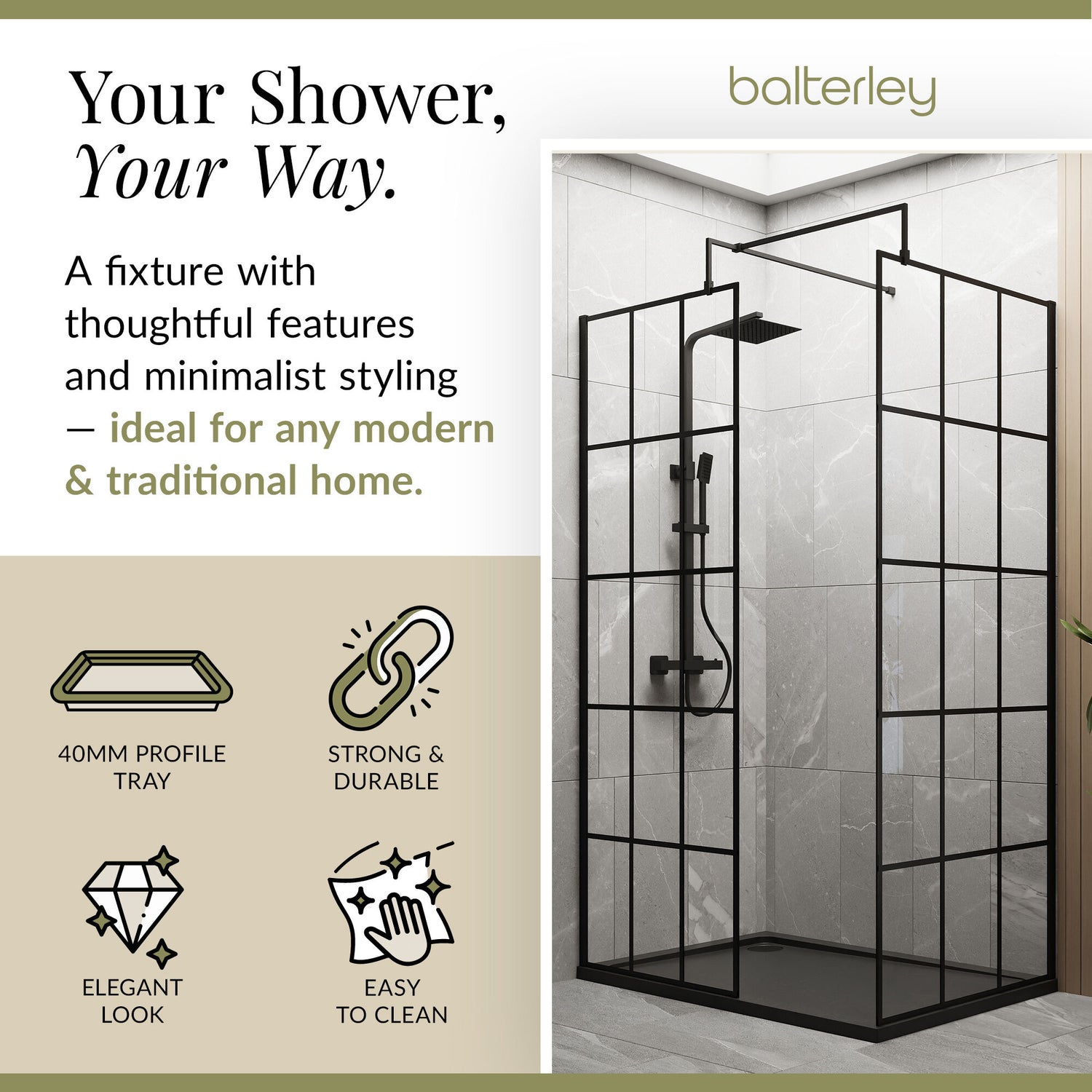 | Title | Contemporary 8mm Glass Walk In Wetroom Screens with Matt Black Framed Design and Shower Tray - Choice of Size |