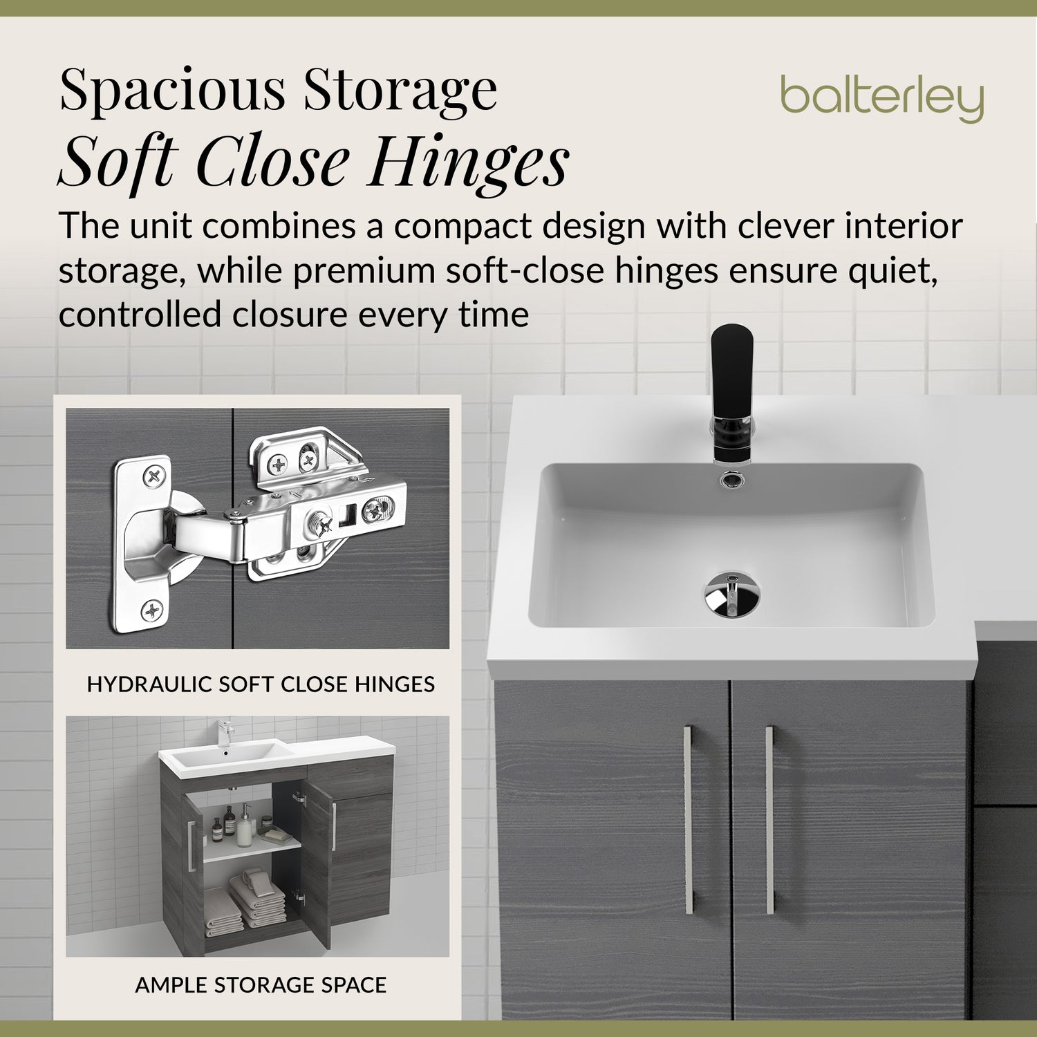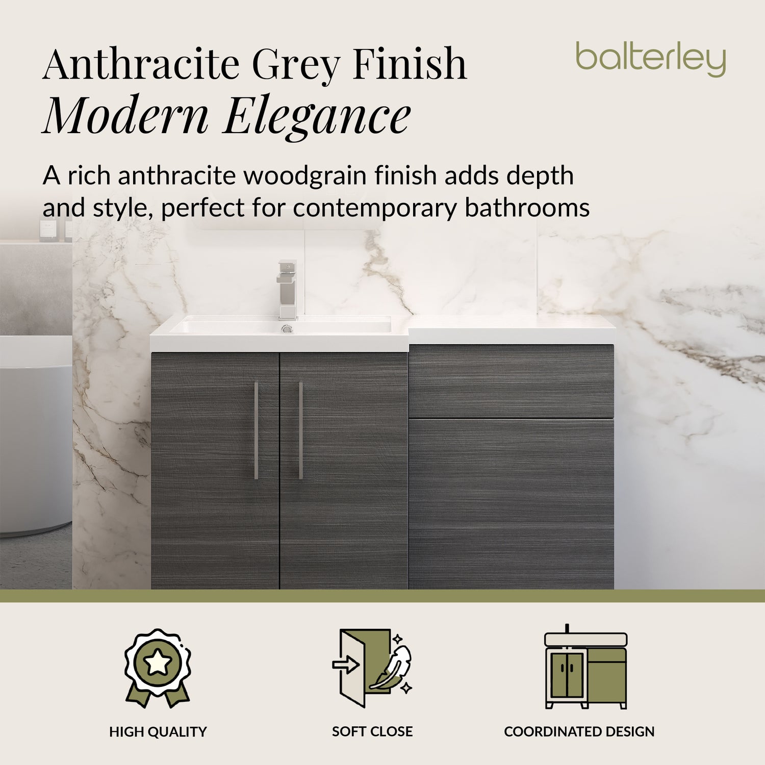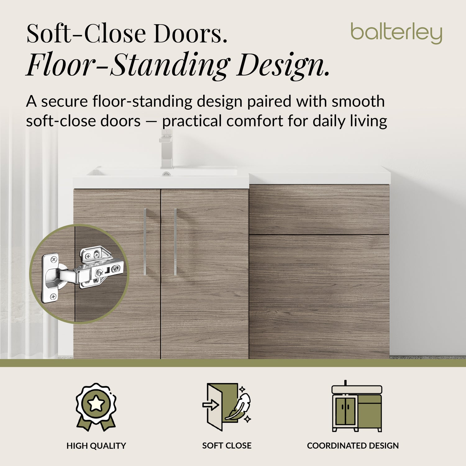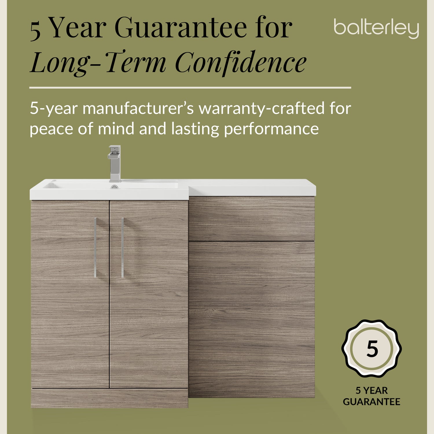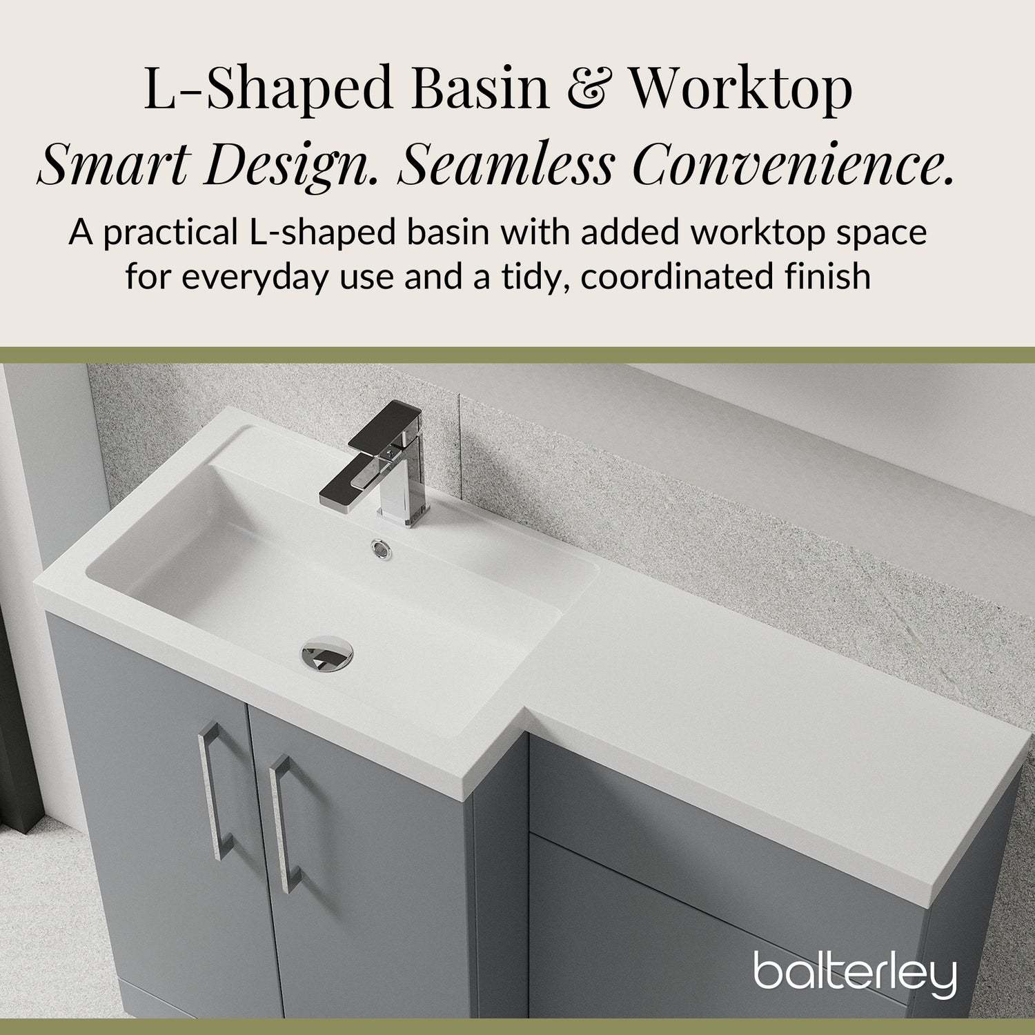 Bring modern elegance and practical storage to your bathroom with the Balterley 1100mm Left-Hand Furniture Combination Vanity Basin and WC Unit collection. Designed for contemporary bathrooms, this unit combines a spacious vanity basin positioned on the left-hand side with integrated WC storage, creating a clean and cohesive look. Available in a wide range of finishes and handle options, it offers both aesthetic appeal and practical performance. Crafted from durable engineered materials, this unit ensures long-lasting functionality while complementing modern, traditional, and transitional interiors.