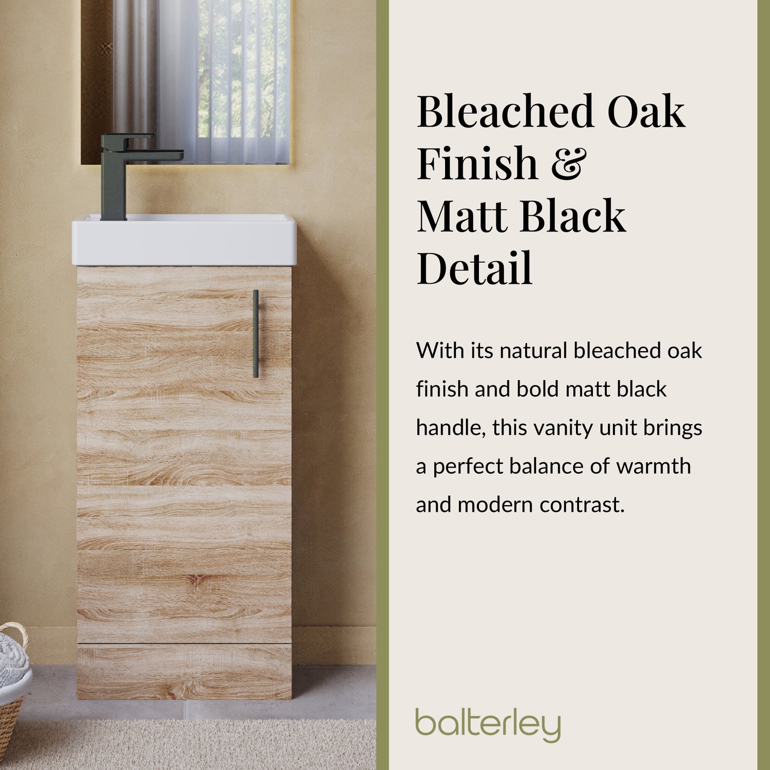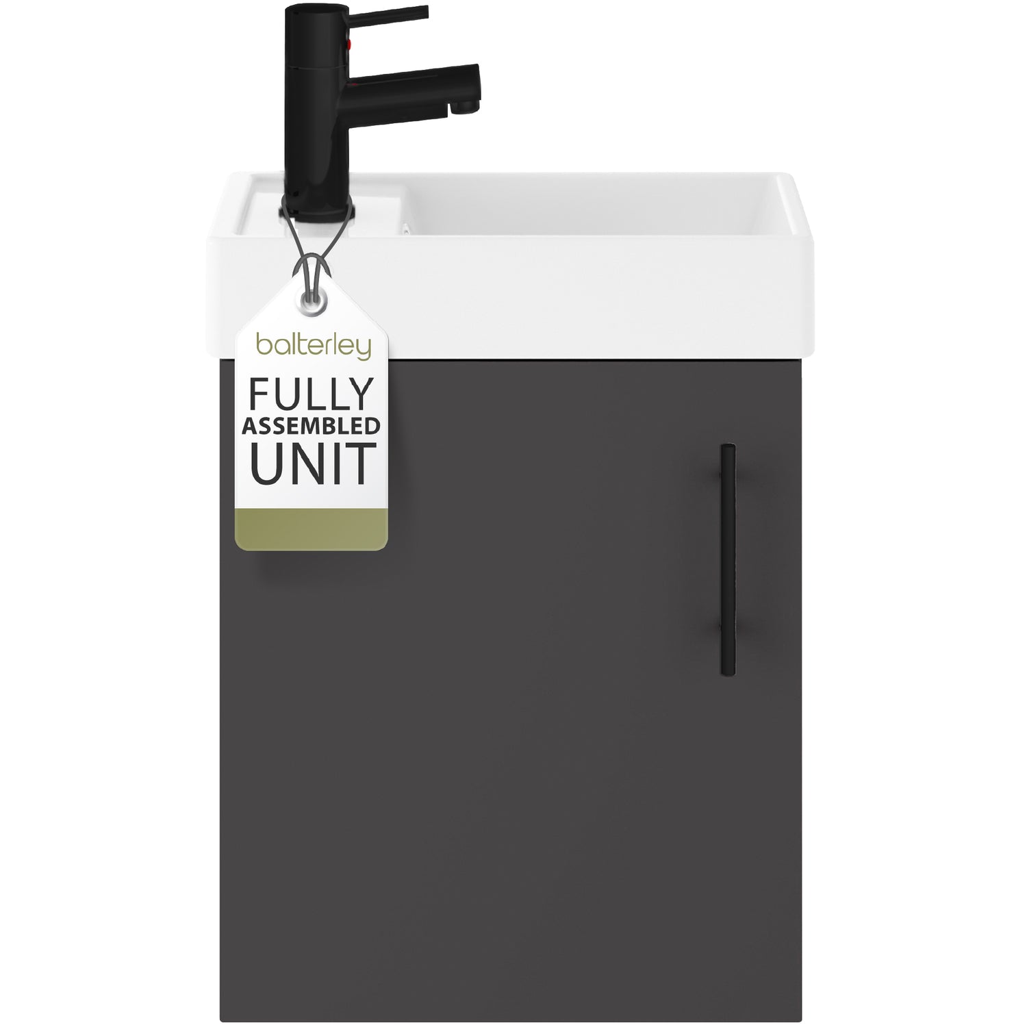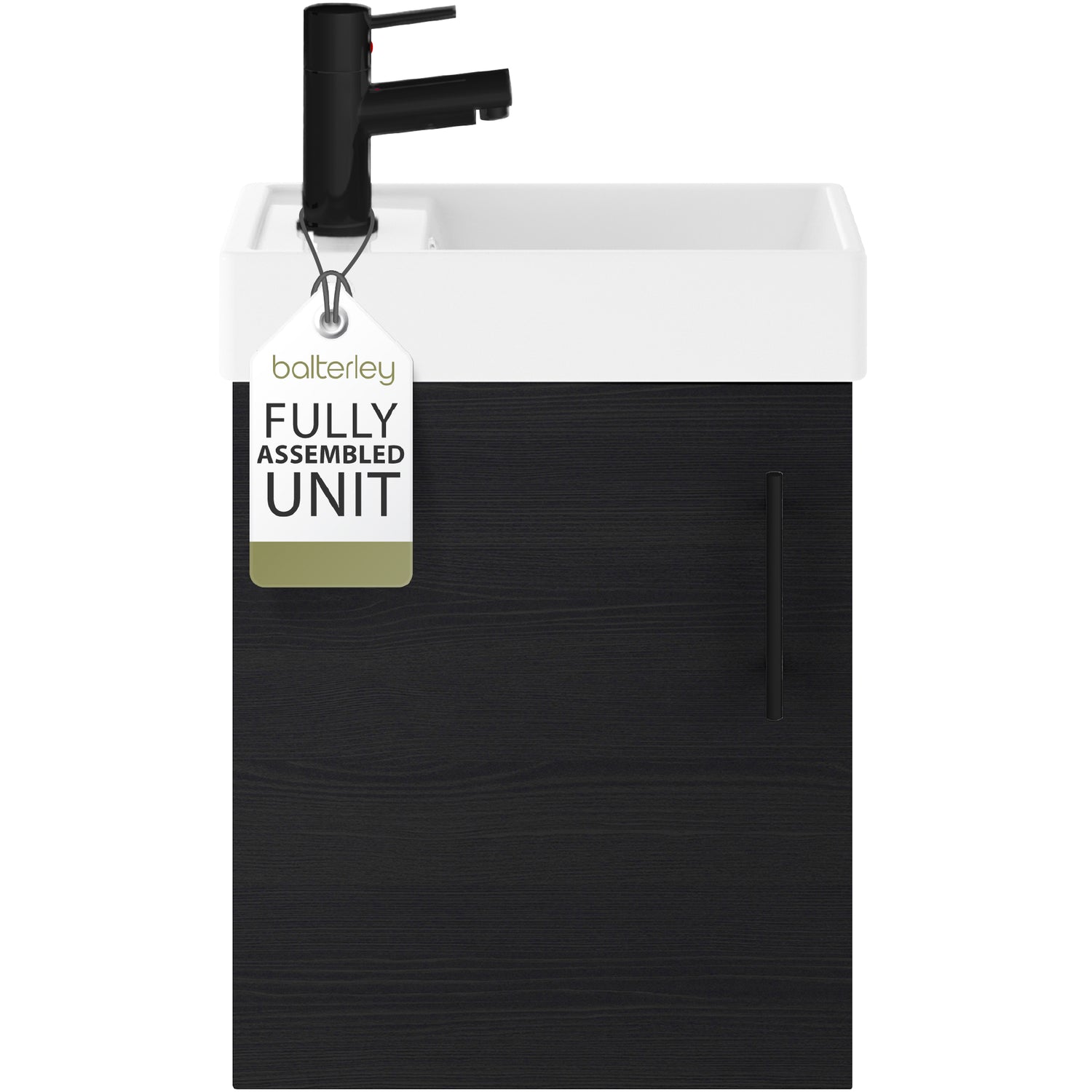 Bring a touch of modern elegance to compact bathrooms, cloakrooms, and en-suites with the Balterley 400mm Vanity Collection. Available in a choice of six on-trend finishes – Woodgrain Anthracite, Woodgrain Black, Gloss Grey, Gloss White, Satin Dark Grey, and Woodgrain Light Oak – each unit is paired with your choice of chrome, black, or brushed brass handles for a personalised finish.