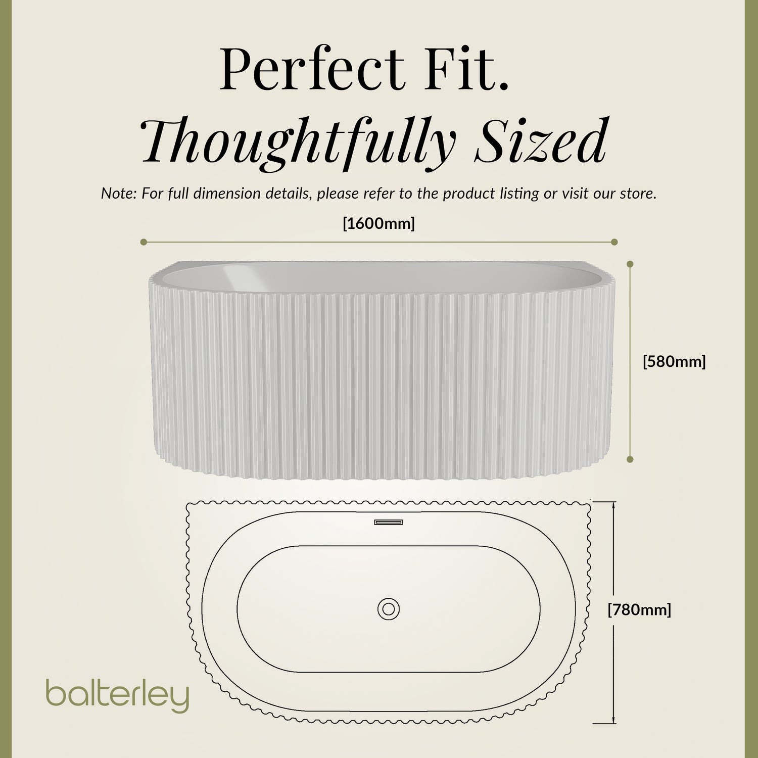 Contemporary Back To Wall Freestanding Bath with Ribbing from Balterley - Multiple Sizes Available - 1600 x 780mm is backordered and will ship as soon as it is back in stock.