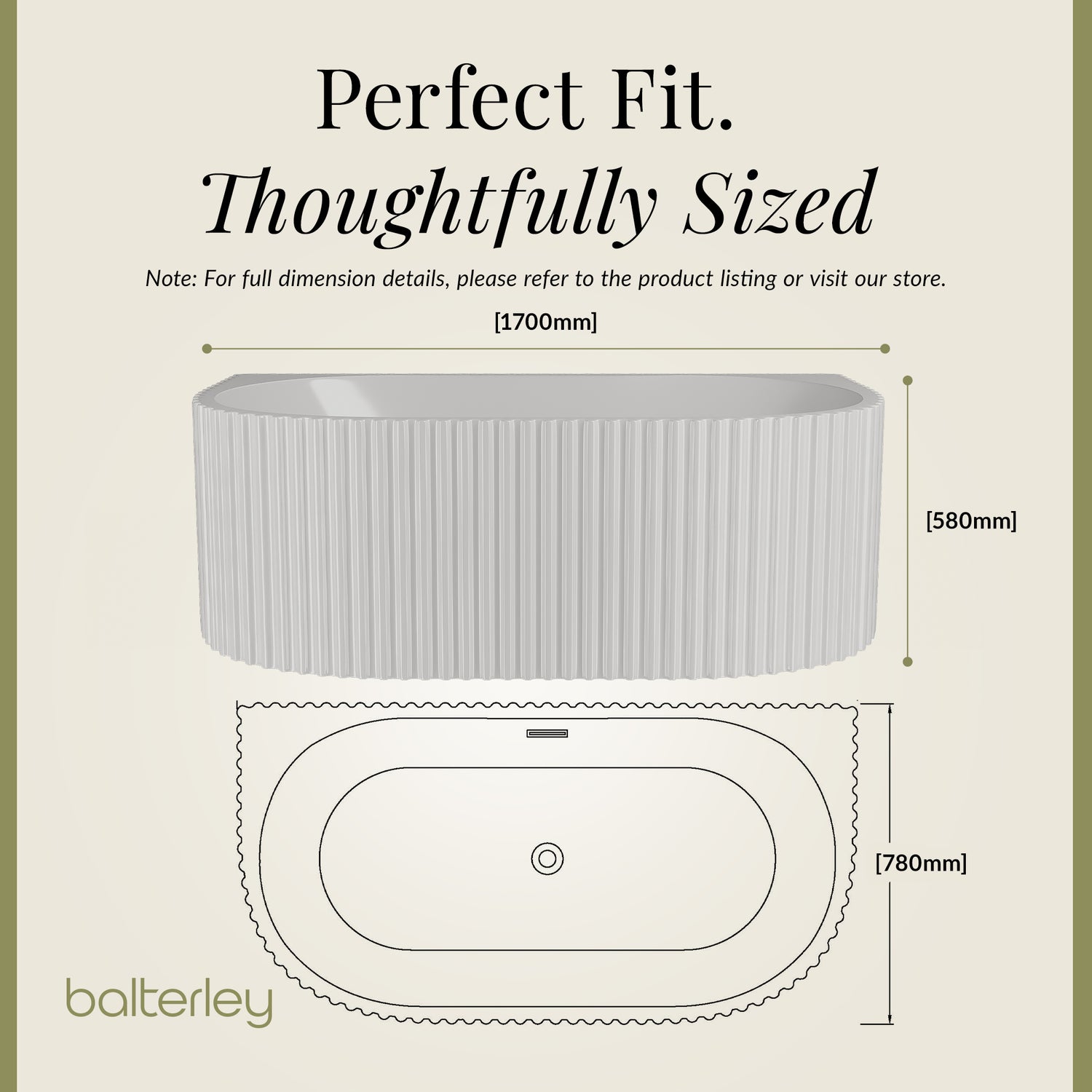 Indulge in luxury with our Balterley Back-to-Wall Freestanding Bath. This stunning design effortlessly combines contemporary style with practical functionality, featuring a striking ribbed texture that brings elegance to any bathroom. Its clever back-to-wall configuration creates a seamless, space-saving look while maintaining the luxurious feel of a freestanding bath. Finished in a pristine white and crafted from high-quality materials, it’s the perfect centrepiece for modern living.