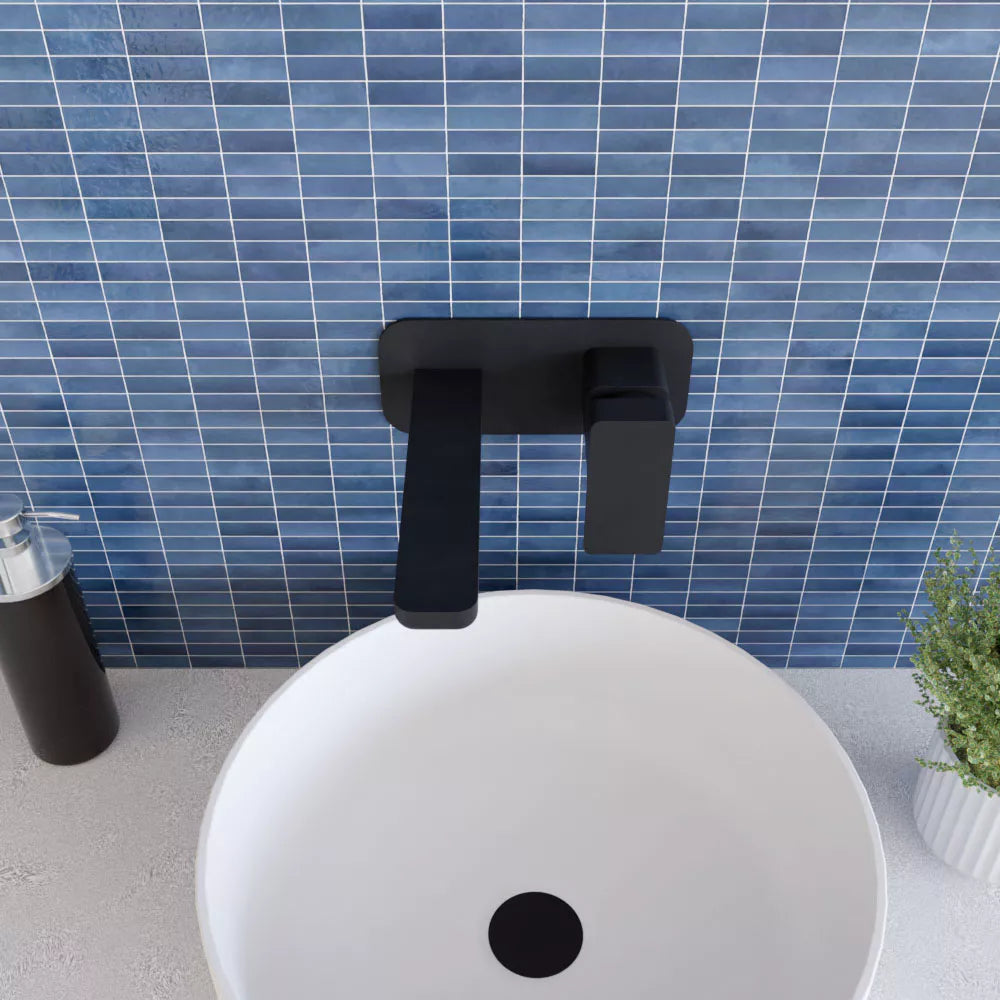 - Design: Contemporary square wall-mounted 2 tap hole mixer with back plate and lever handles