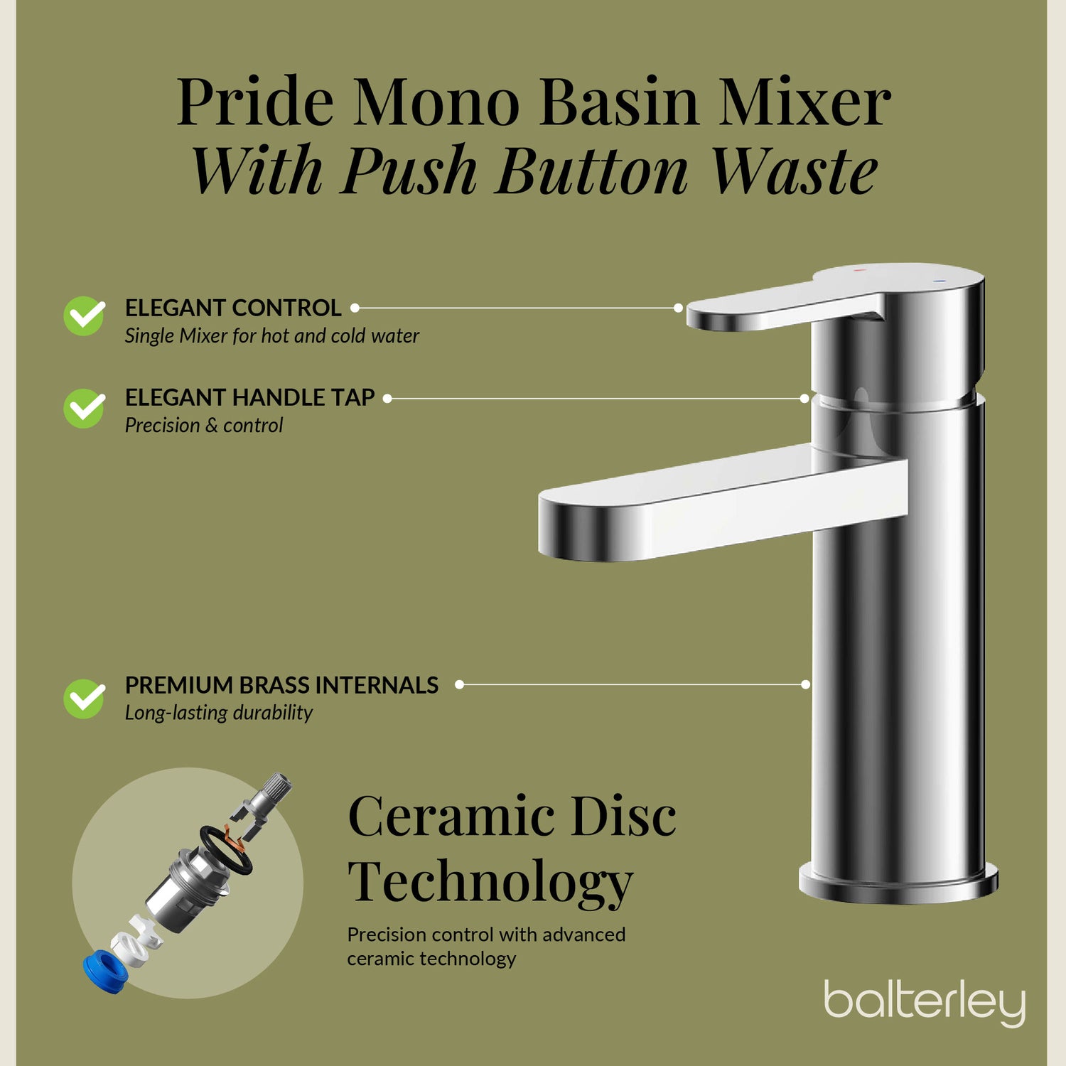 - Brassware: Mini Mono basin mixer tap (Chrome) with matching waste