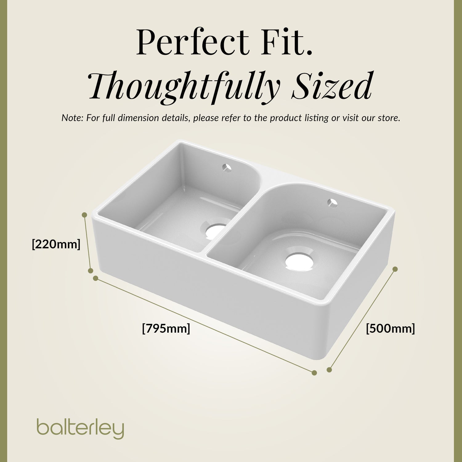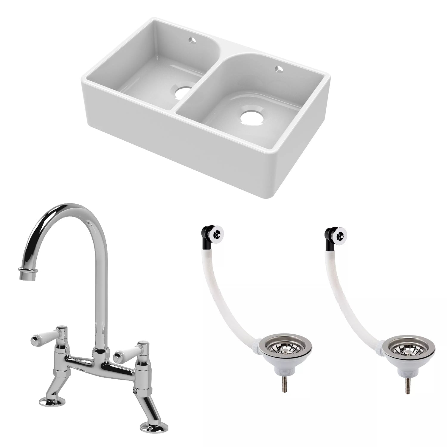 Double Bowl Butler Sink with Overflow - Choice of Tap and Waste - 795mm
