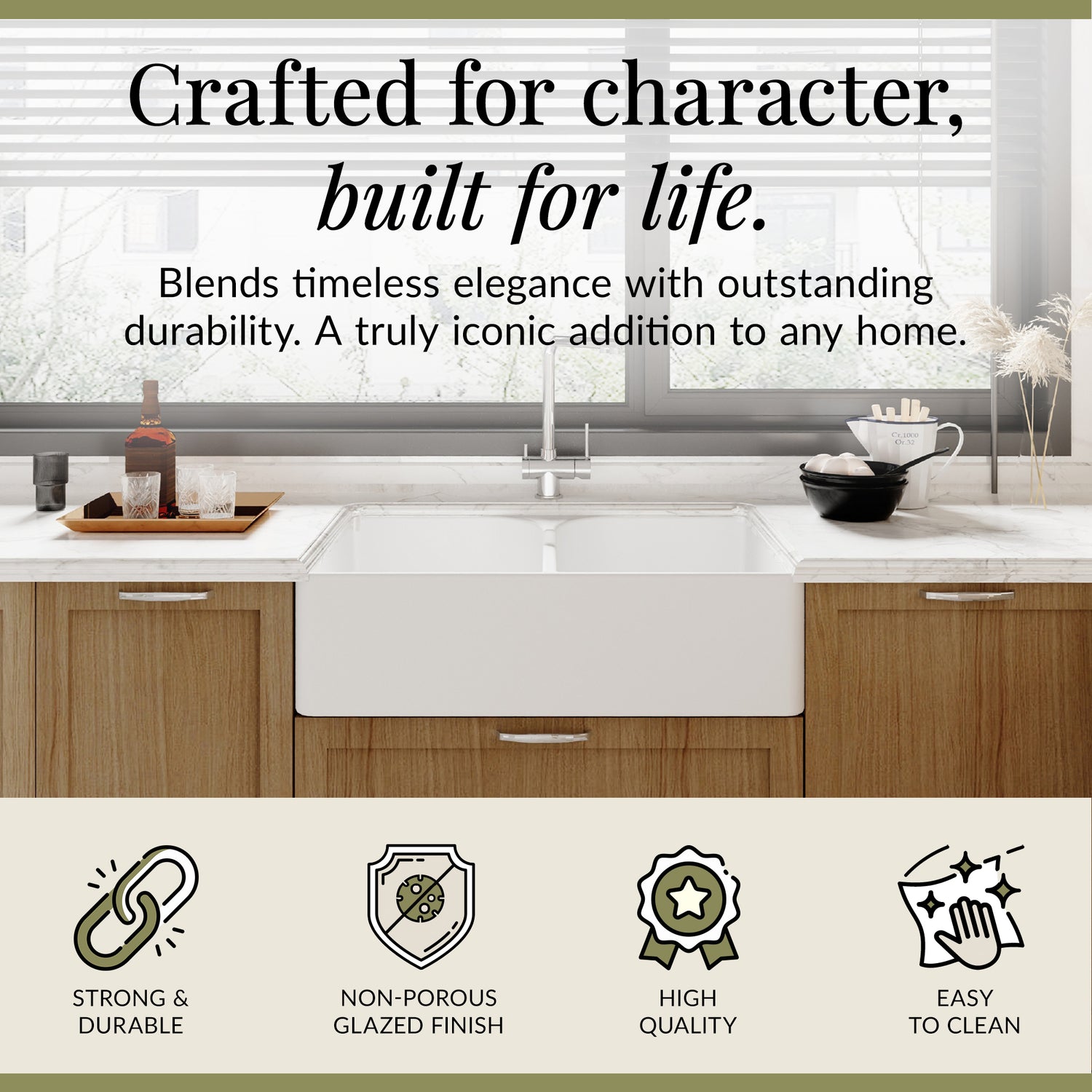 - Premium Fireclay Construction: Handcrafted using high quality Fireclay ceramic for exceptional durability and a smooth, non-porous surface that resists stains and scratches