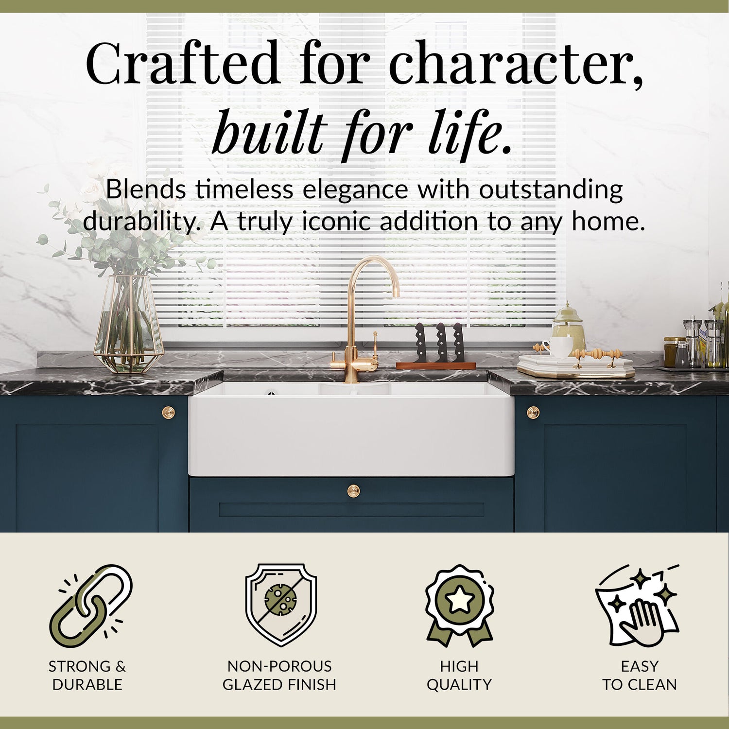 Designed for traditional and country-style kitchens, this butler sink works beautifully in period properties seeking authentic detail and contemporary homes wanting warmth and character. The white finish coordinates naturally with painted kitchen units, timber worktops, and natural stone surfaces, while the double bowl layout suits both compact galley kitchens and generous open-plan spaces where cooking and entertaining overlap.