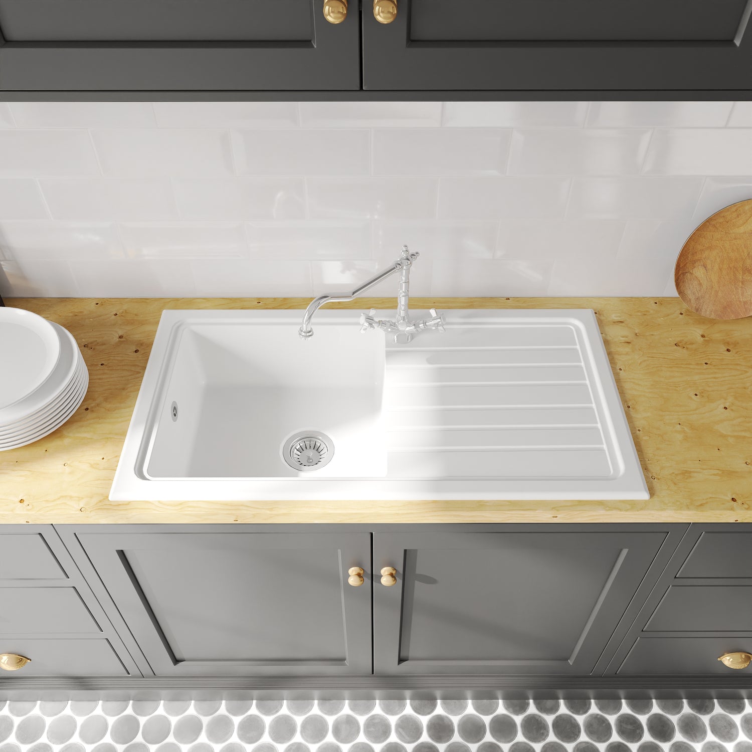 Single Bowl Fireclay Inset Kitchen Sink & Drainer, Classic Tap & Wastes, 1010mm