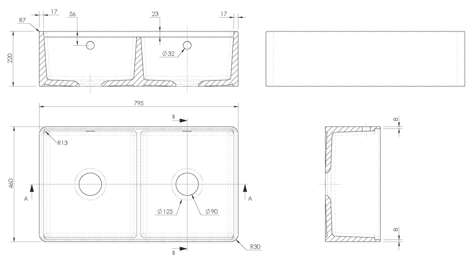- Material:Fireclay ceramic with a crisp white finish