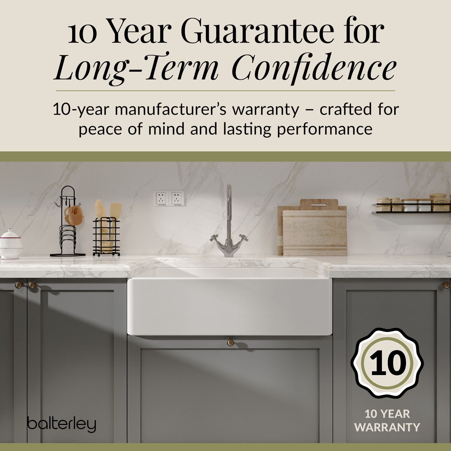 The non-porous surface resists bacteria and staining, making it both hygienic and easy to maintain. Undrilled for tap holes, offering freedom when deciding your tap style and placement, it works equally well with period-style pillar taps or modern mono mixers. Protected by a 10 years manufacturer's guarantee for long-term peace of mind.