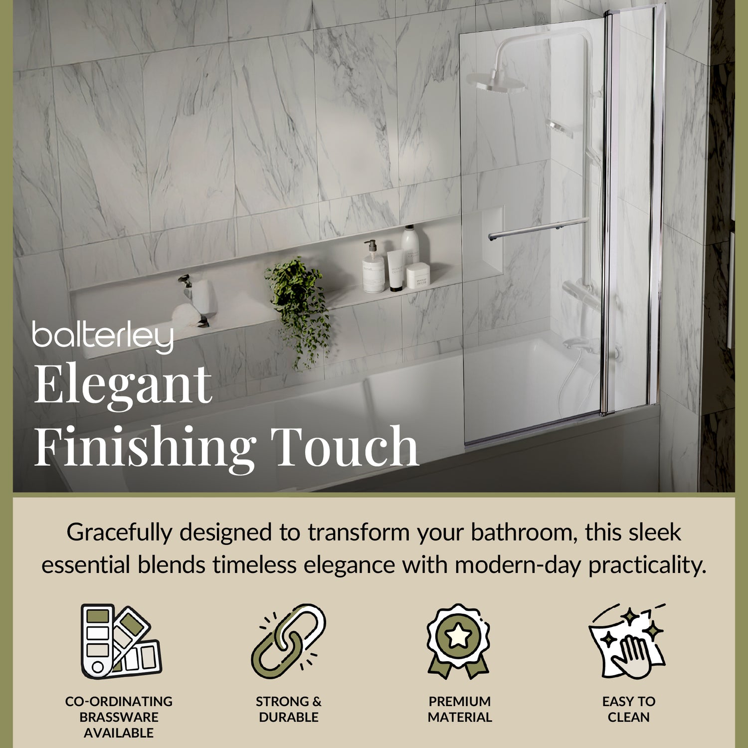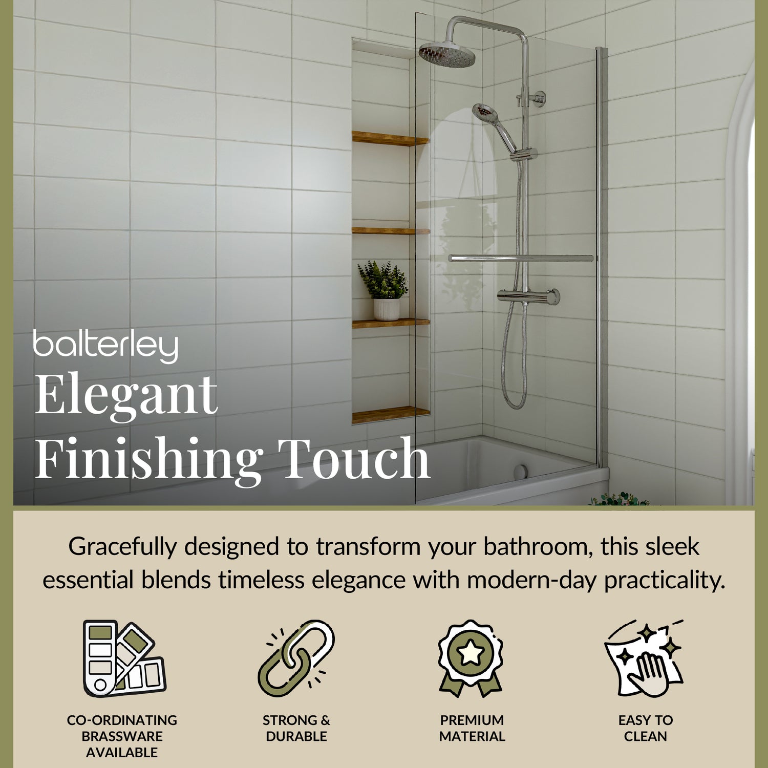 Enhance your bathroom with a Balterley Square Bath Shower Screen — a stylish, practical choice that turns your straight bath into a modern, comfortable showering space while keeping splashes under control and your bathroom looking its best.