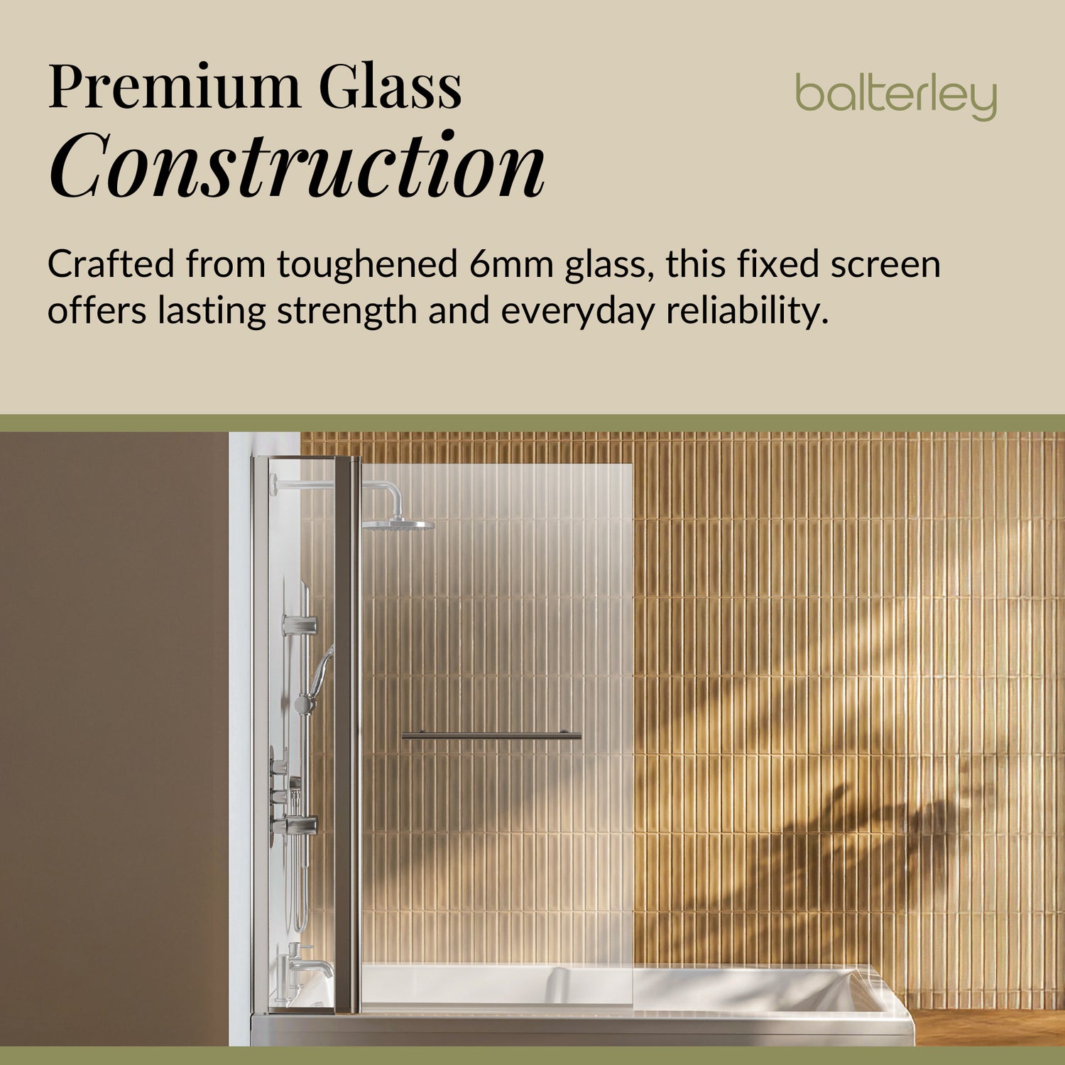 Upgrade your bath into a comfortable and stylish showering space with this beautifully designed Balterley Square Bath Shower Screen. Crafted from durable 6mm toughened safety glass and finished with your choice of premium frame style, it brings a clean, contemporary look to any bathroom. The reversible design offers flexible fitting on either side of the bath, while the sleek square-edge styling keeps your space bright, open, and clutter-free. Whether you prefer classic chrome or a warmer metallic finish, this screen blends everyday practicality with refined modern style.