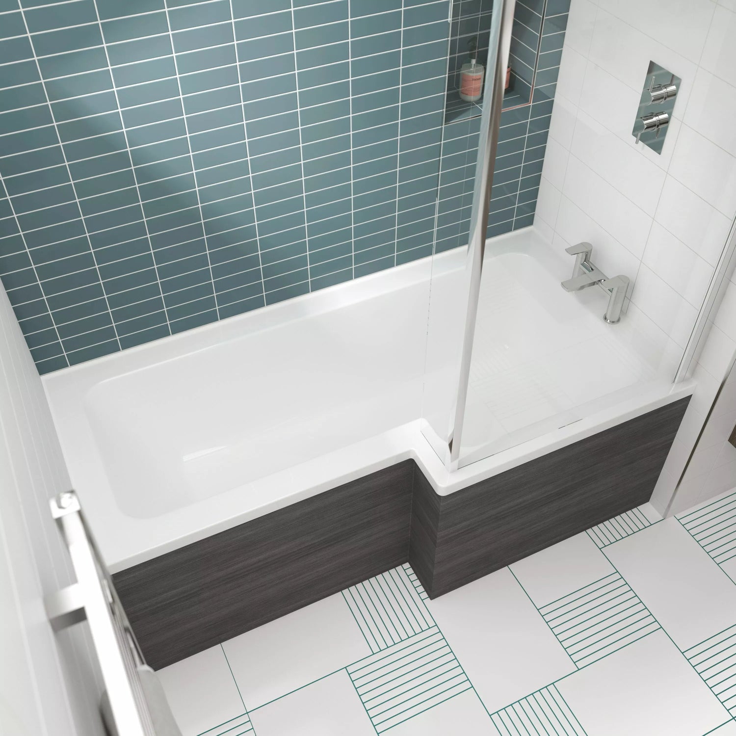 Whether you're upgrading a busy family bathroom or refreshing a compact ensuite, this versatile square shower bath from Balterley offers the perfect blend of form and function. Available in left or right-hand configurations and in three sizes — 1500mm, 1600mm, or 1700mm — this modern bath combines a spacious showering area with full bathing comfort in one space-saving design. Crafted from durable white acrylic with a crisp gloss finish, it brings a contemporary look and lasting quality to any bathroom style.