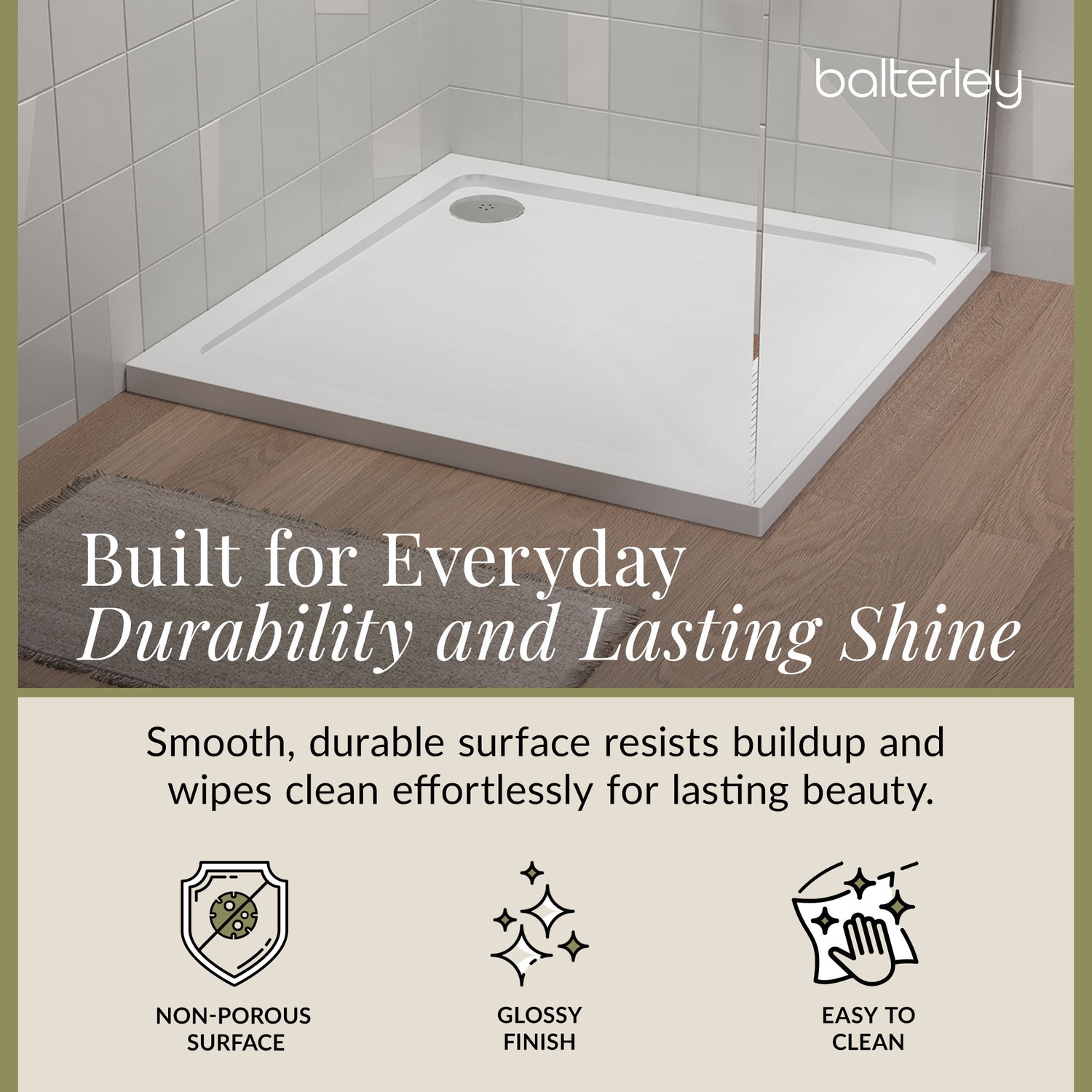 Bring modern elegance into your bathroom with this beautifully crafted square shower tray, made from premium high-quality resin for exceptional strength, smooth handling, and long-lasting performance. Designed to complement both compact and spacious layouts, its refined finish and slim silhouette create a clean, contemporary foundation for any showering environment.