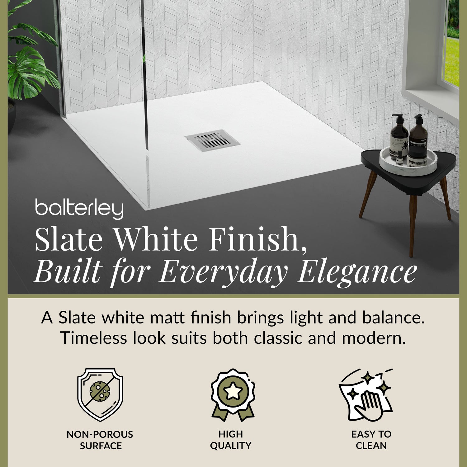 Made in Great Britain using high-quality resin, the Balterley Square Shower Tray is where design meets dependability. Available in a choice of white, grey, or slate black, this slimline tray features a textured finish that brings spa-like style to any bathroom. With its sleek 32mm profile and clean square form, it’s the ideal base for building a beautiful, modern shower space — timeless, tactile, and built to last.