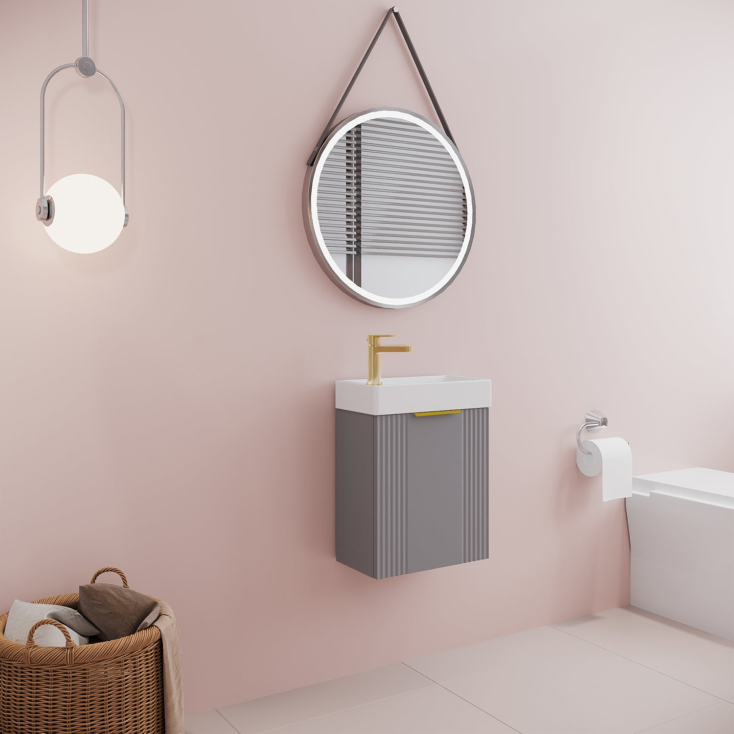 - Unit Type: Wall-hung cabinet with soft-close door and art-deco fluted detailing