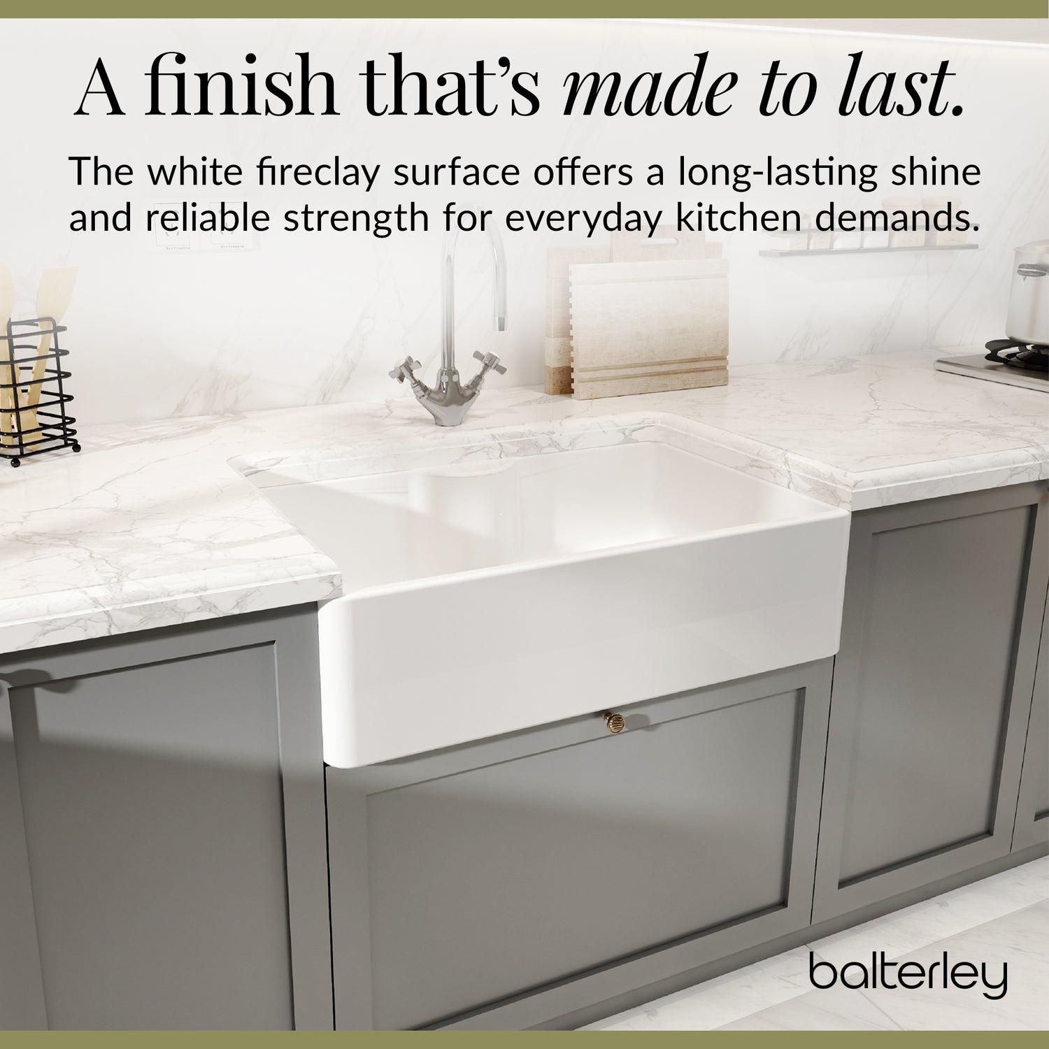 Bring timeless charm and versatile functionality to your kitchen with this handcrafted Fireclay Butler sink. Designed with a deep single bowl and smooth, non-porous white glaze, it exudes a classic aesthetic while complementing both modern and traditional interiors. Available in multiple sizes and configurations, you can choose options with or without a tap ledge, overflow, or tap hole to perfectly suit your kitchen’s design and installation needs. Built using traditional Fireclay techniques, this sink is not only durable but also easy to clean, making it a stylish and practical centrepiece for any home.