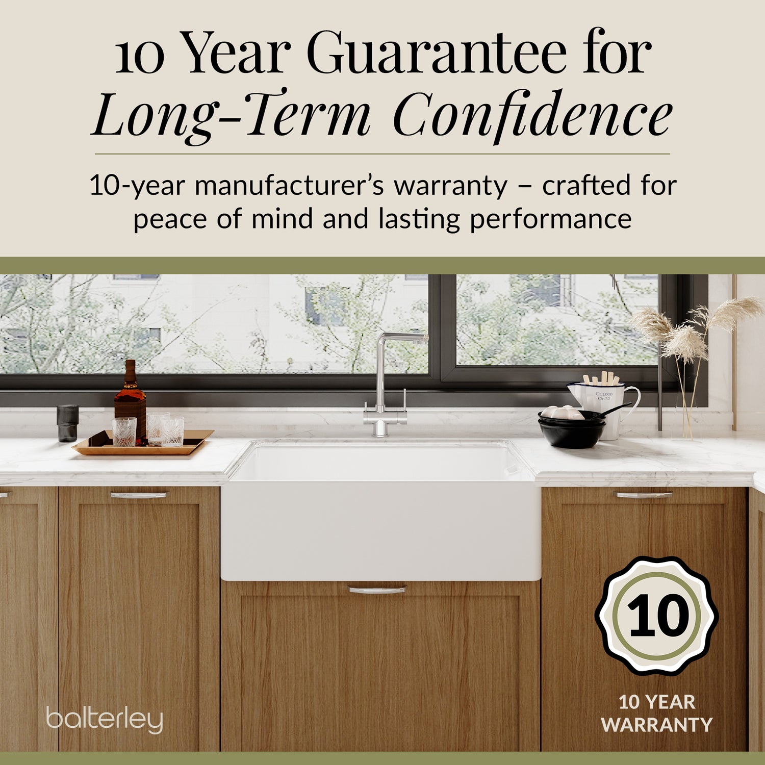 - Warranty: 10 Year manufacturer’s guarantee on the sink, 1 Year manufacturer’s guarantee