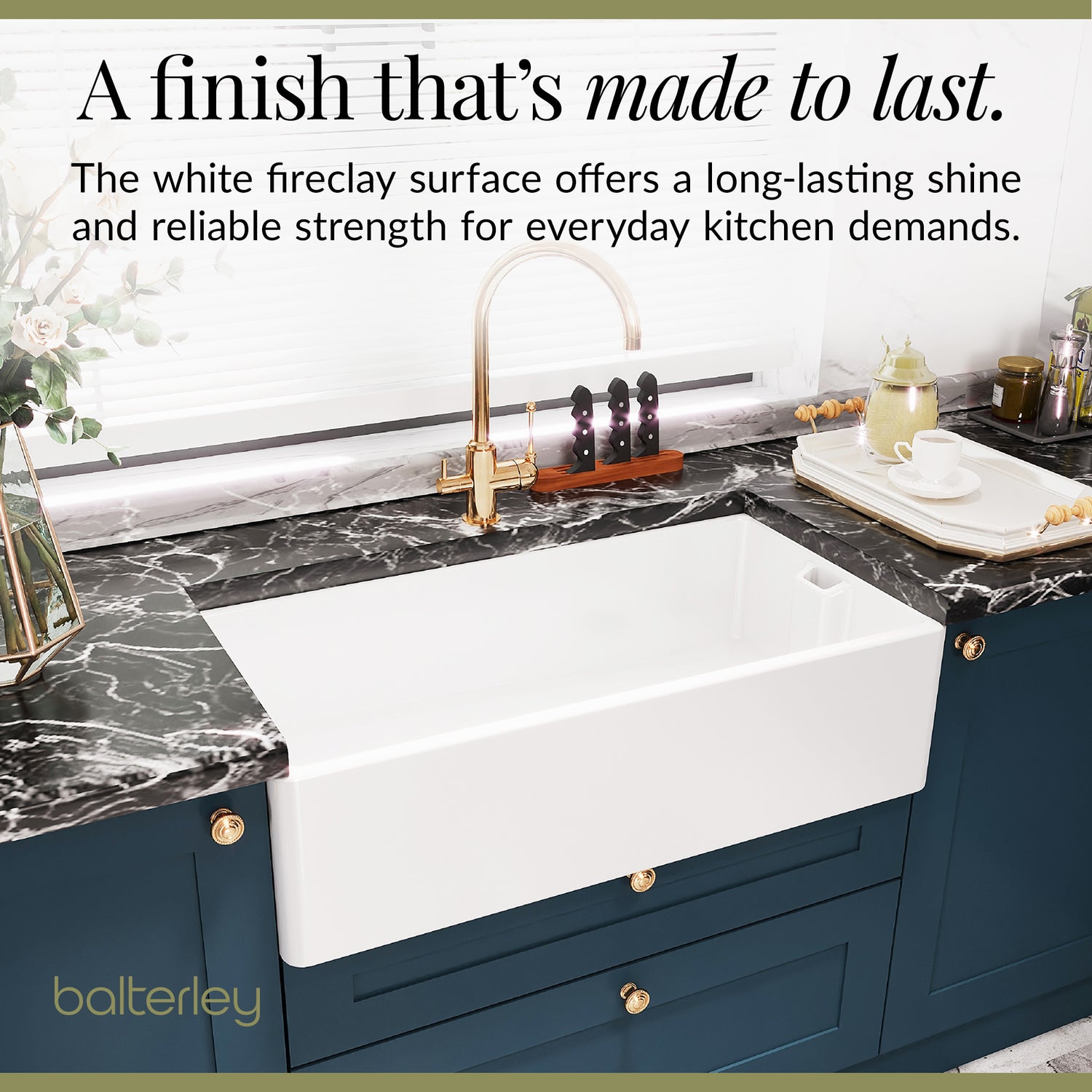 Transform your kitchen into a space of elegance and functionality with this stunning Belfast kitchen sink bundle. Designed with a perfect blend of beauty, durability, and practicality, this sink is the ultimate choice for homeowners who value both style and performance. Expertly handcrafted by Master Potters using traditional fireclay techniques, it boasts a level of craftsmanship that is as timeless as it is dependable. Not only is this sink a practical choice for everyday tasks, but it also serves as a striking focal point, bringing a touch of authenticity and character to your kitchen. By combining classic design elements with reliable functionality, this Belfast sink bundle truly embodies the perfect harmony of form and function.