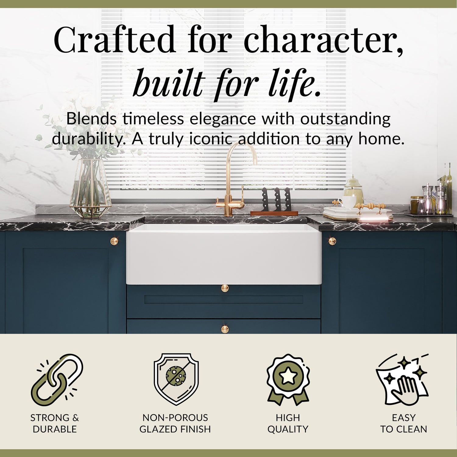 - Premium Fireclay Construction: Handcrafted using high-quality fireclay ceramic for exceptional durability and a smooth, non-porous surface that resists stains and scratches.