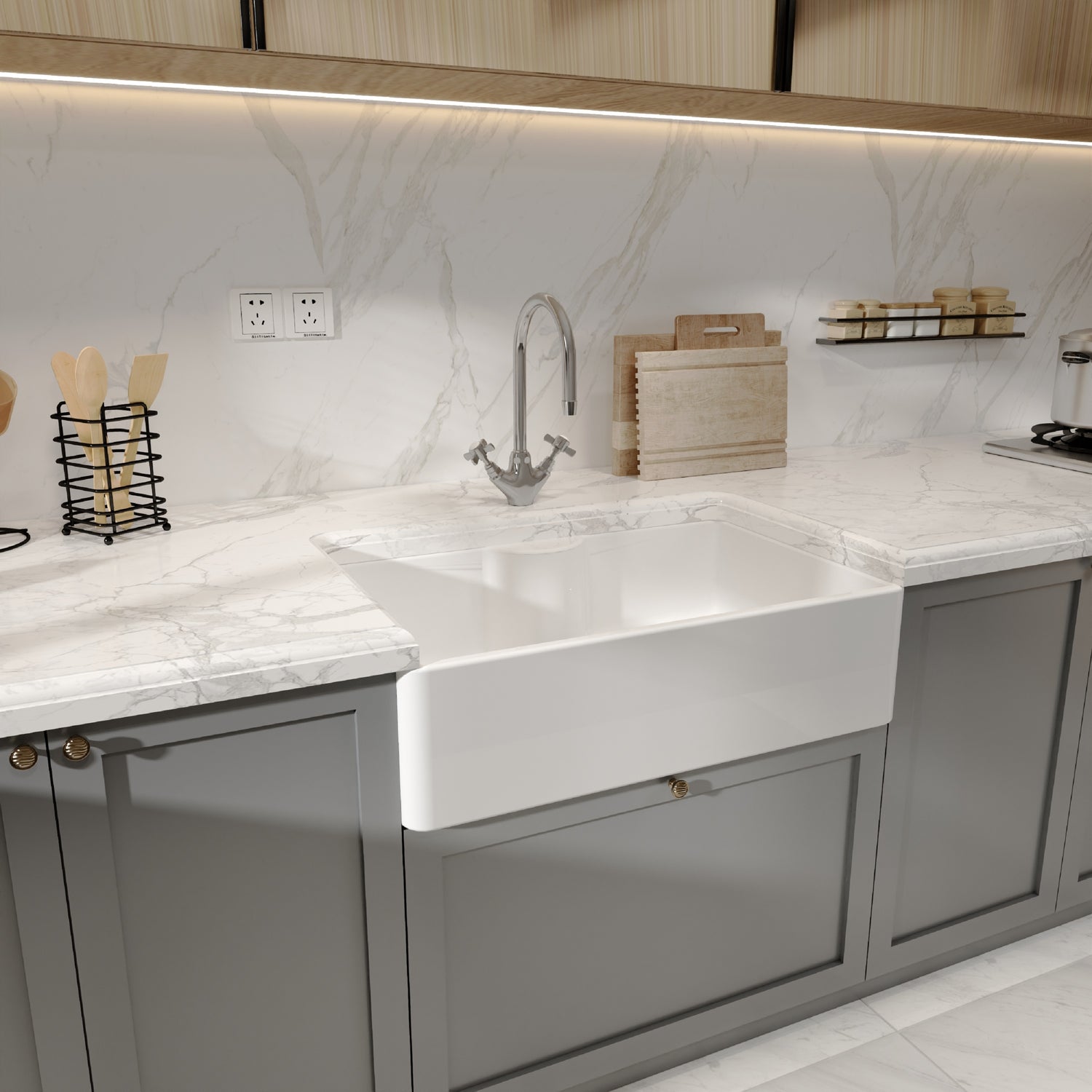 Single Bowl Fireclay Ceramic Butler Kitchen Sink with Tap Ledge & Strainer Waste