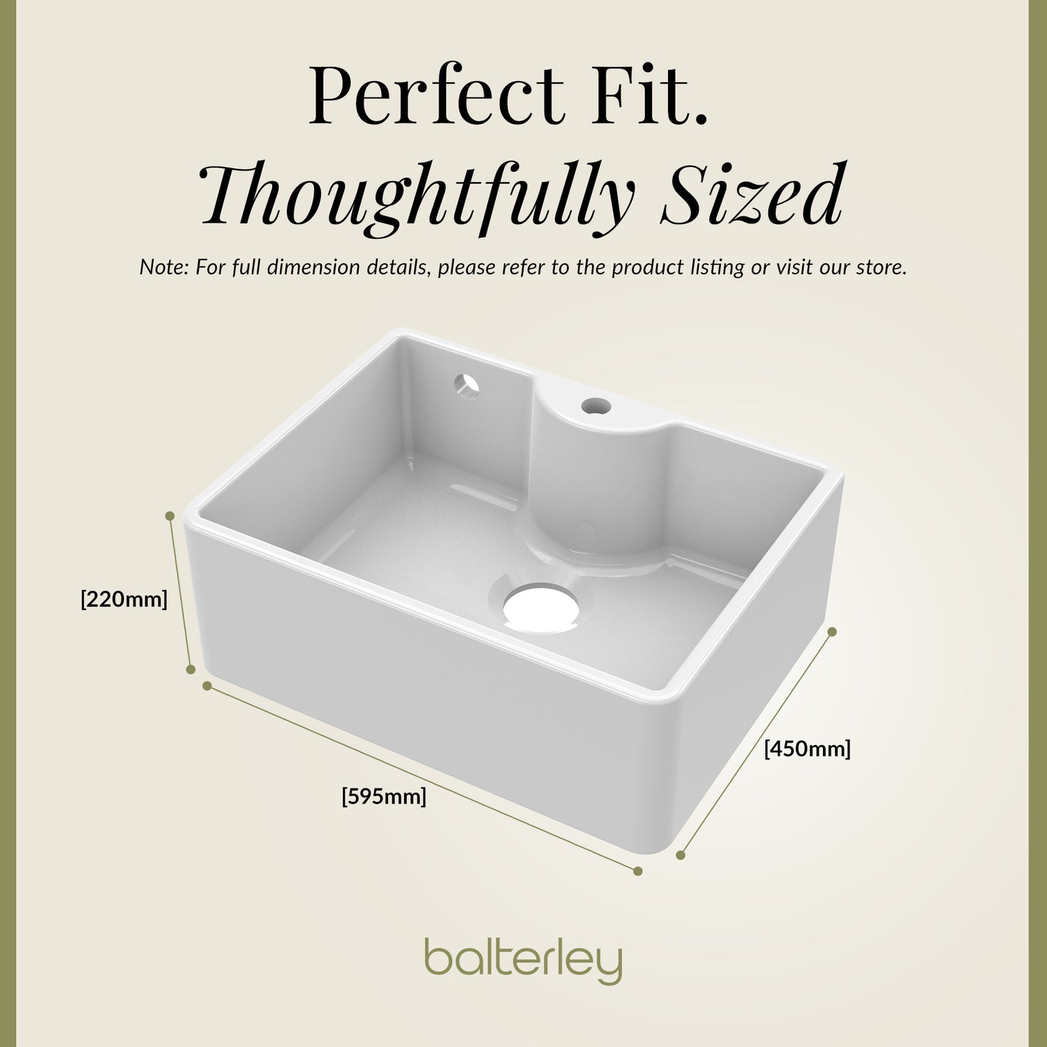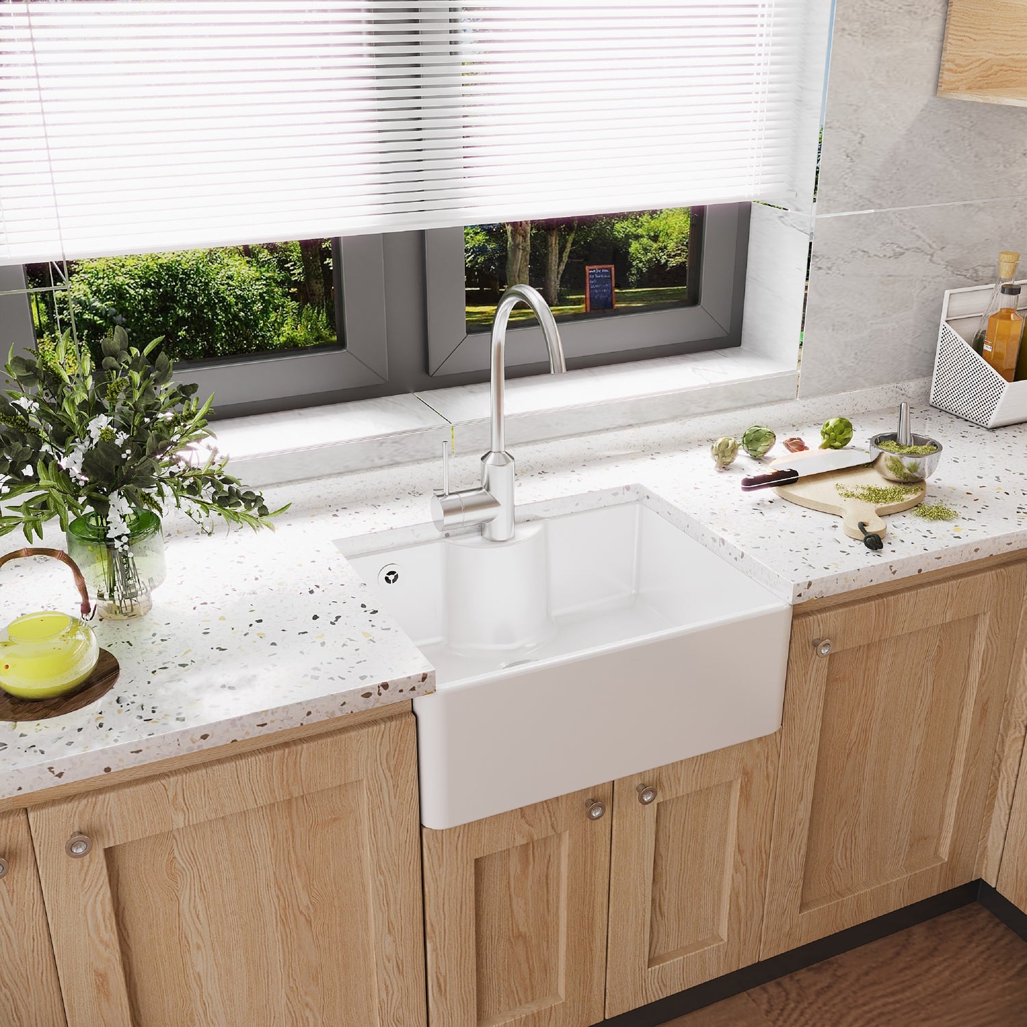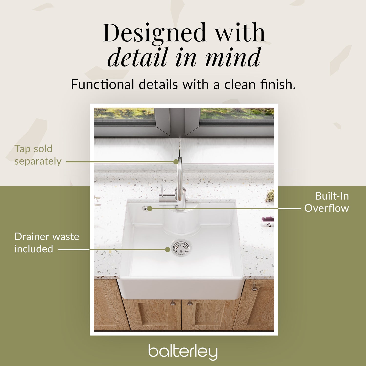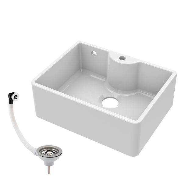 Single Bowl Fireclay Ceramic Butler Kitchen Sink with Tap Ledge, Hole, Overflow & Waste