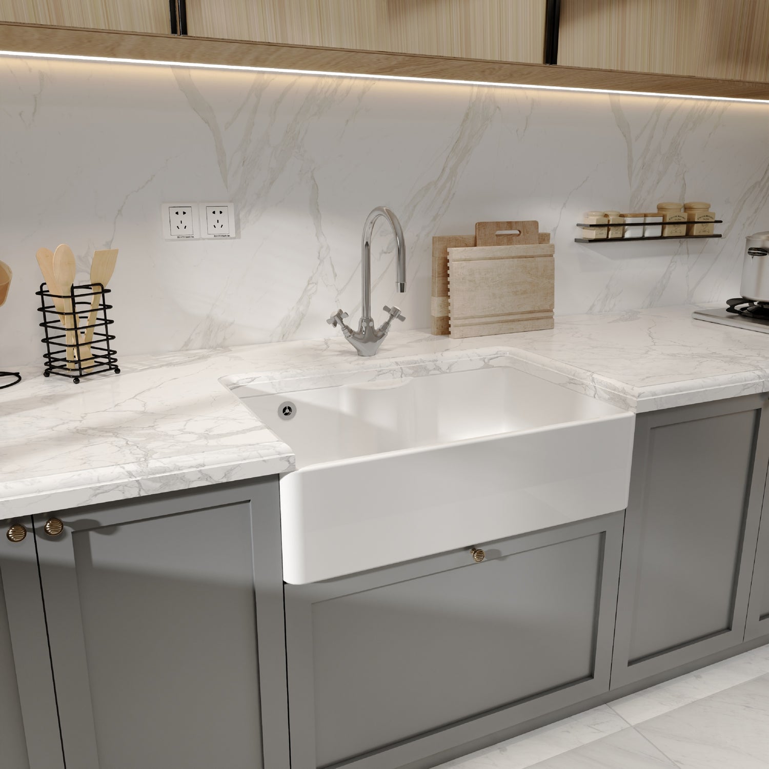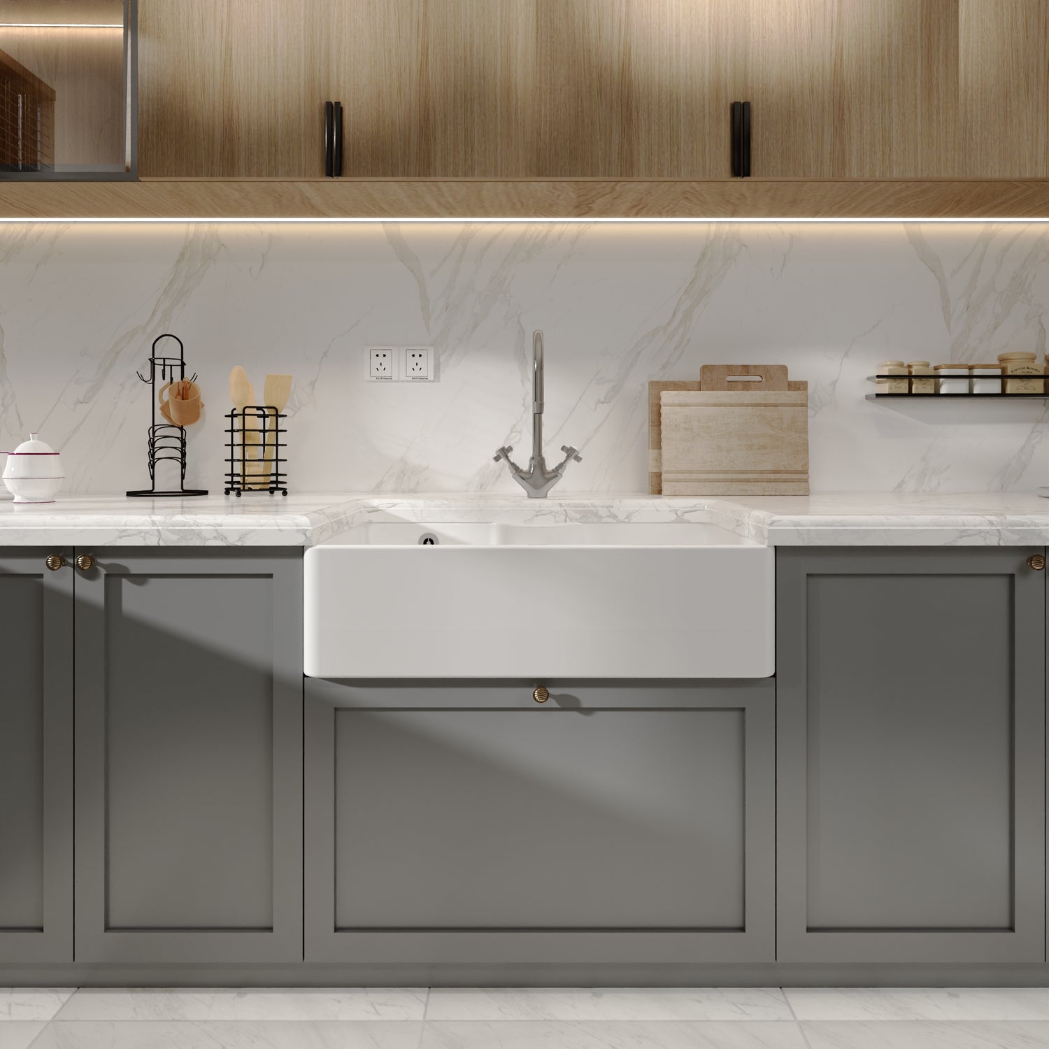 Complete your kitchen with this elegant fireclay sink, offering timeless design, exceptional durability, and a refined touch that will elevate your space for years to come.