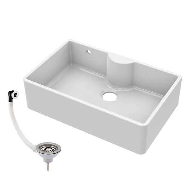 Single Bowl Fireclay Ceramic Butler Kitchen Sink Bundle with Tap Ledge, Overflow & Waste