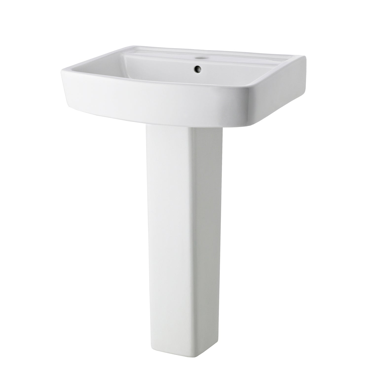 Modern White Square 1 Tap Hole Bathroom Basin & Full Pedestal – Choice of Size (520mm or 600mm) - 520mm is backordered and will ship as soon as it is back in stock.