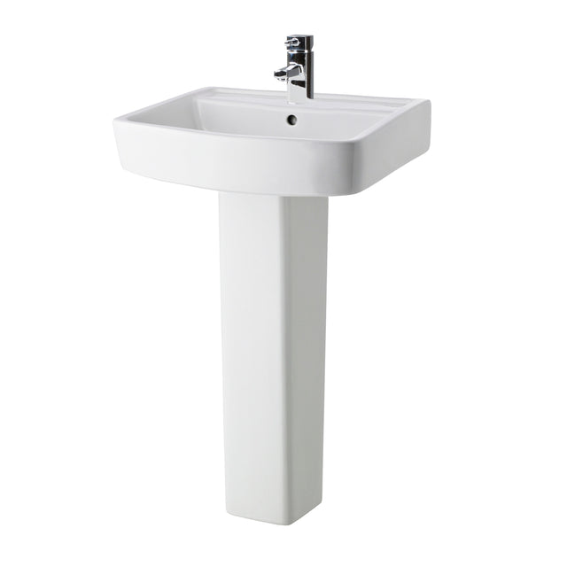 Modern White Square 1 Tap Hole Bathroom Basin & Full Pedestal – Choice of Size (520mm or 600mm)