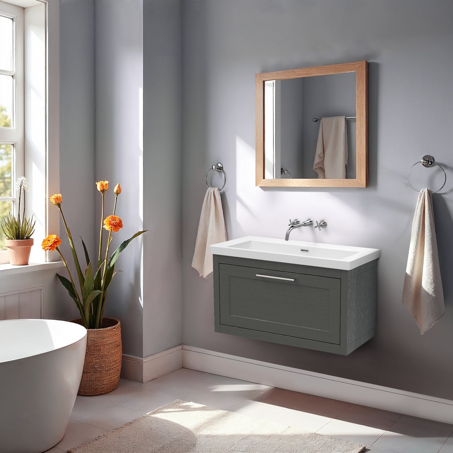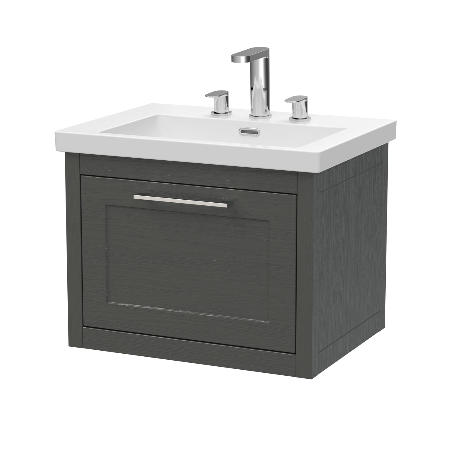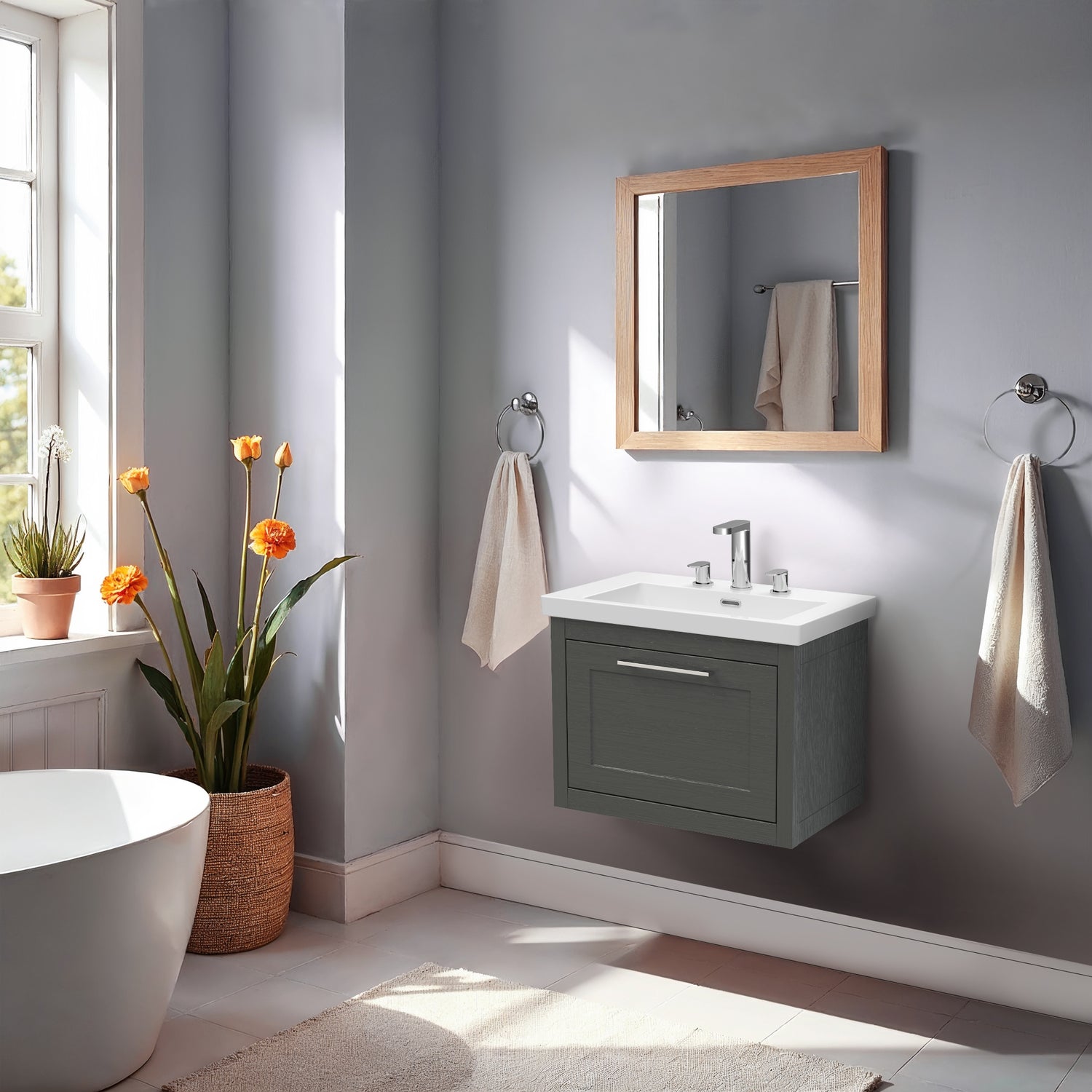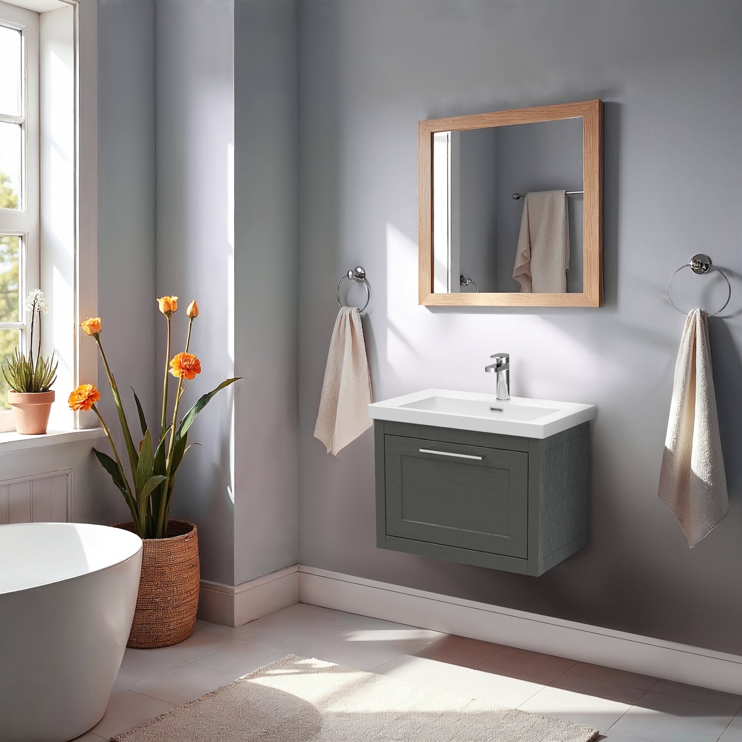 Traditional Bathroom Wall Hung Vanity with Modern Fireclay Basin Unit - Choice of Size, Colour and Basin Type - 600mm / Dark Grey Woodgrain / Modern 0 Tap Hole Basin is backordered and will ship as soon as it is back in stock.