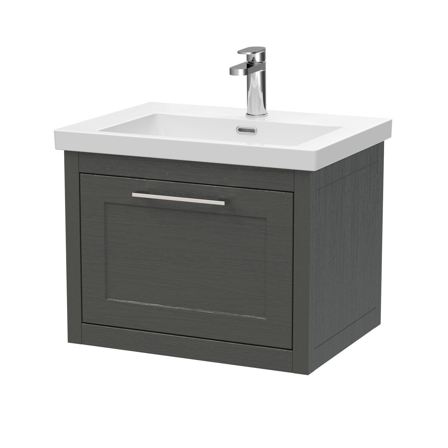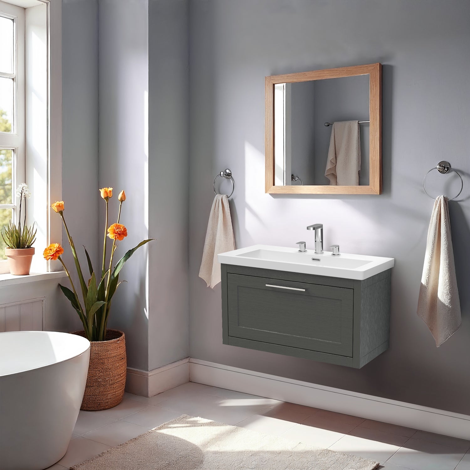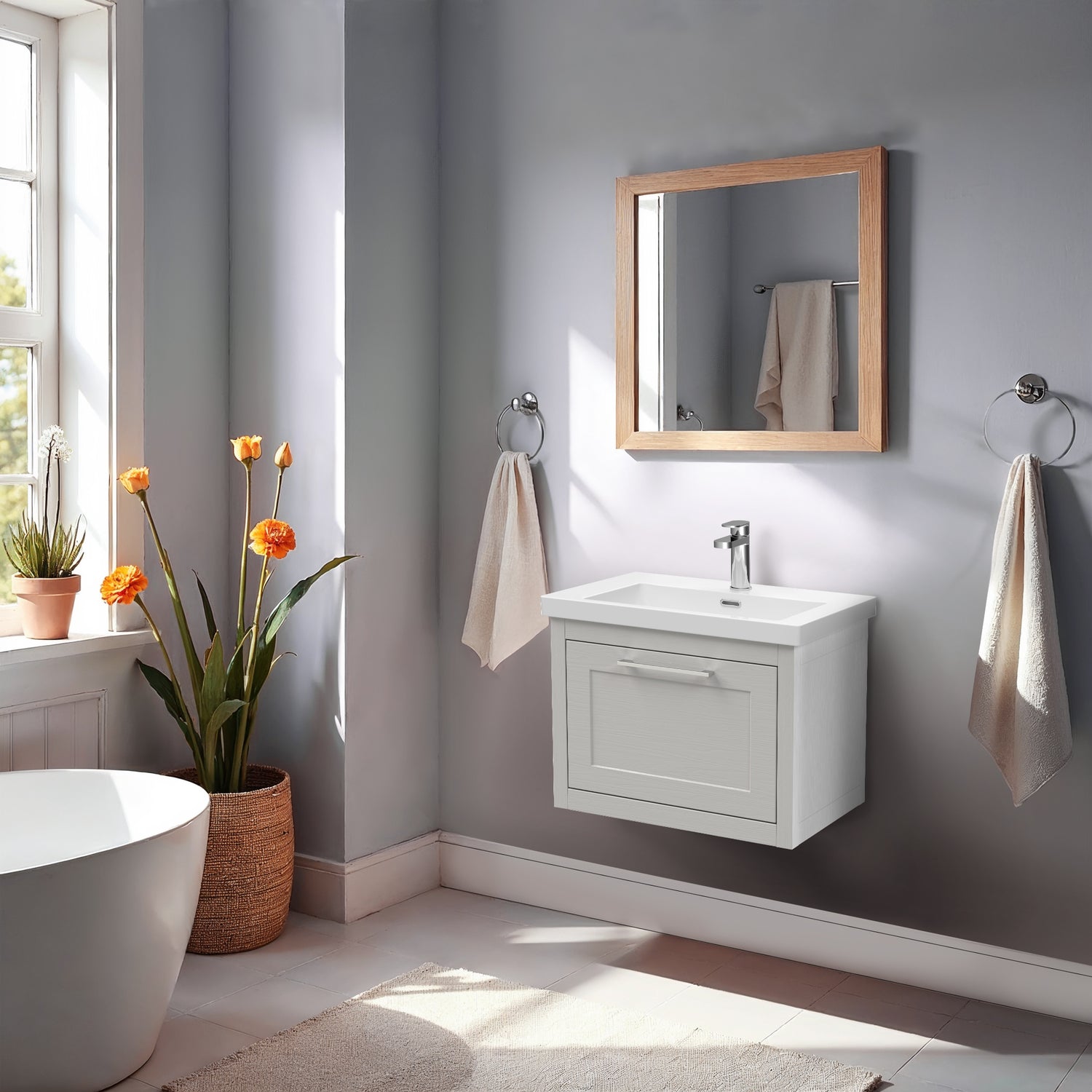Traditional Bathroom Wall Hung Vanity with Modern Fireclay Basin Unit - Choice of Size, Colour and Basin Type - 600mm / Dark Grey Woodgrain / Modern 0 Tap Hole Basin is backordered and will ship as soon as it is back in stock.