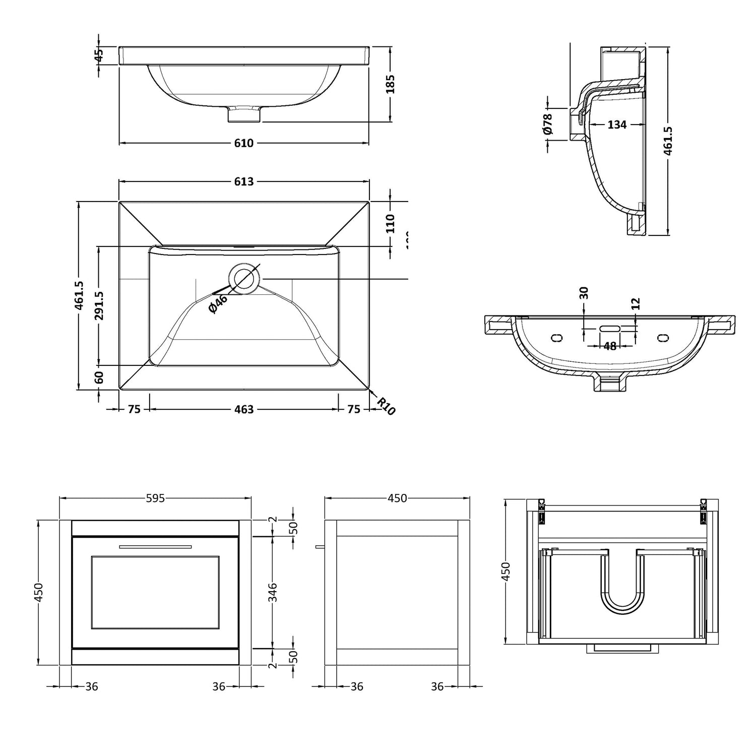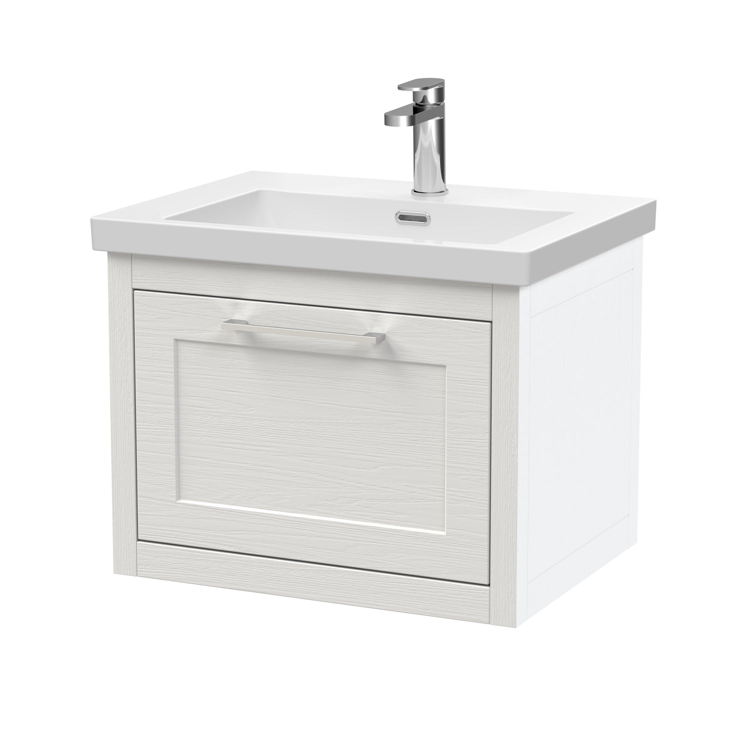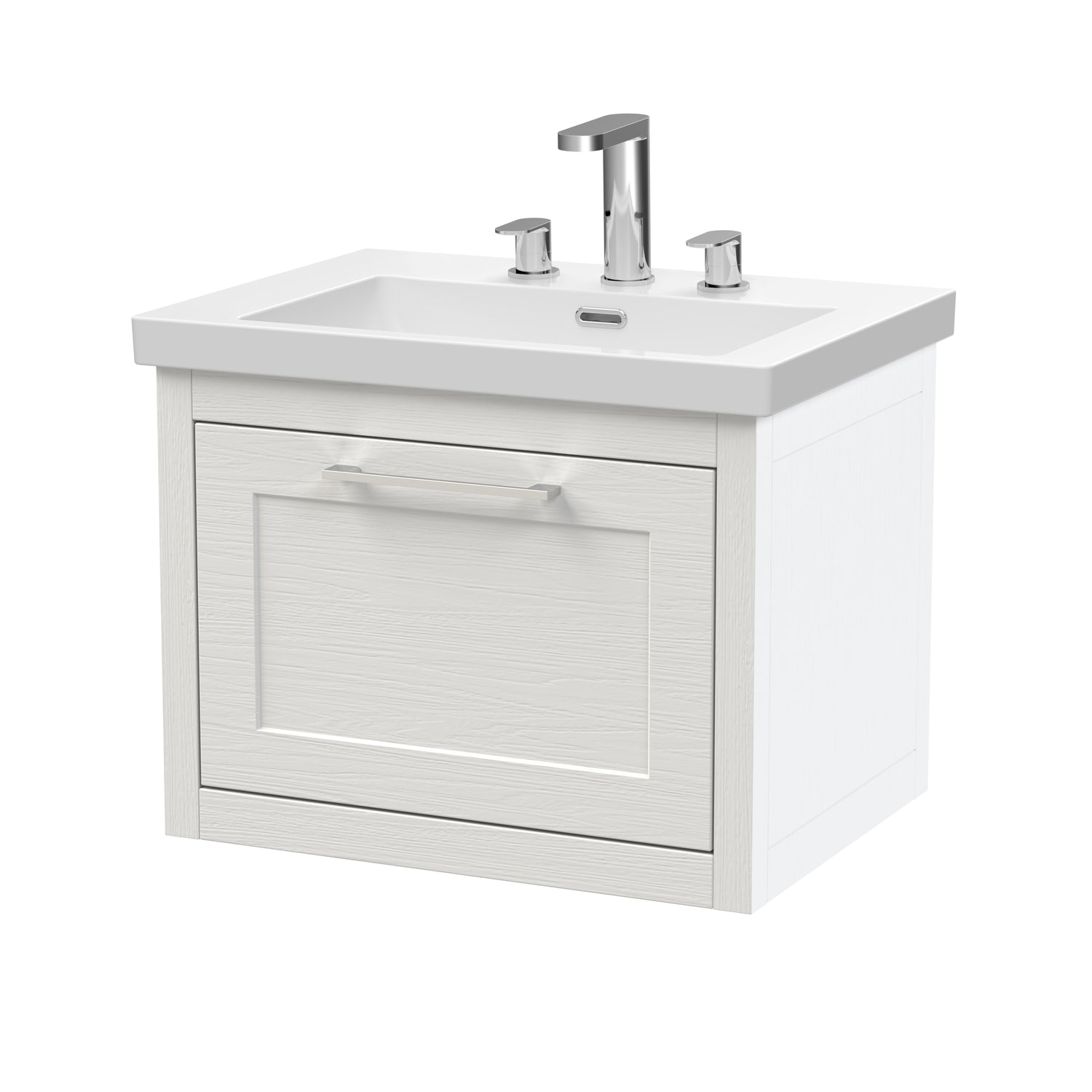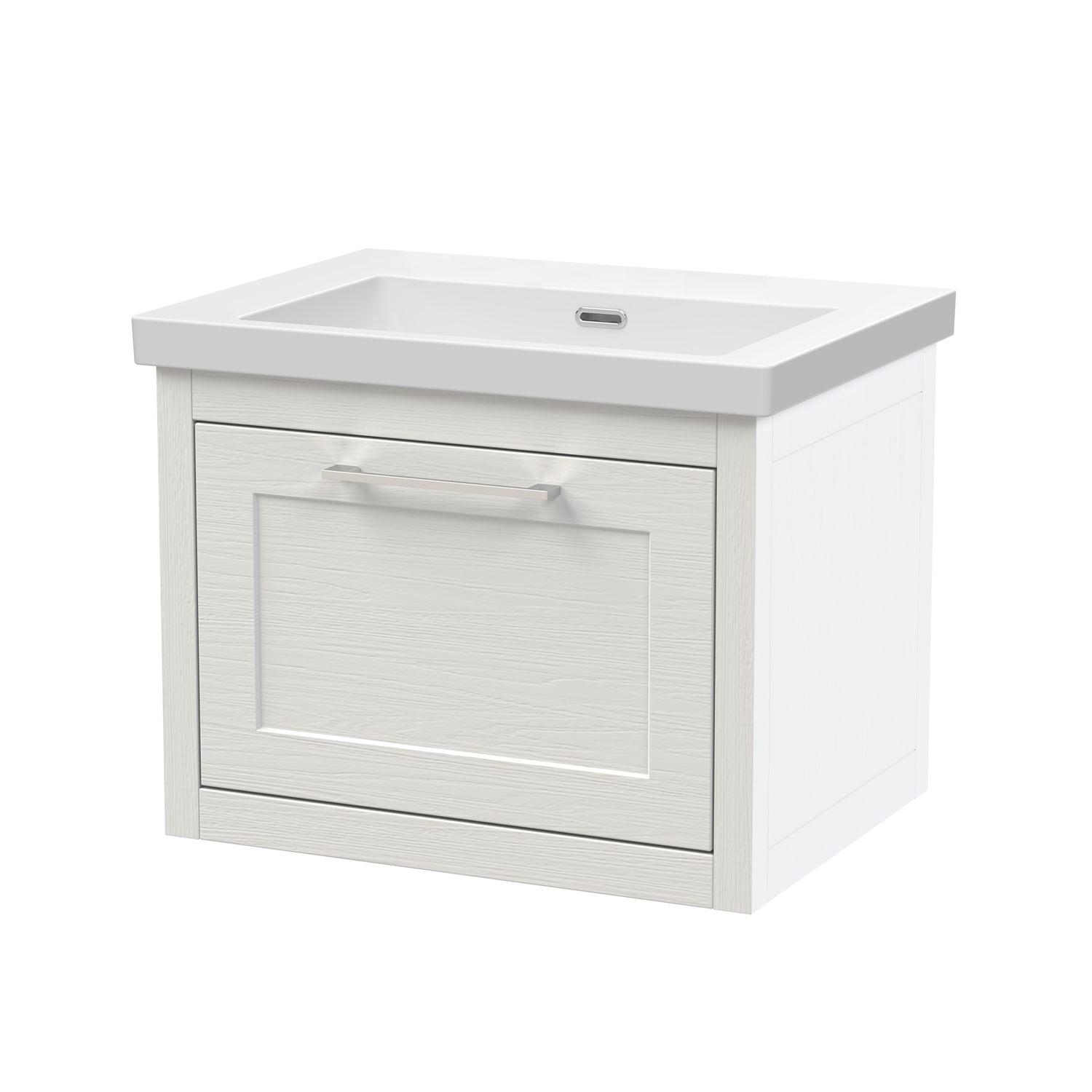 Traditional Bathroom Wall Hung Vanity with Modern Fireclay Basin Unit - Choice of Size, Colour and Basin Type - 600mm / Dark Grey Woodgrain / Modern 0 Tap Hole Basin is backordered and will ship as soon as it is back in stock.