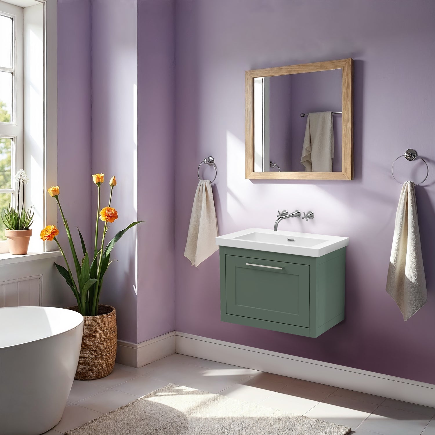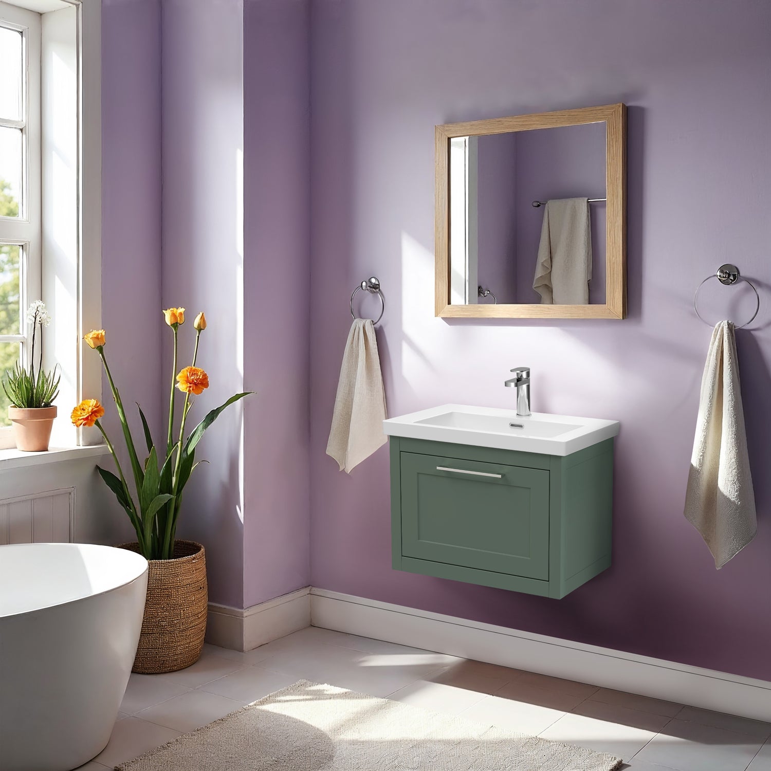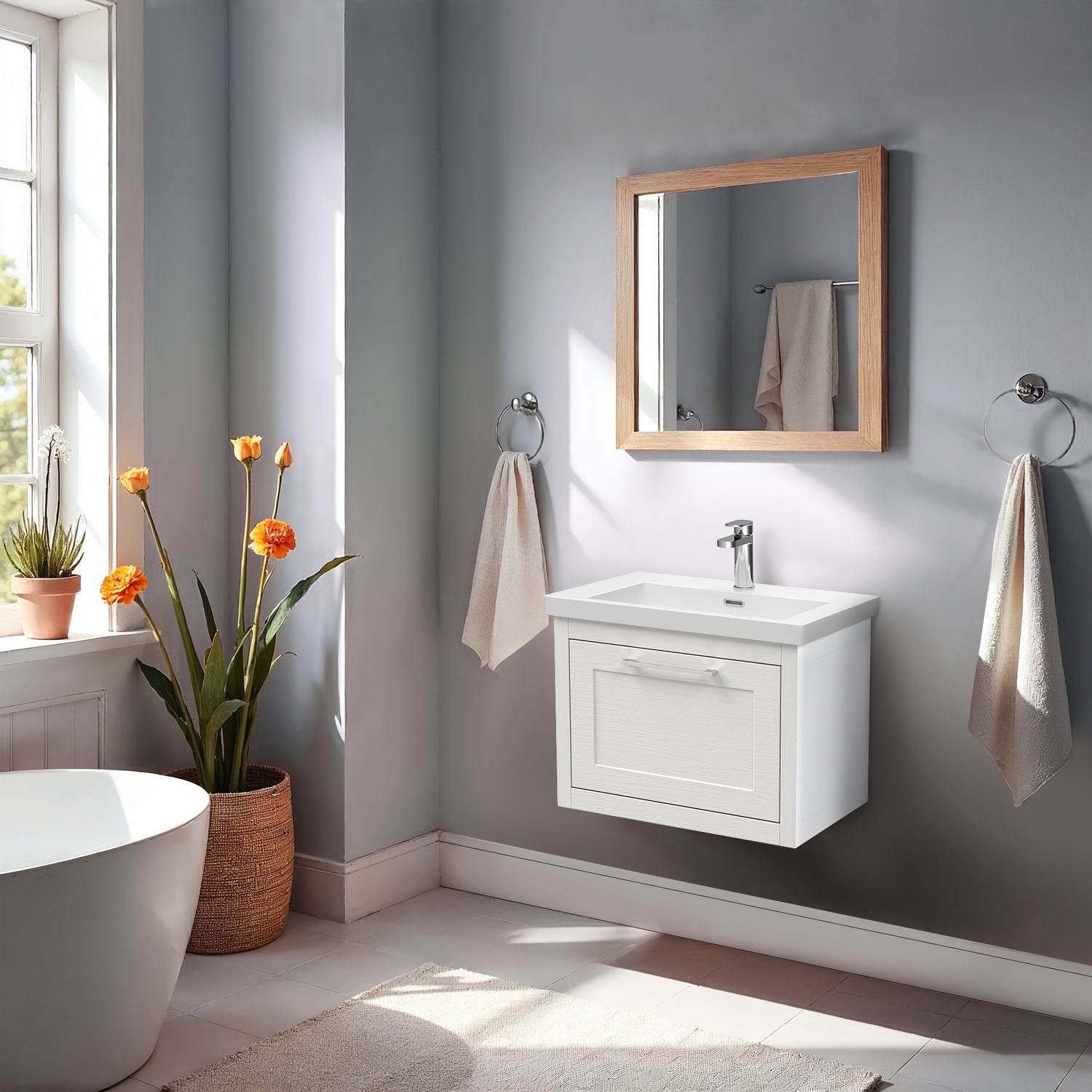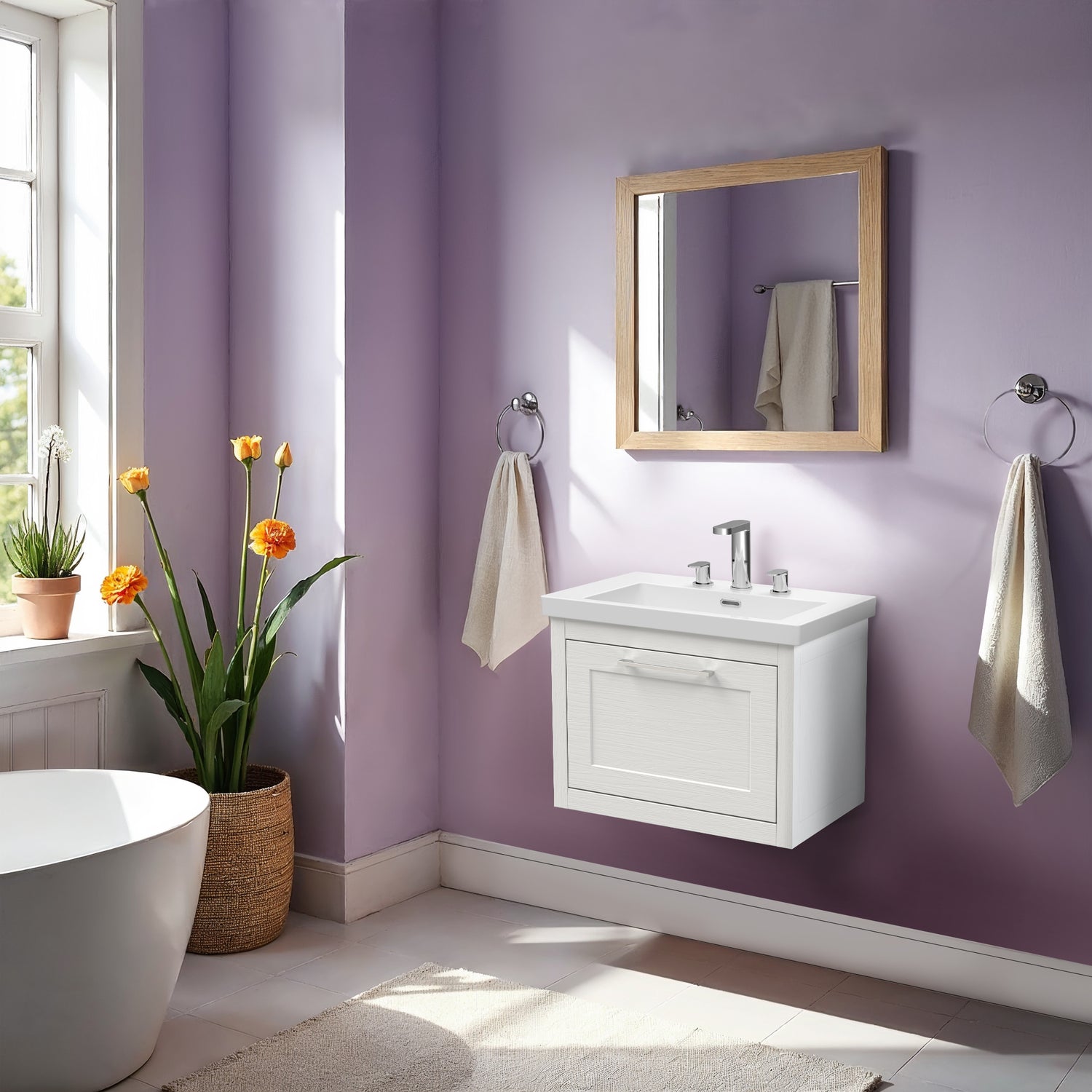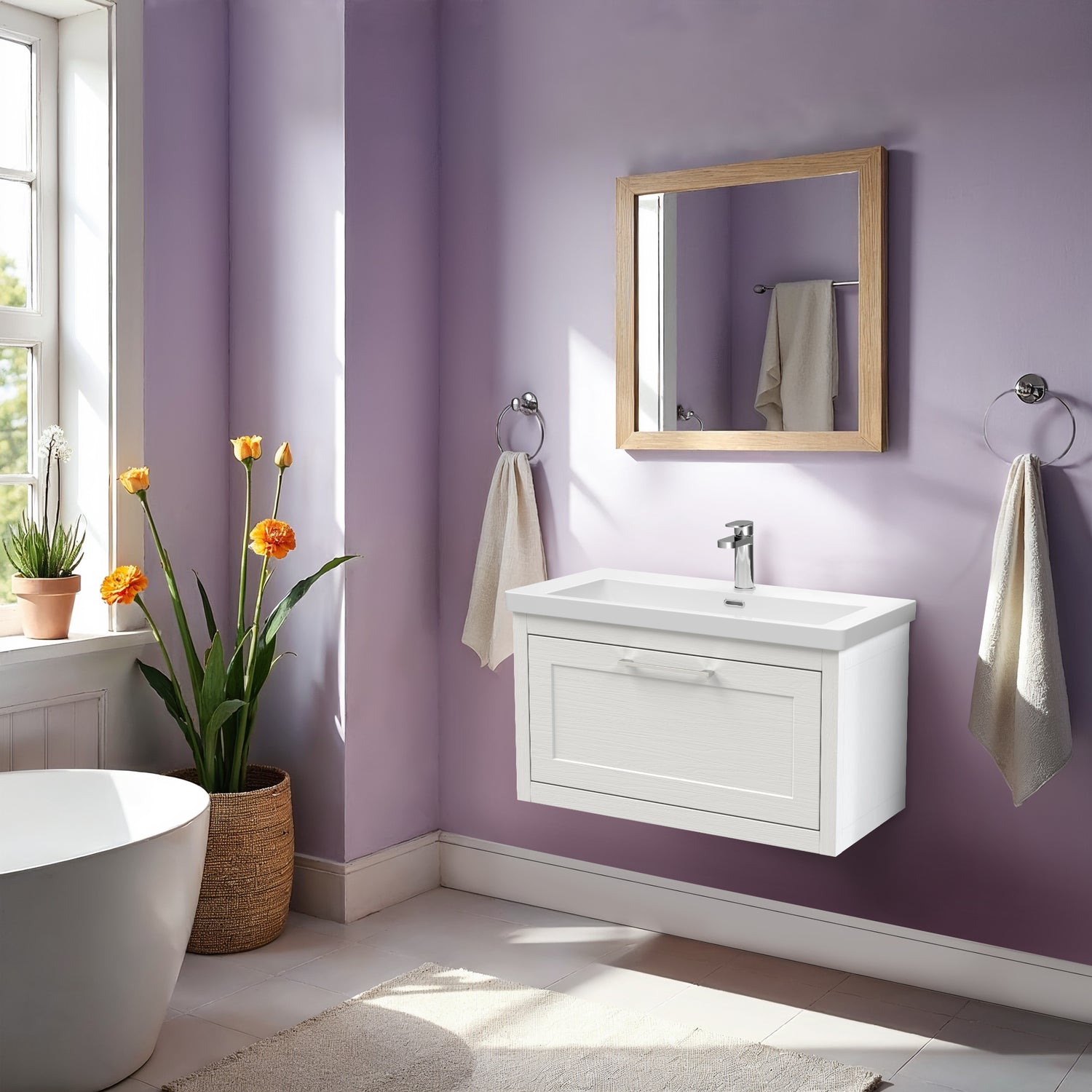 Traditional Bathroom Wall Hung Vanity with Modern Fireclay Basin Unit - Choice of Size, Colour and Basin Type