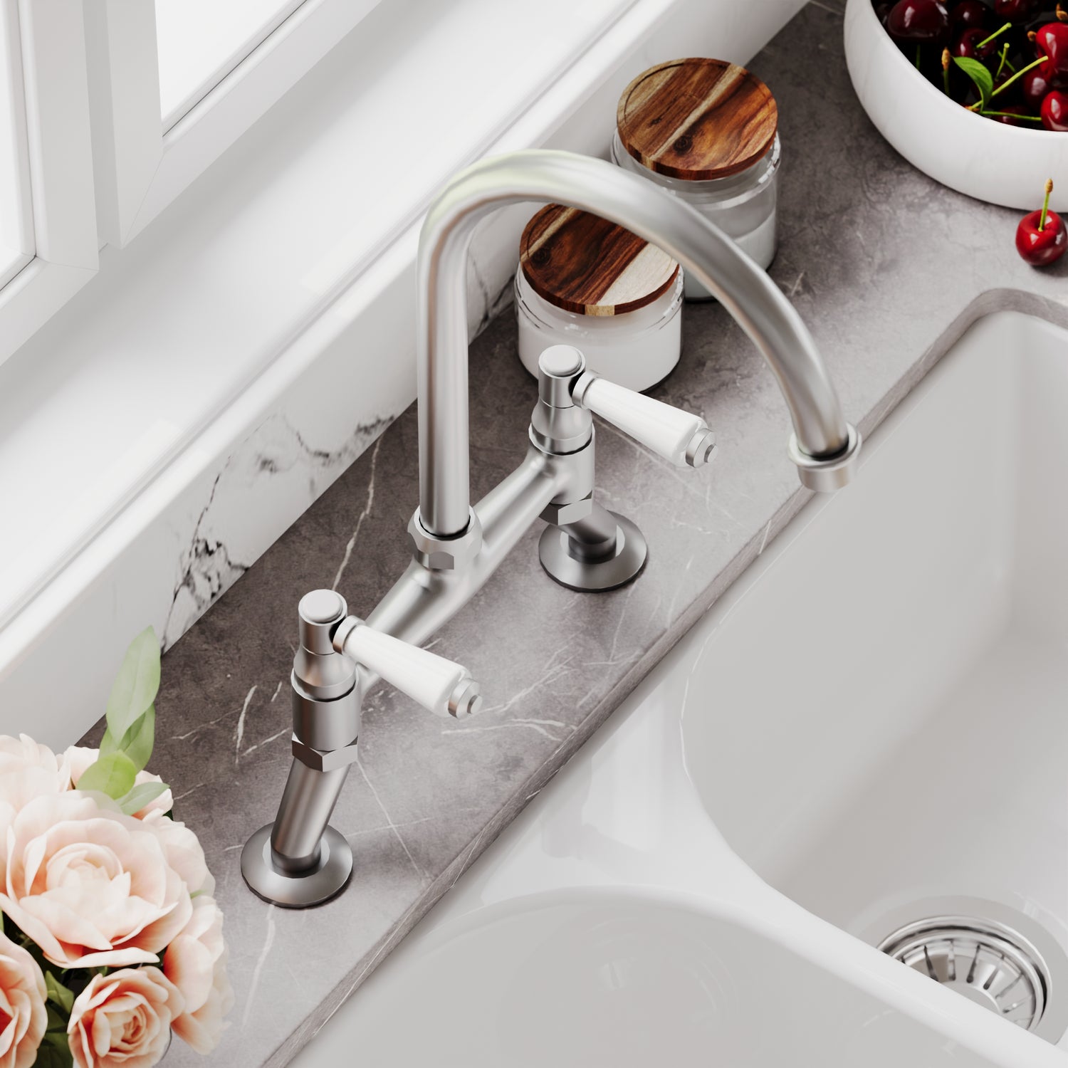 Elevate your kitchen with the Traditional Bridge Mixer Kitchen Tap from Balterley – where timeless style meets dependable performance, creating a perfect blend of beauty and practicality for your home.
