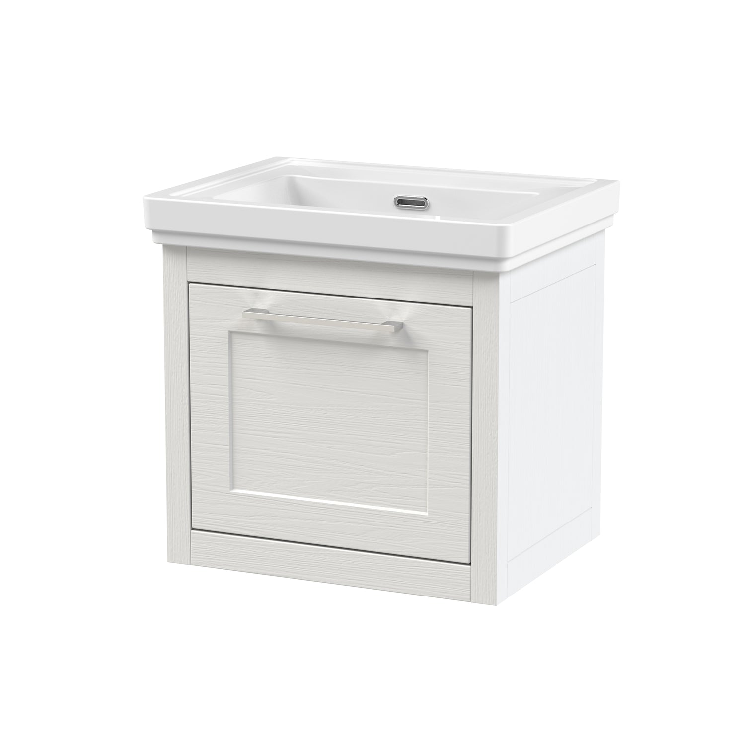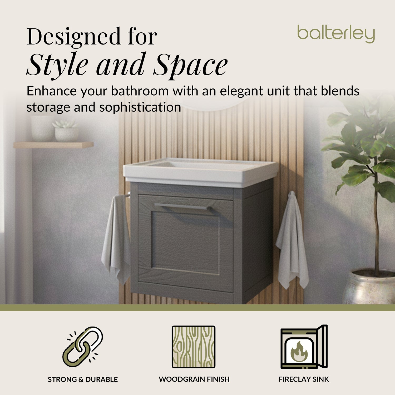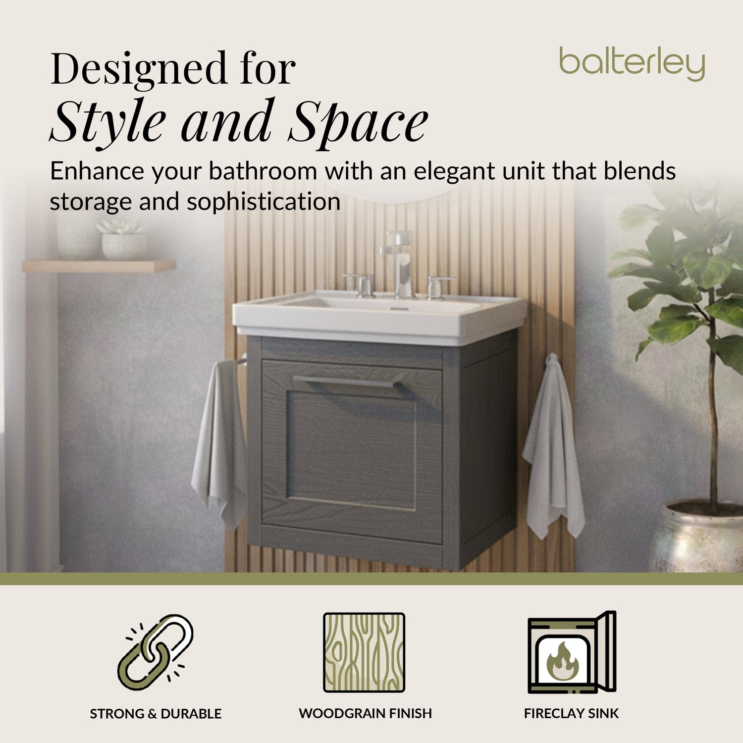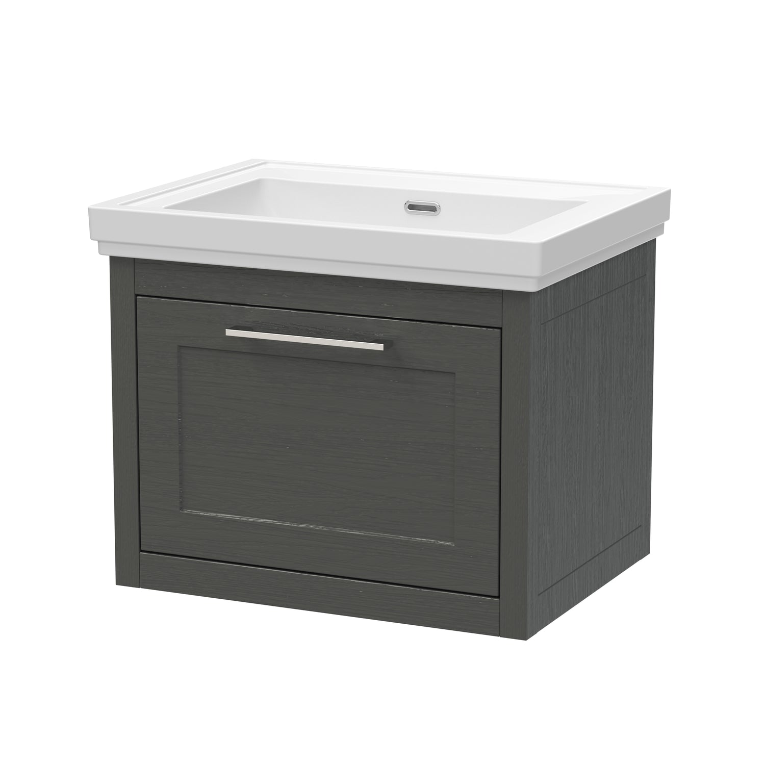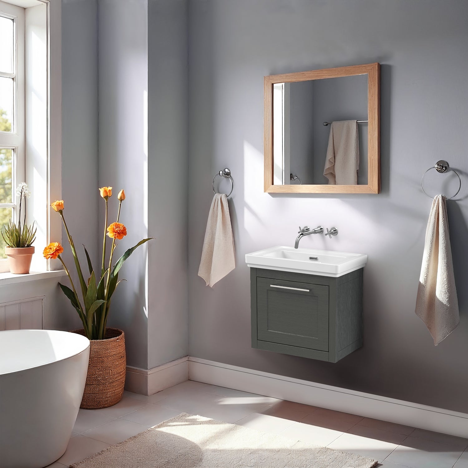 Traditional Wall Hung Vanity Basin Unit with Fireclay Basin - Choice of Size, Colour and Basin Type - 500mm / Dark Grey Woodgrain / Traditional 1 Tap Hole Basin is backordered and will ship as soon as it is back in stock.