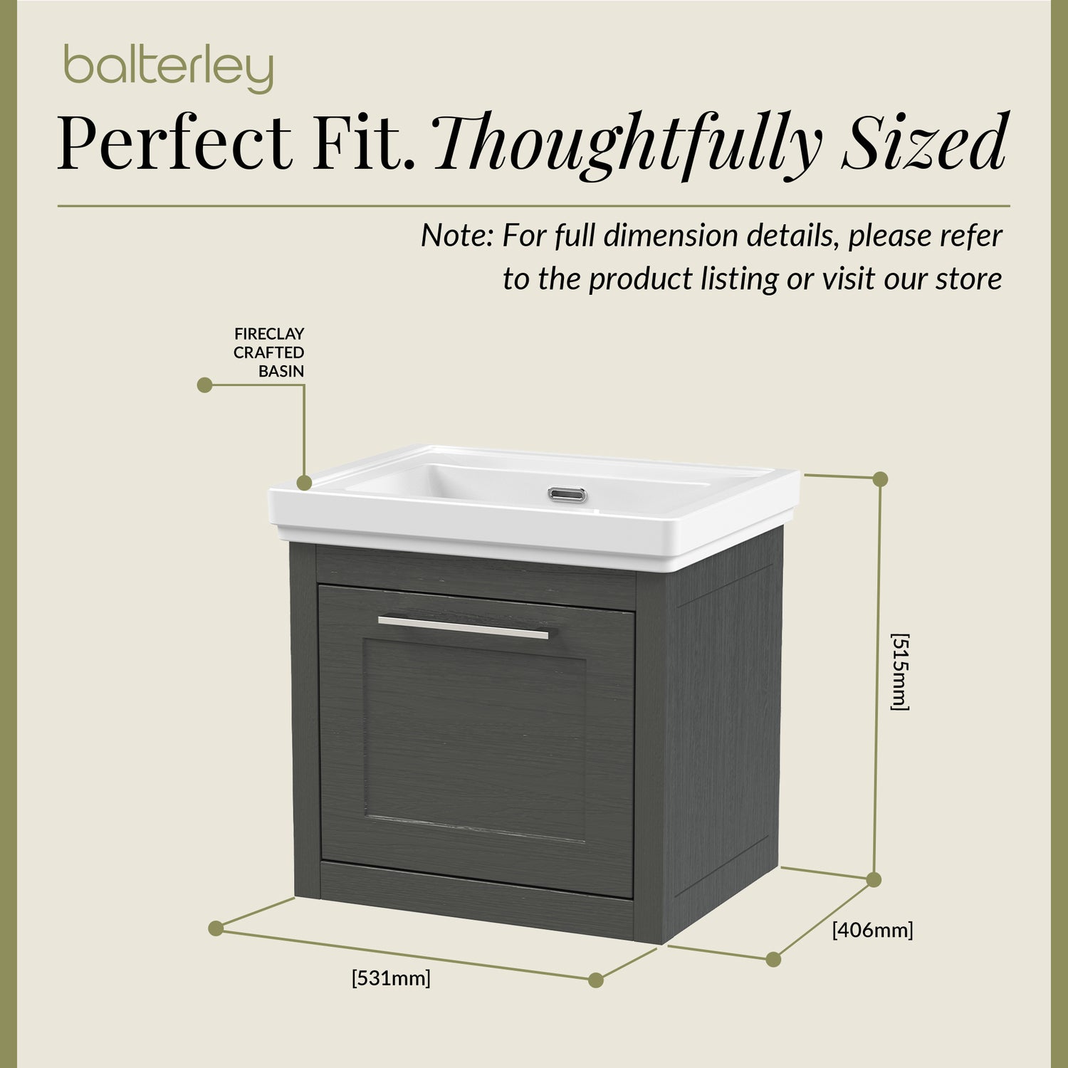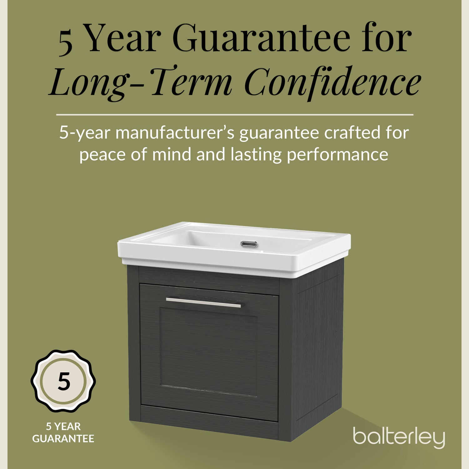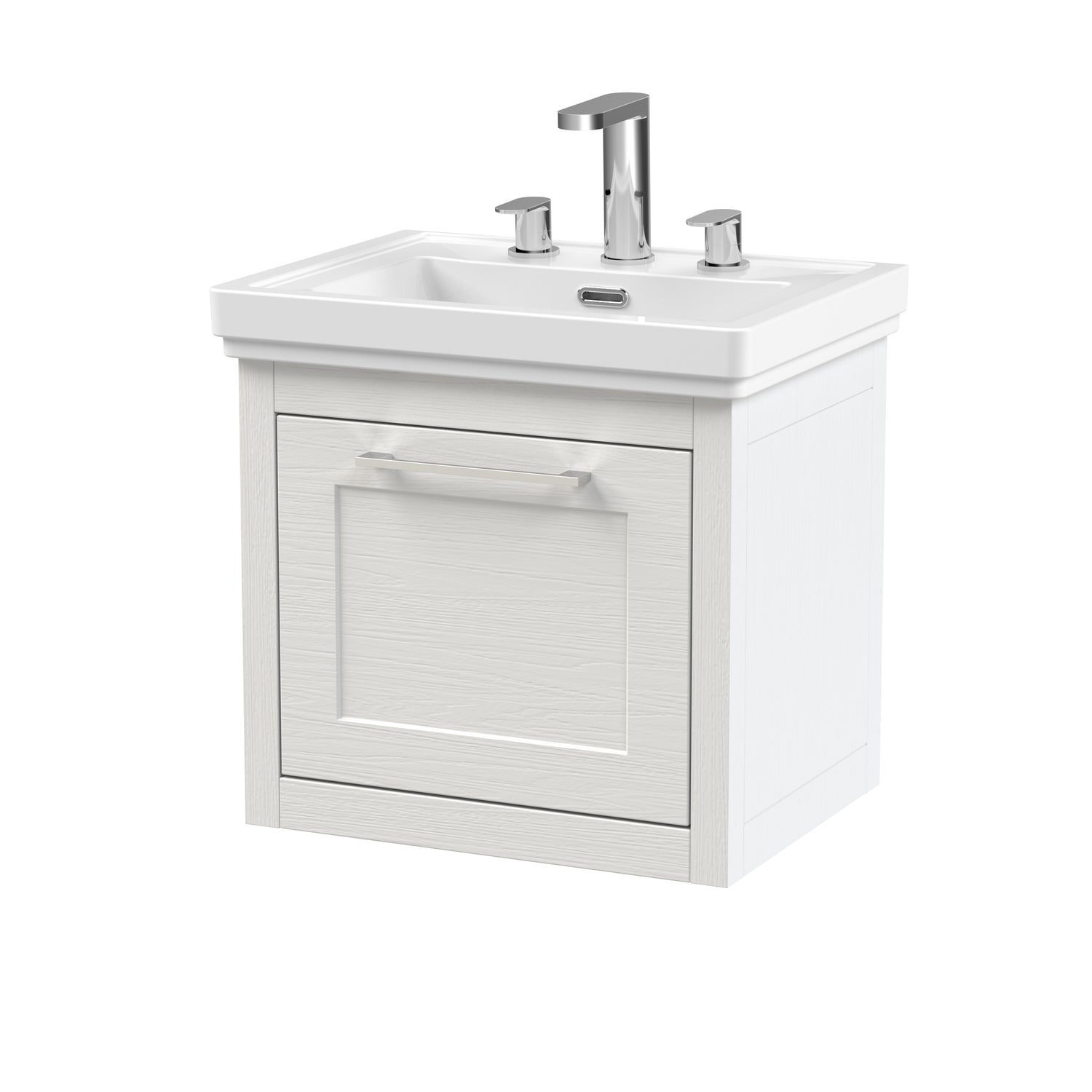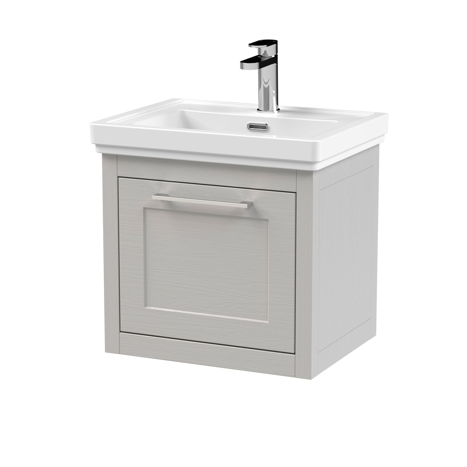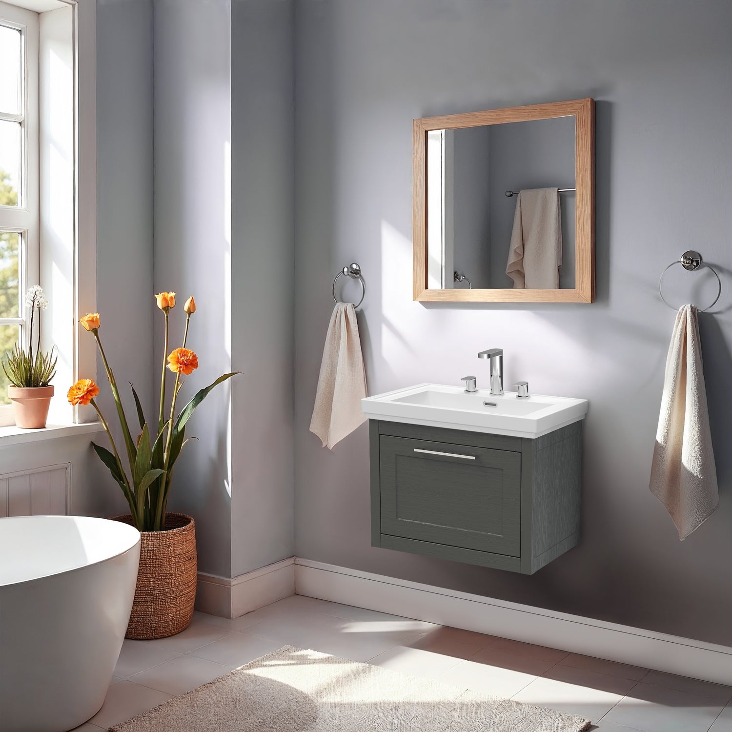 Traditional Wall Hung Vanity Basin Unit with Fireclay Basin - Choice of Size, Colour and Basin Type - 500mm / Dark Grey Woodgrain / Traditional 1 Tap Hole Basin is backordered and will ship as soon as it is back in stock.
