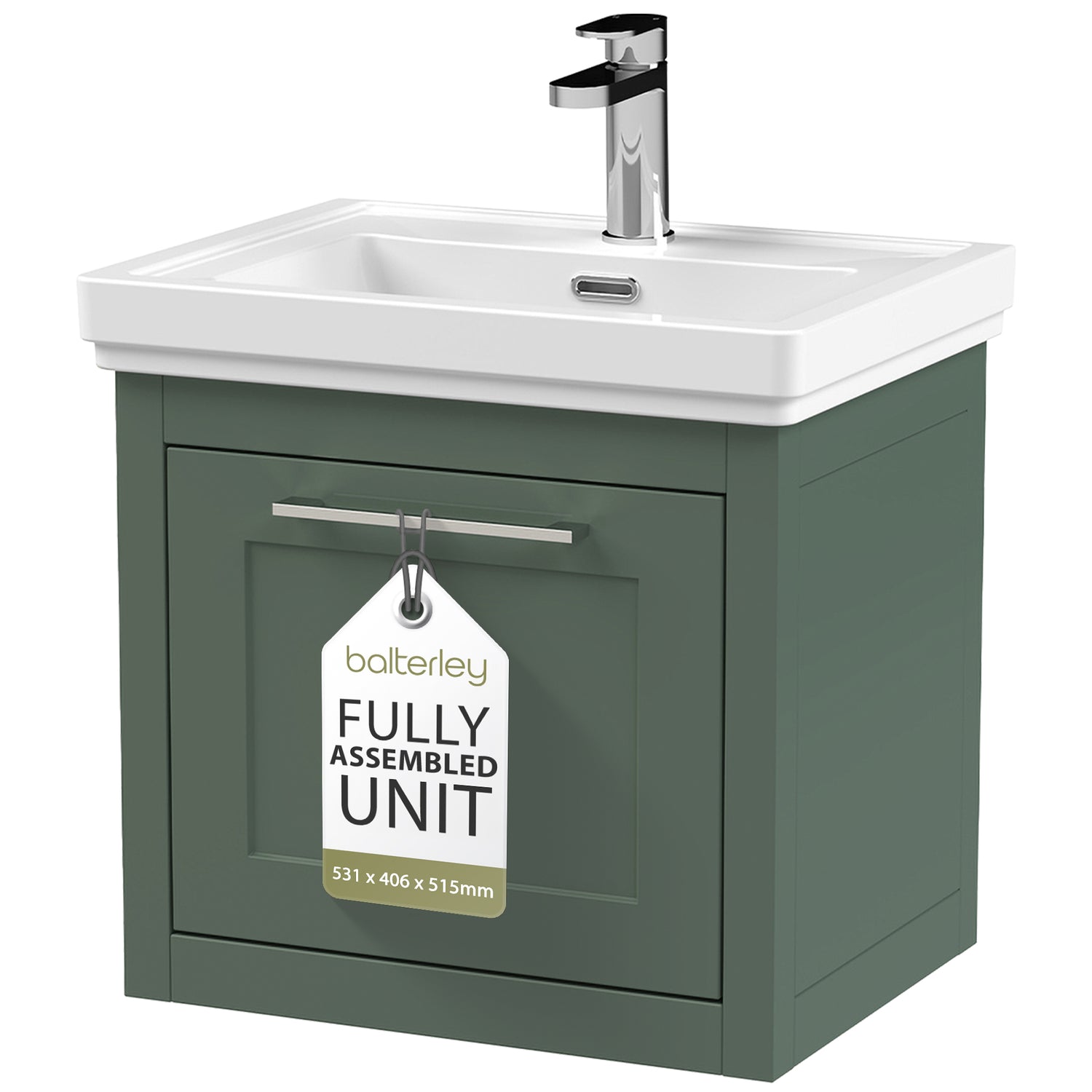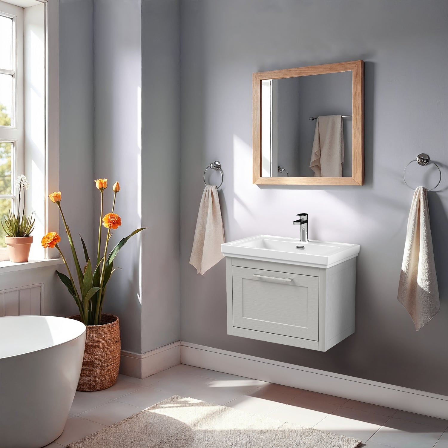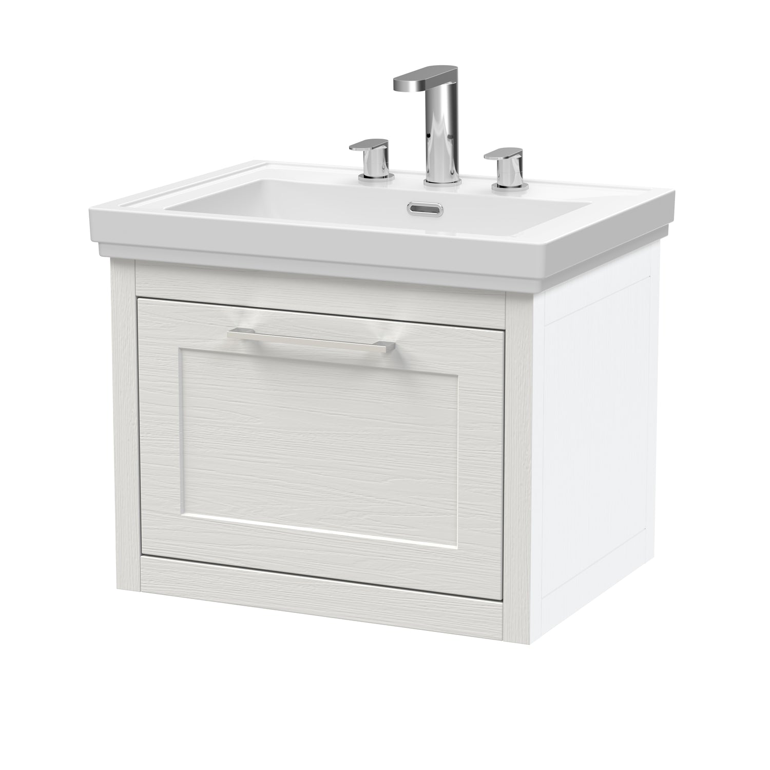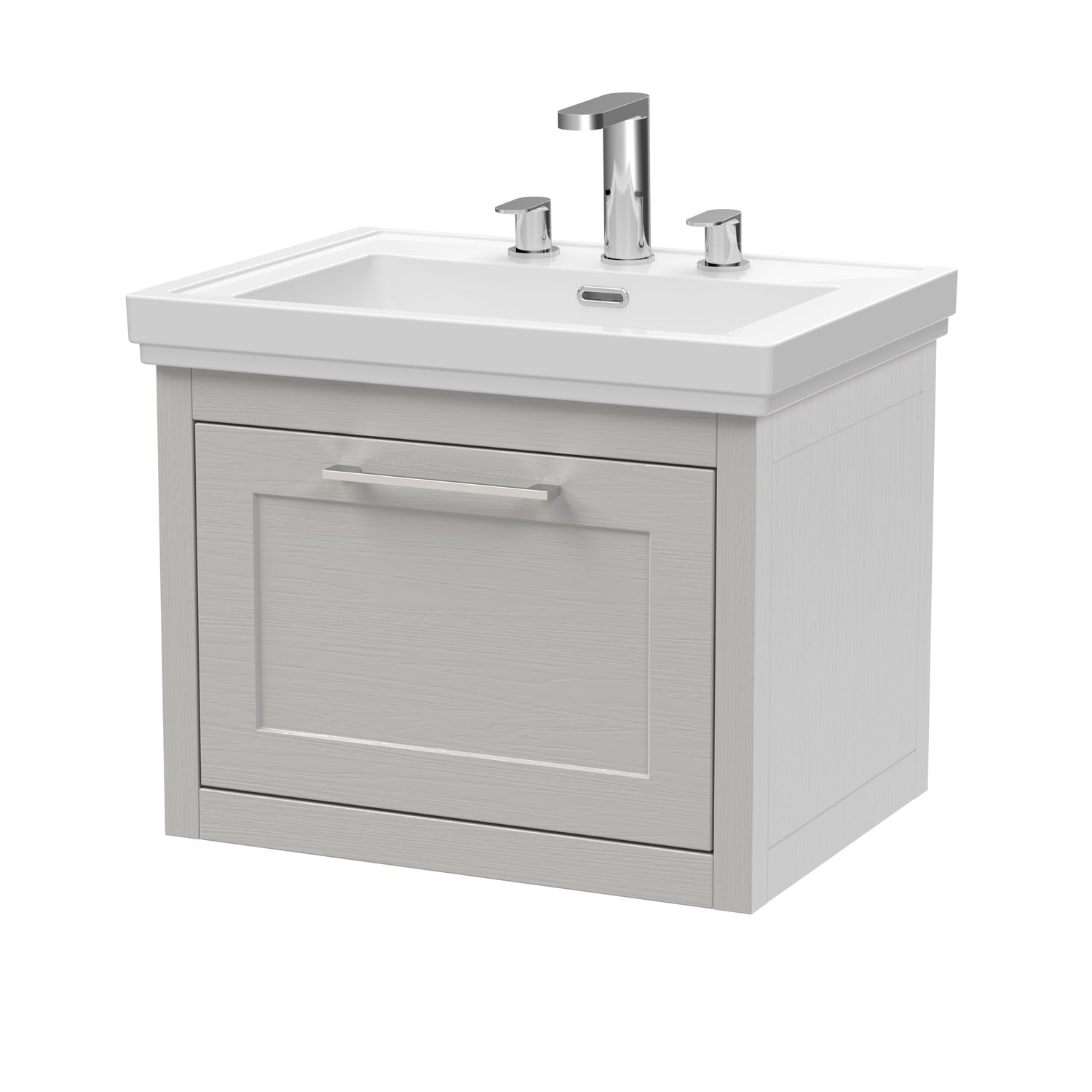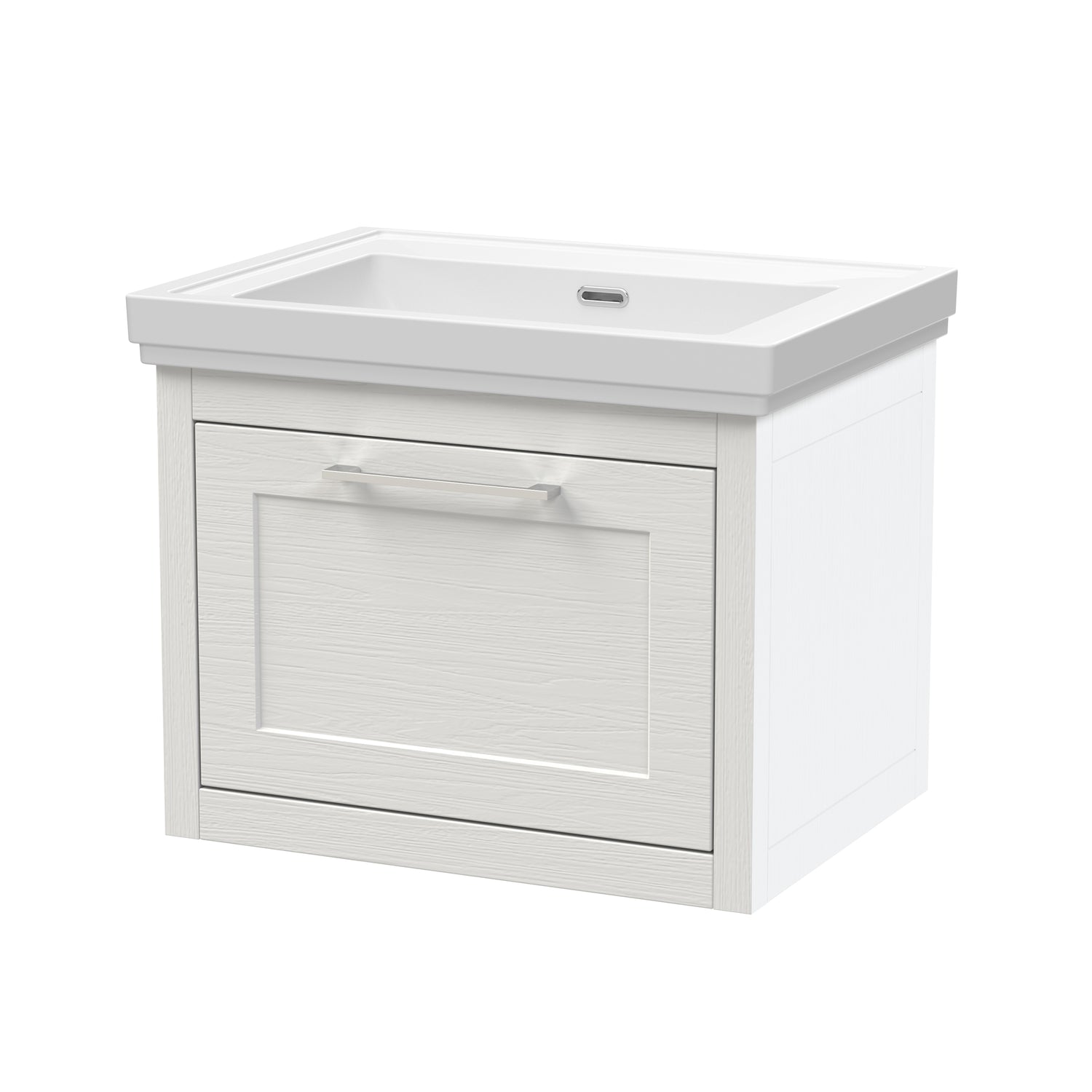 Traditional Wall Hung Vanity Basin Unit with Fireclay Basin - Choice of Size, Colour and Basin Type - 500mm / Dark Grey Woodgrain / Traditional 1 Tap Hole Basin is backordered and will ship as soon as it is back in stock.