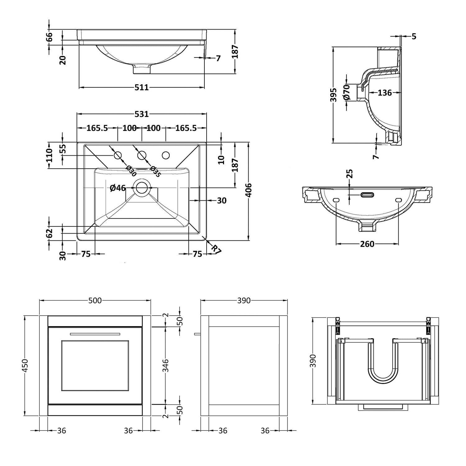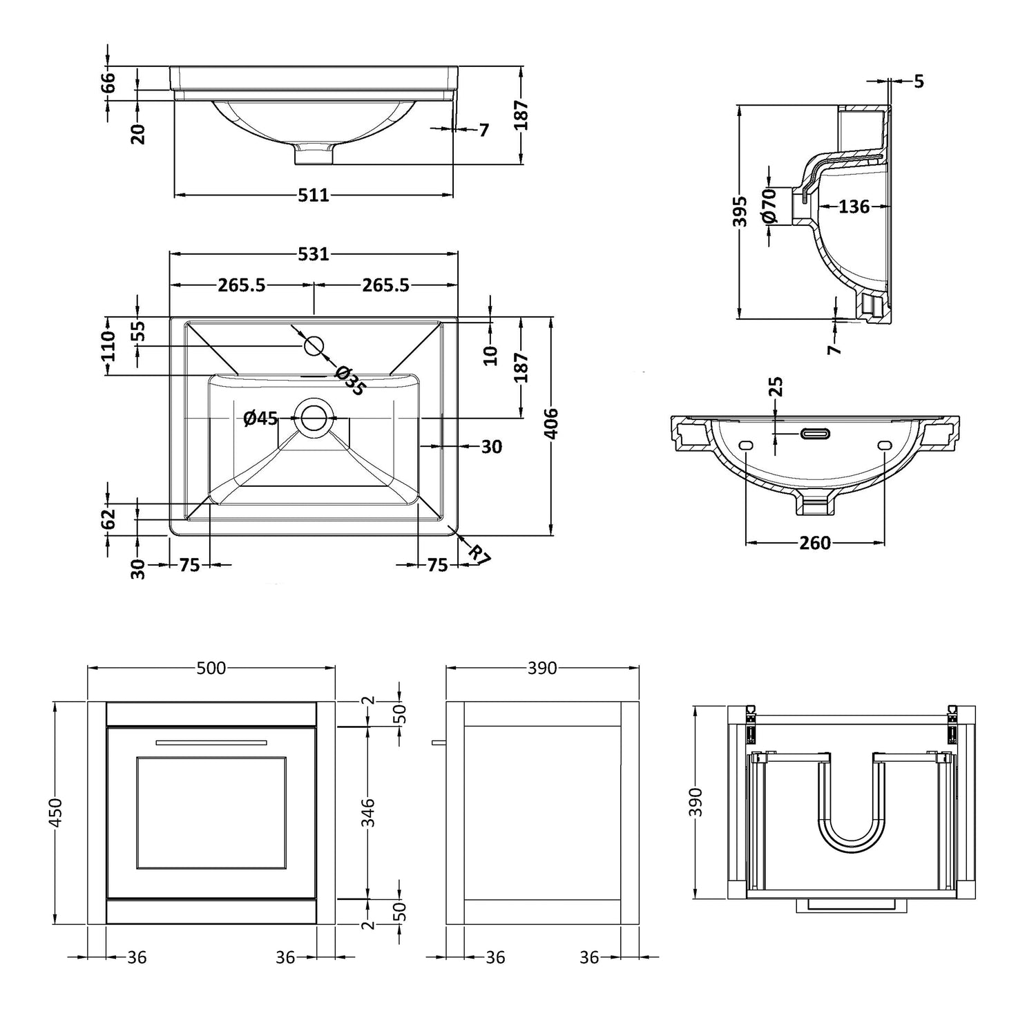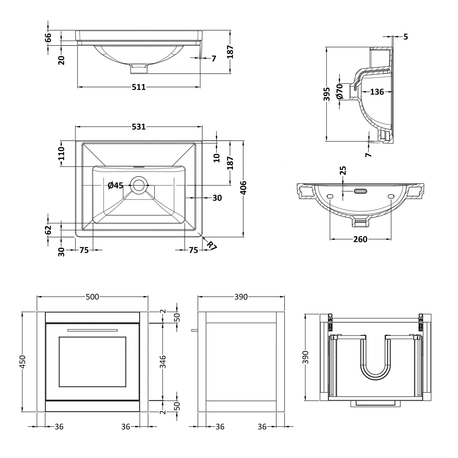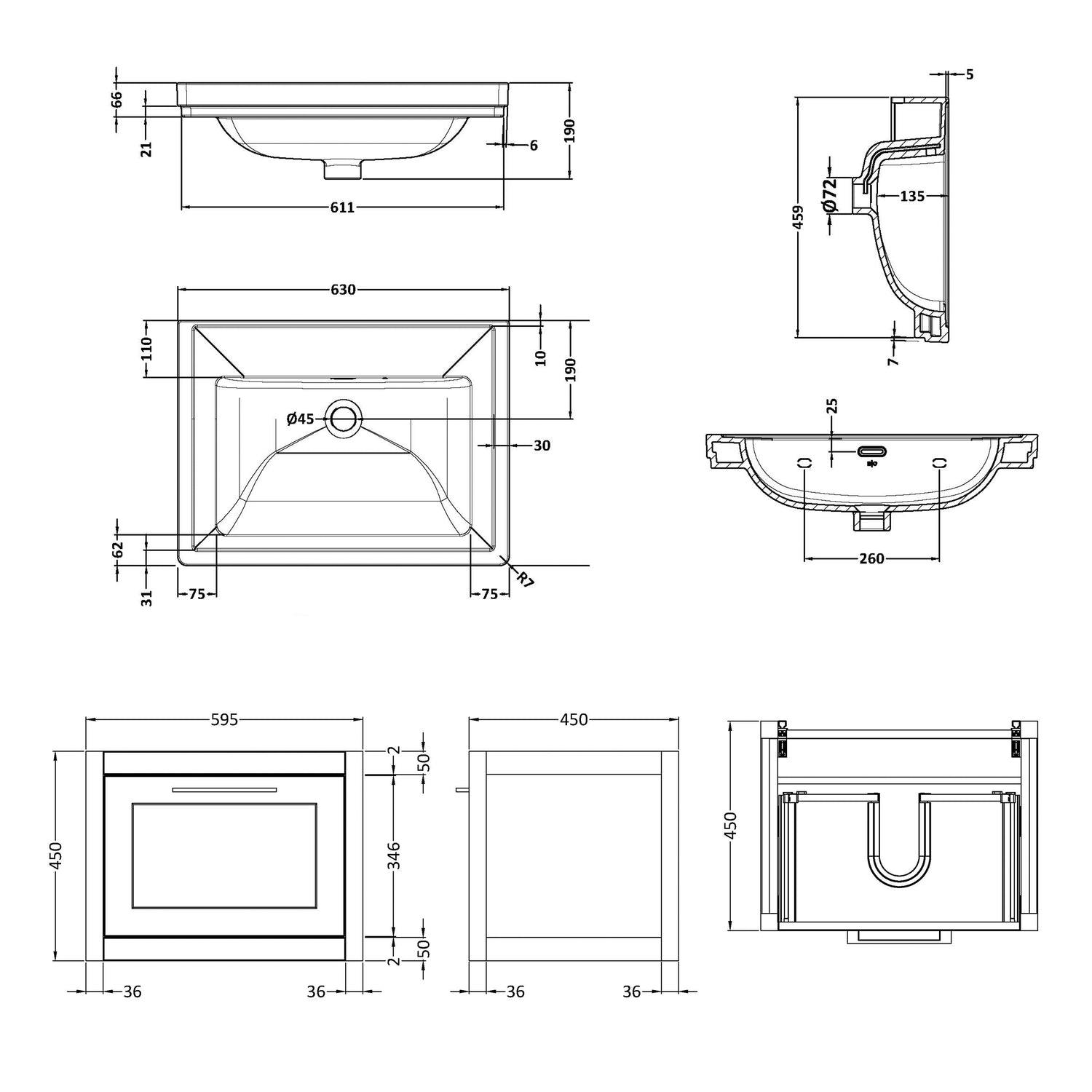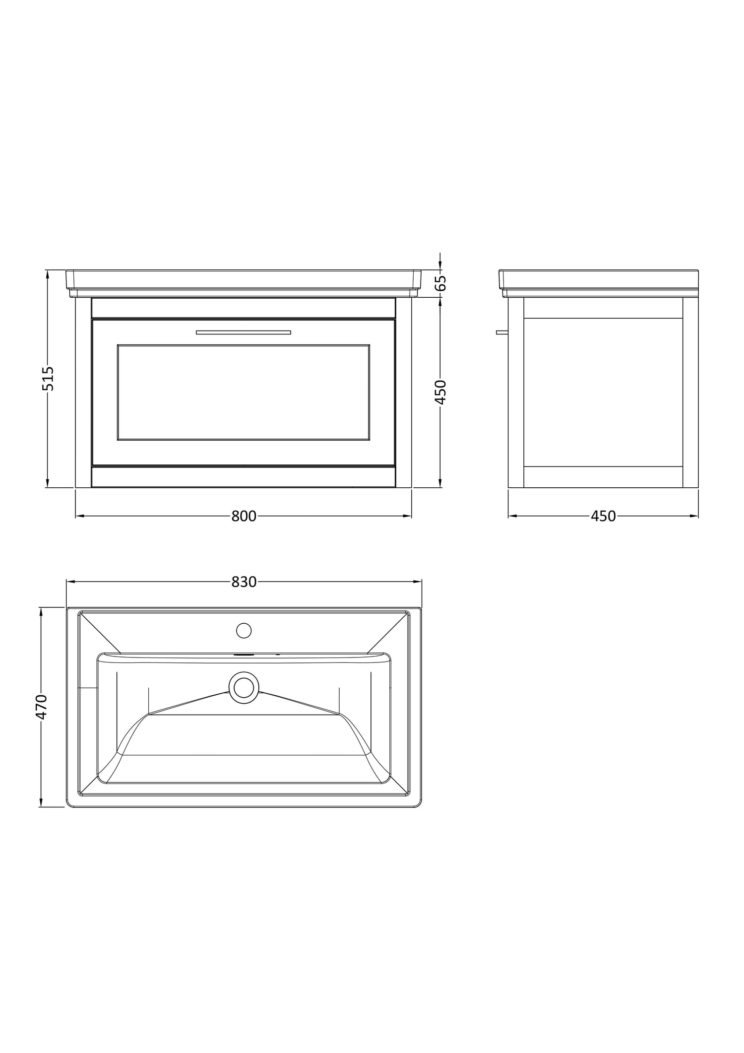 Traditional Wall Hung Vanity Basin Unit with Fireclay Basin - Choice of Size, Colour and Basin Type - 500mm / Dark Grey Woodgrain / Traditional 1 Tap Hole Basin is backordered and will ship as soon as it is back in stock.
