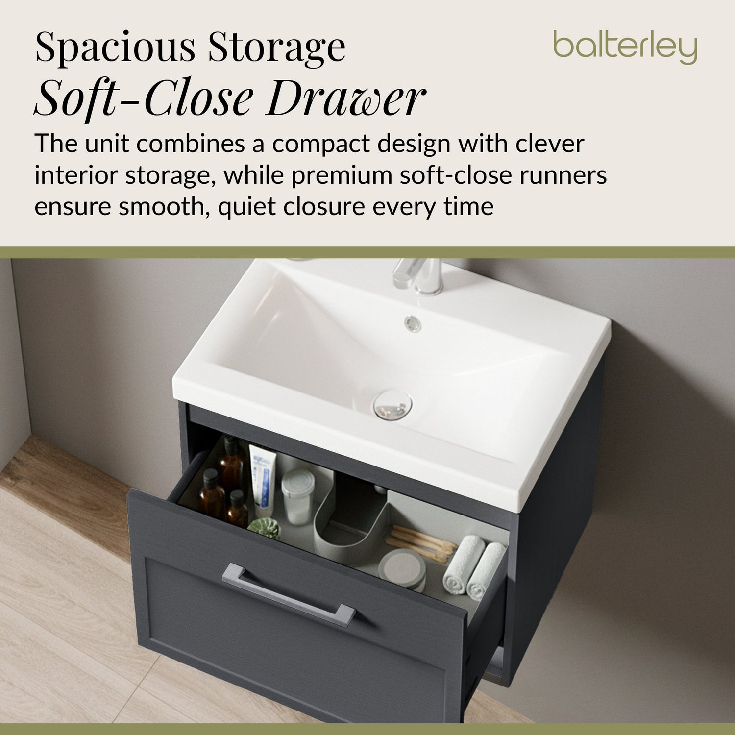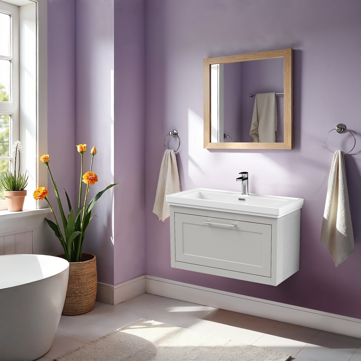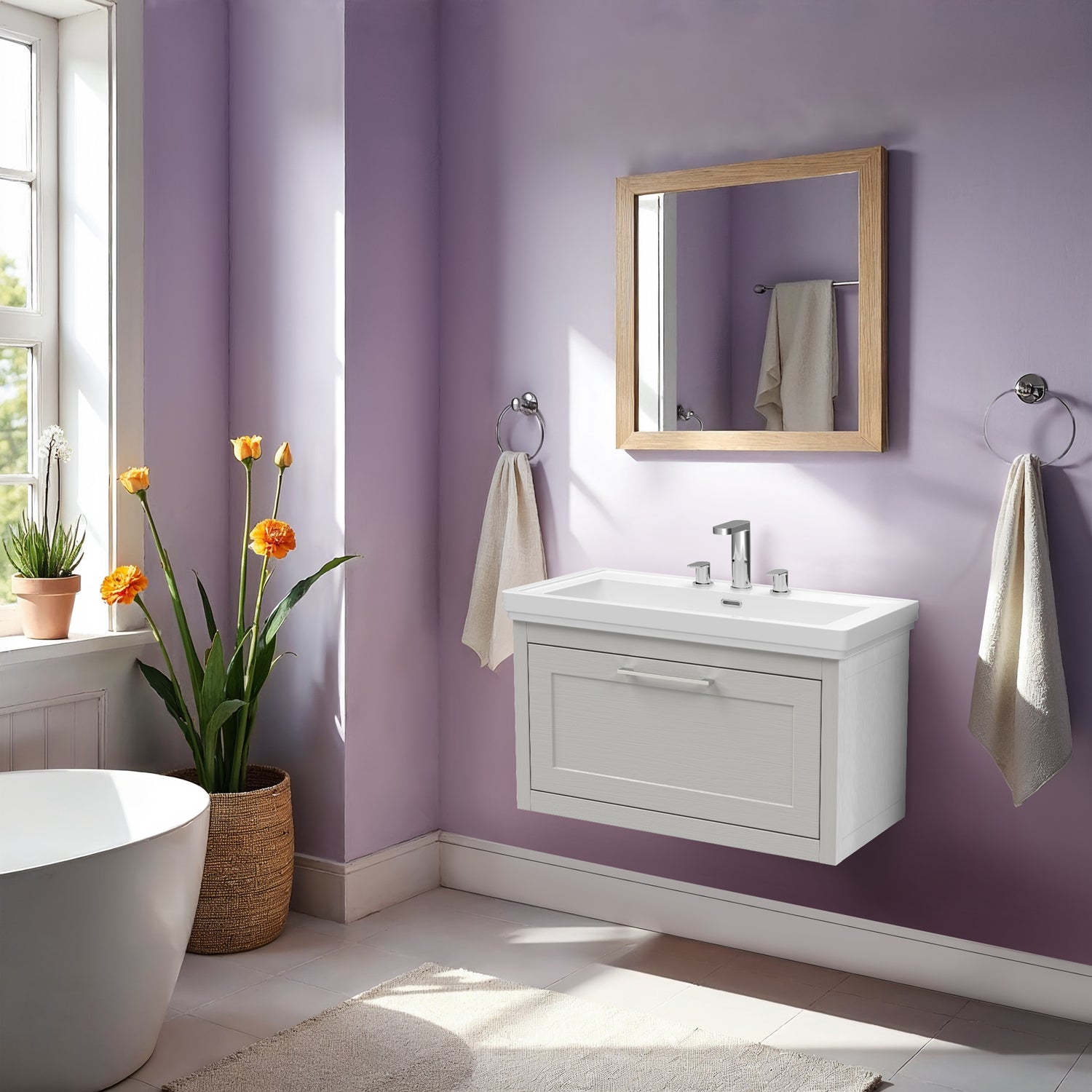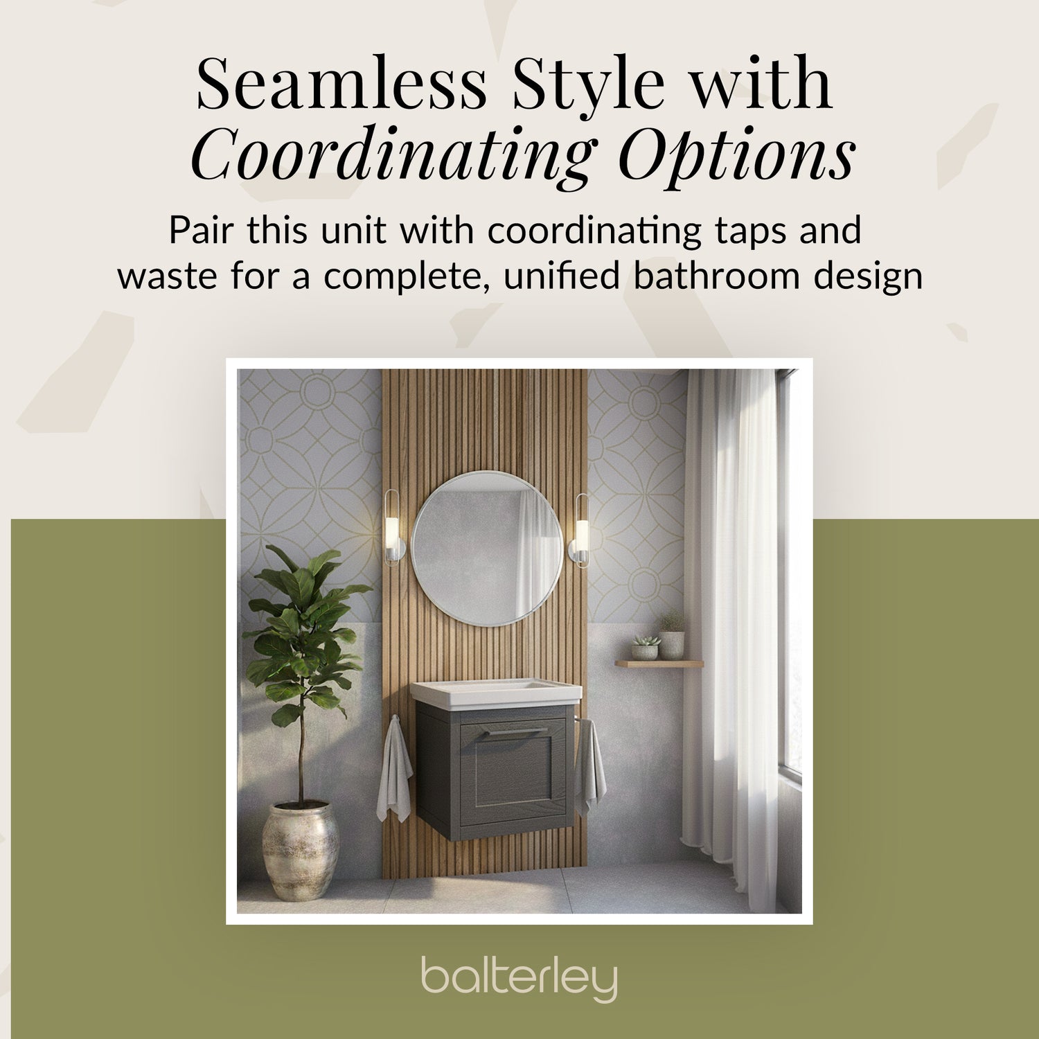 This wall-hung vanity unit from Balterley blends timeless shaker styling with contemporary function—perfect for bathrooms where design and practicality go hand in hand. Its floating silhouette brings a sense of space and calm, while the deep soft-close drawer keeps everyday items neatly stored away. Thoughtfully crafted and built to last, it’s a piece designed to support modern routines while honouring classic design principles.