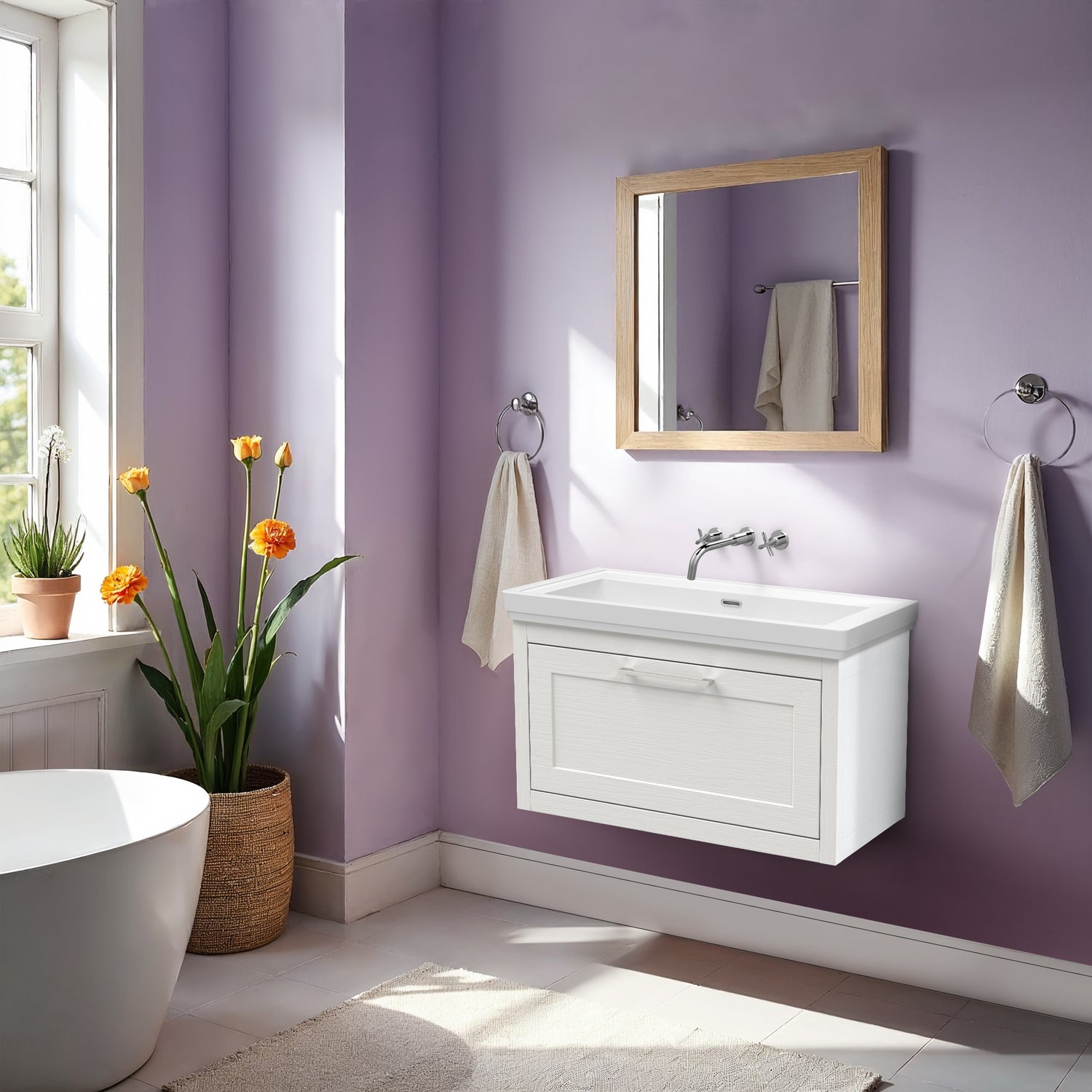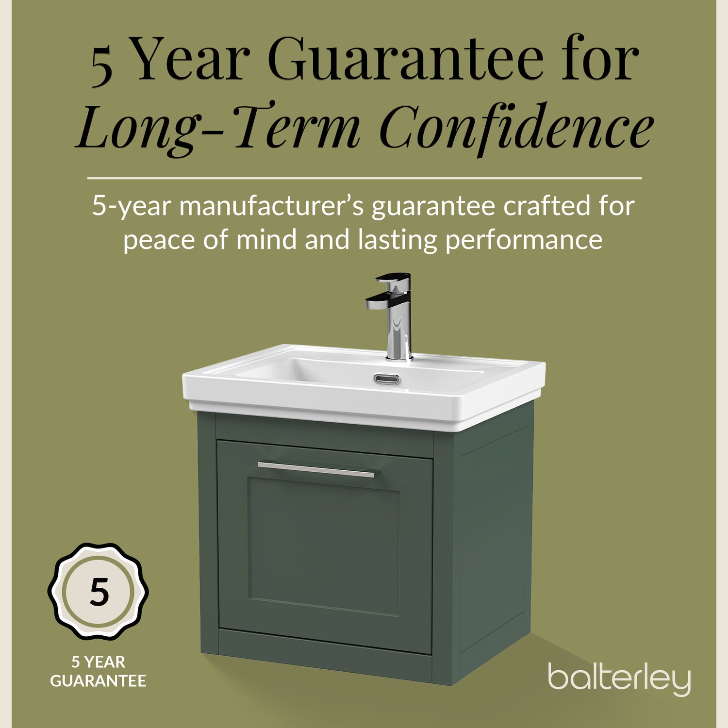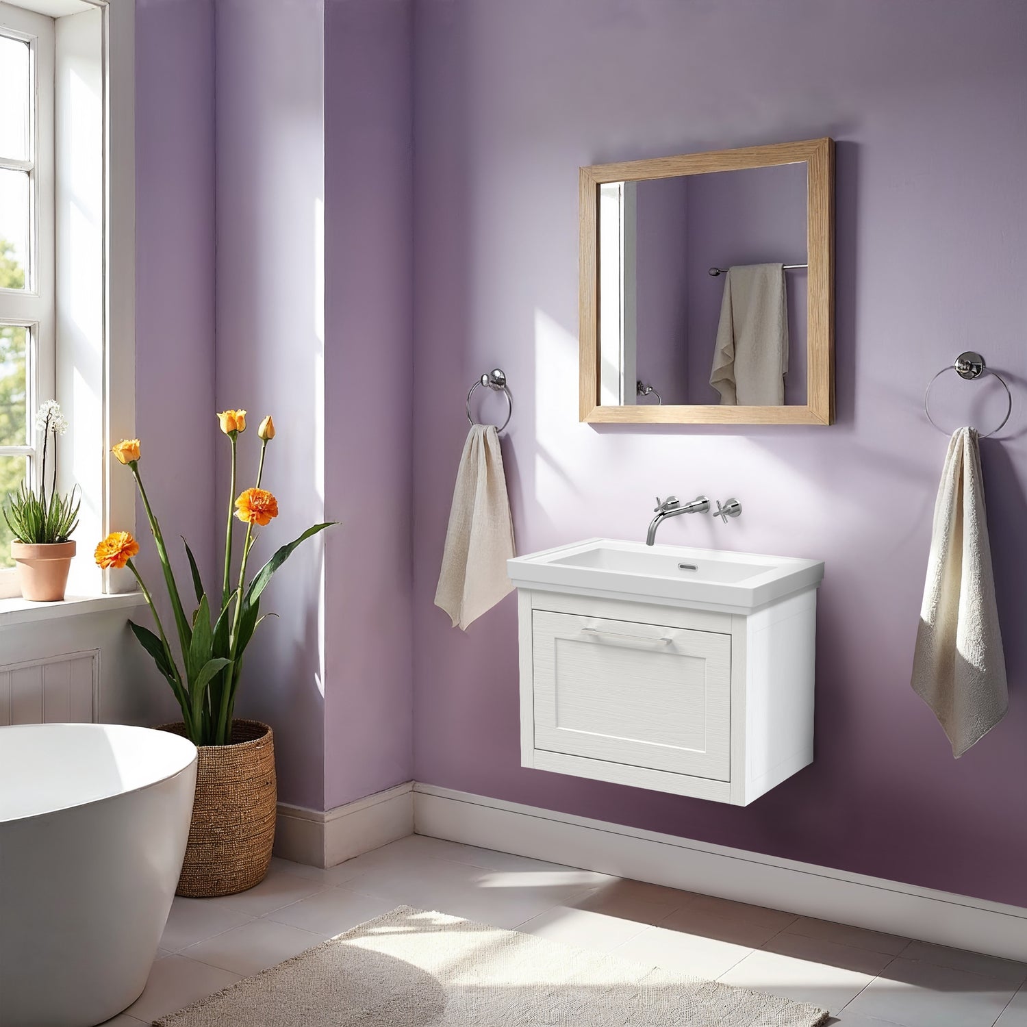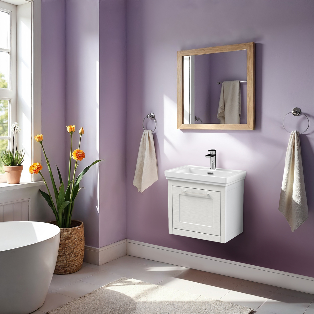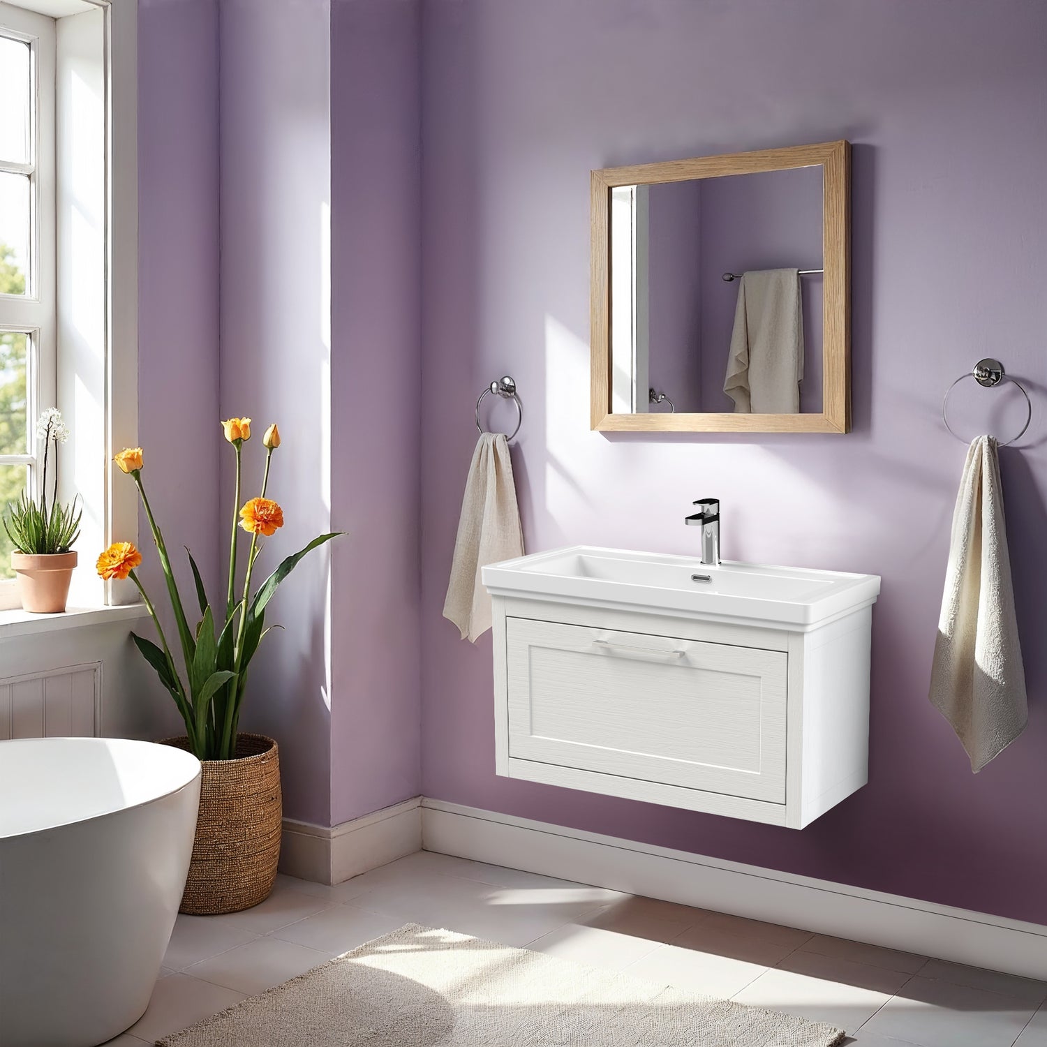 This wall-hung vanity unit from Balterley blends timeless shaker styling with contemporary function—perfect for bathrooms where design and practicality go hand in hand. Its floating silhouette brings a sense of space and calm, while the deep soft-close drawer keeps everyday items neatly stored away. Thoughtfully crafted and built to last, it’s a piece designed to support modern routines while honouring classic design principles.