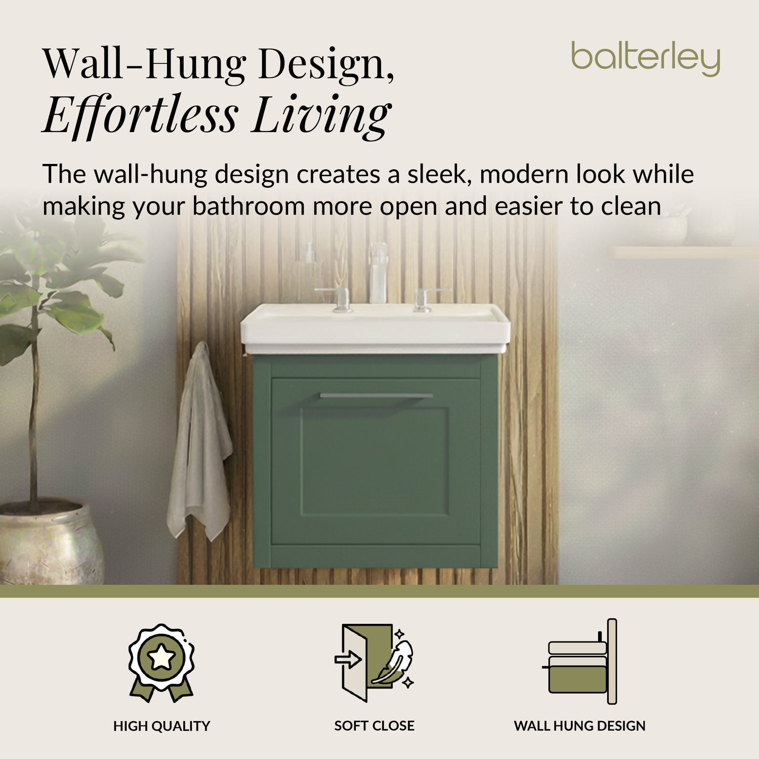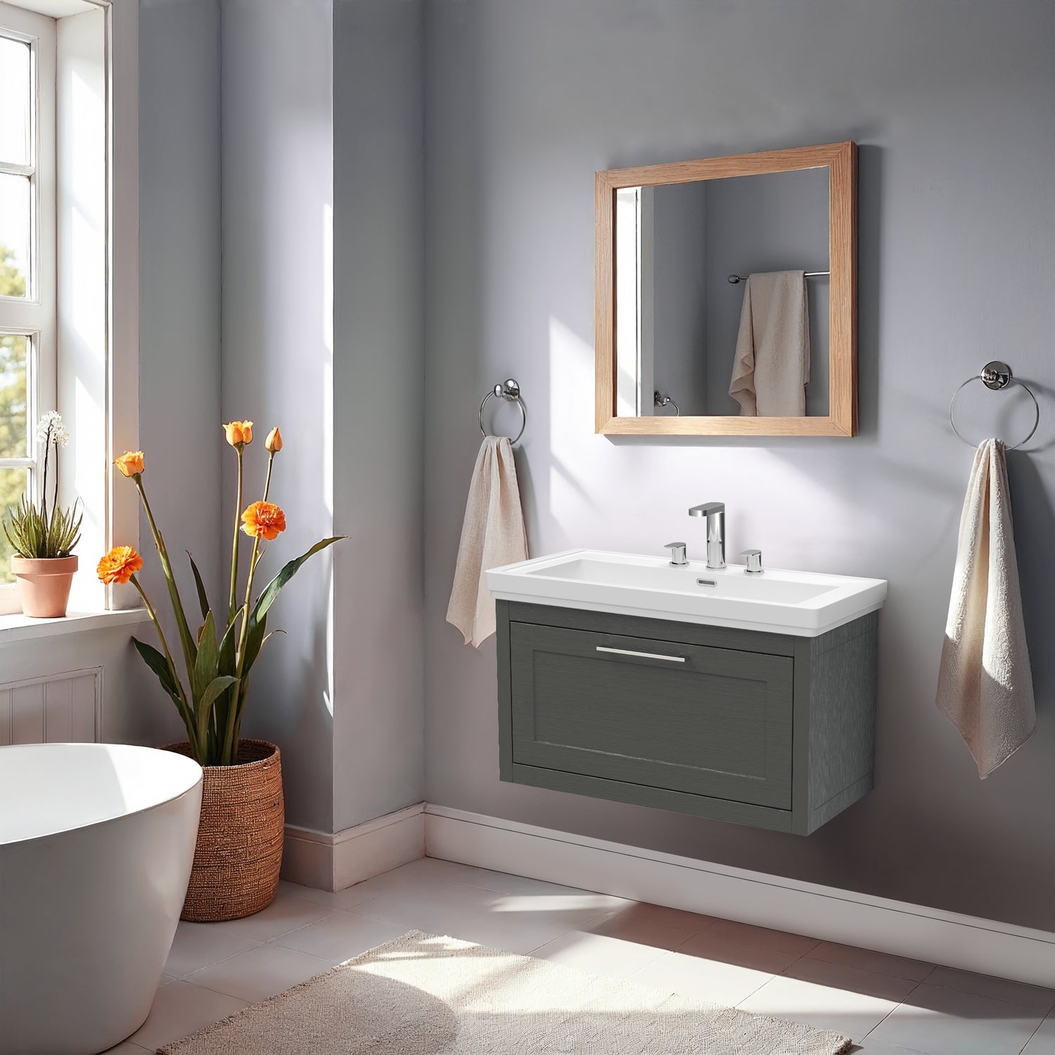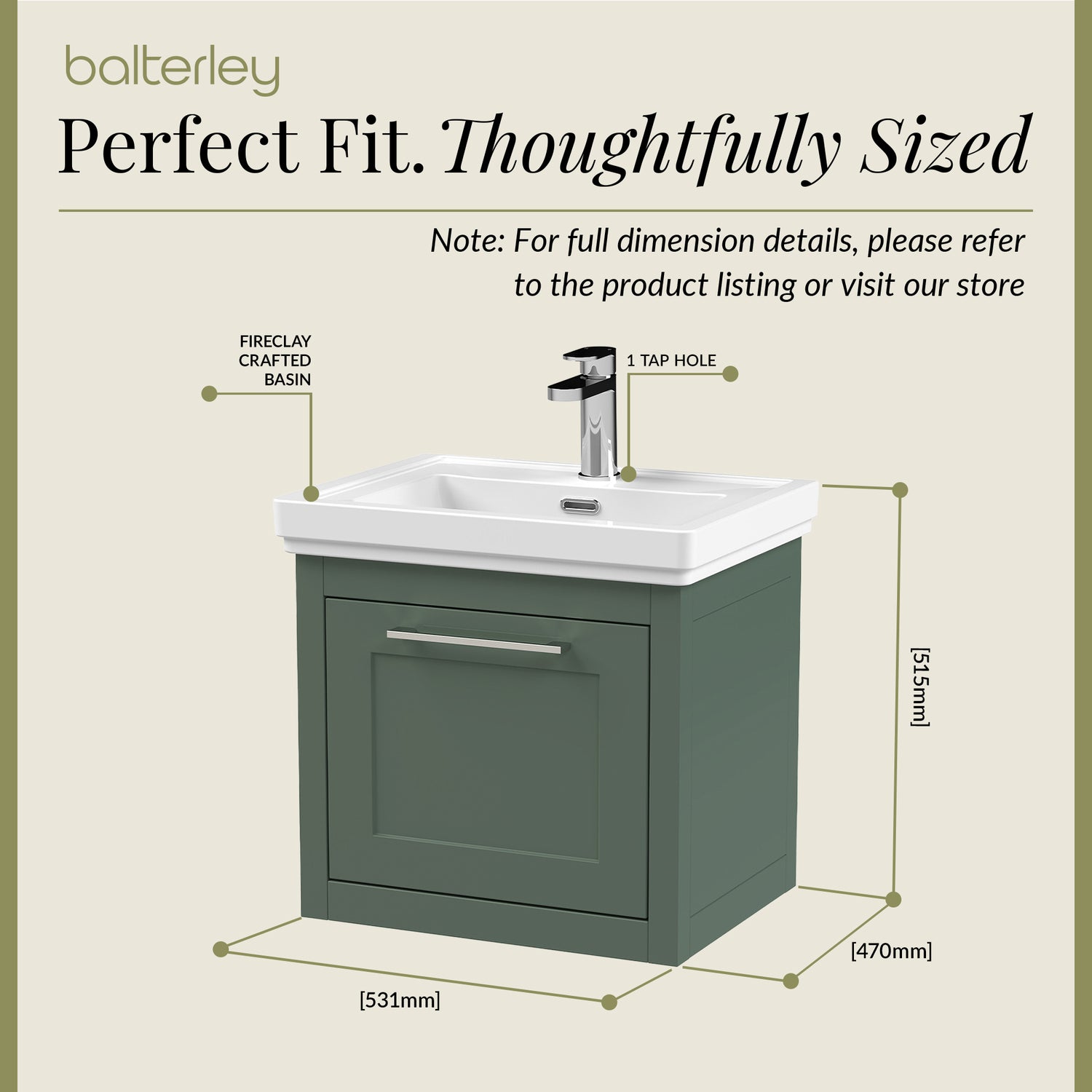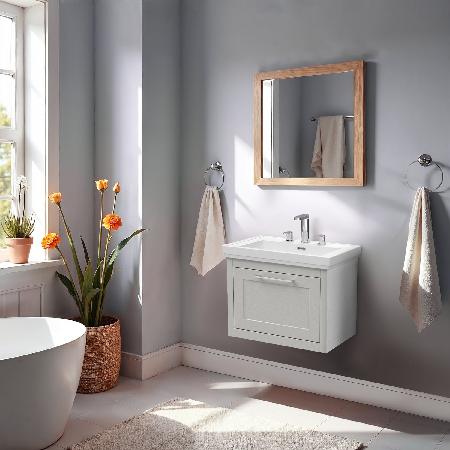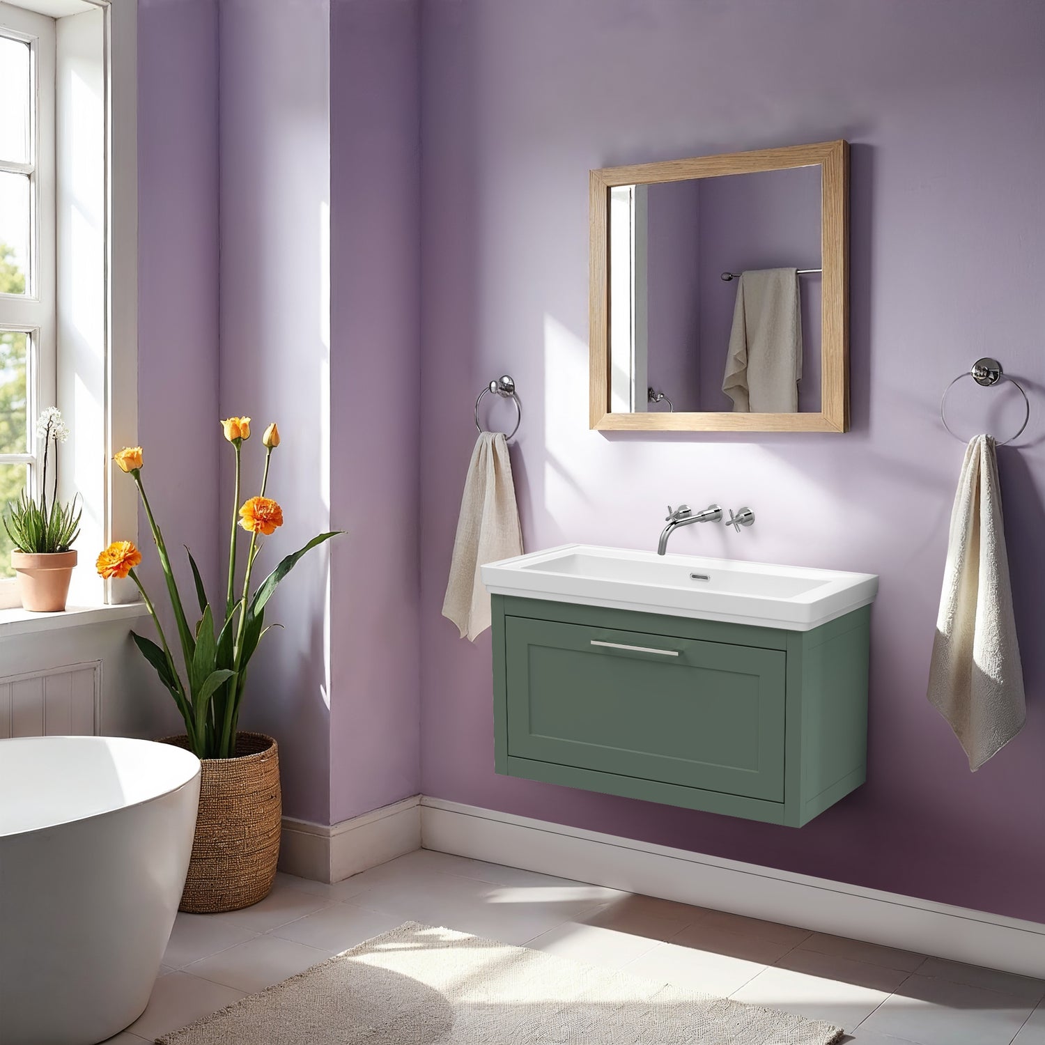 This wall-hung vanity unit from Balterley blends timeless shaker styling with contemporary function—perfect for bathrooms where design and practicality go hand in hand. Its floating silhouette brings a sense of space and calm, while the deep soft-close drawer keeps everyday items neatly stored away. Thoughtfully crafted and built to last, it’s a piece designed to support modern routines while honouring classic design principles.