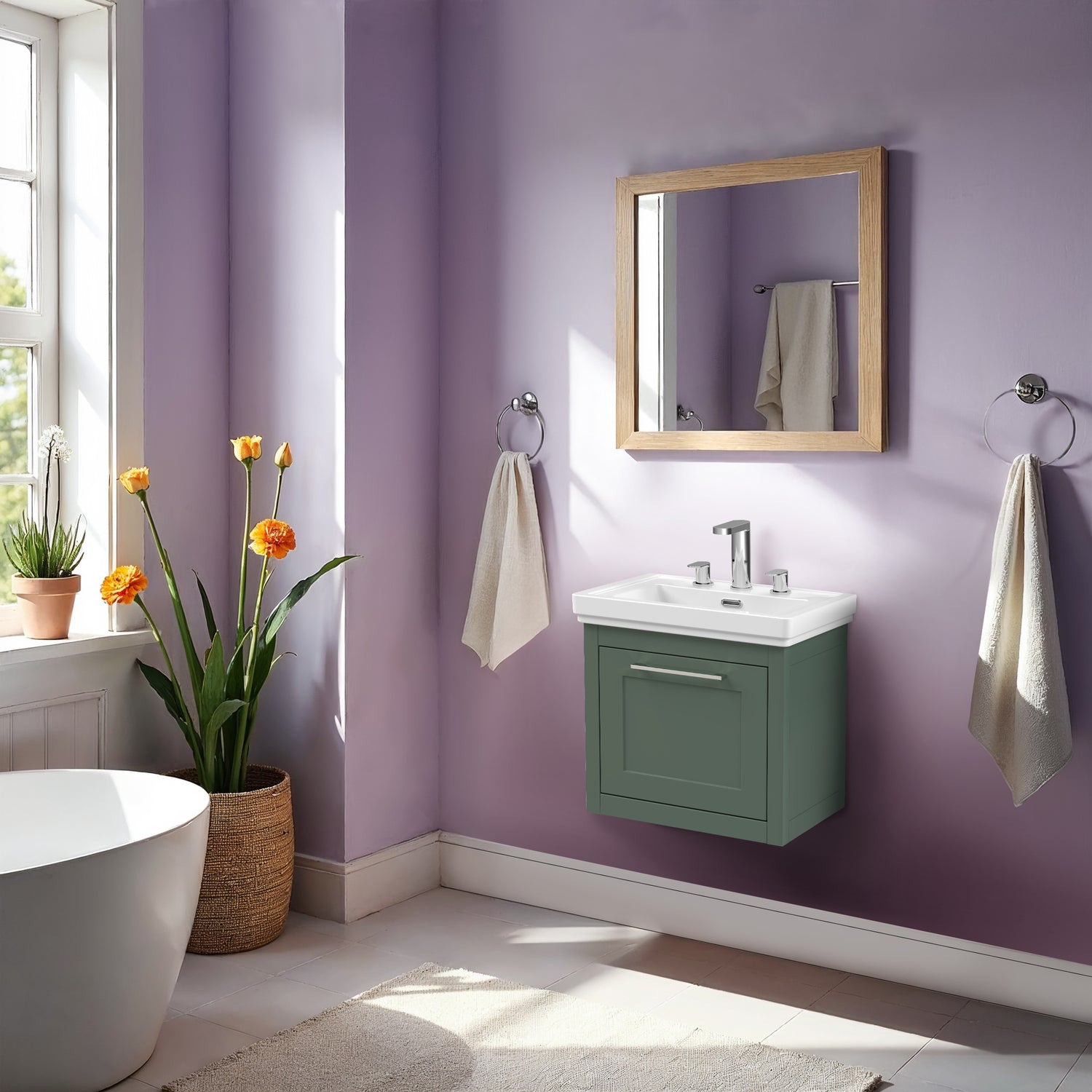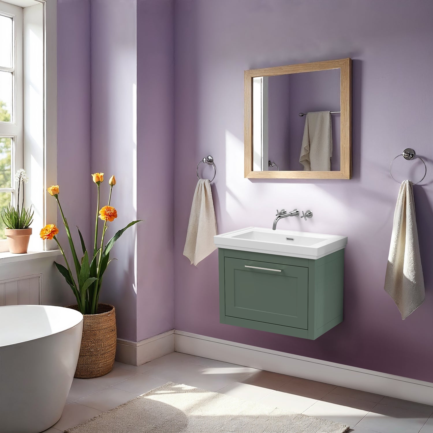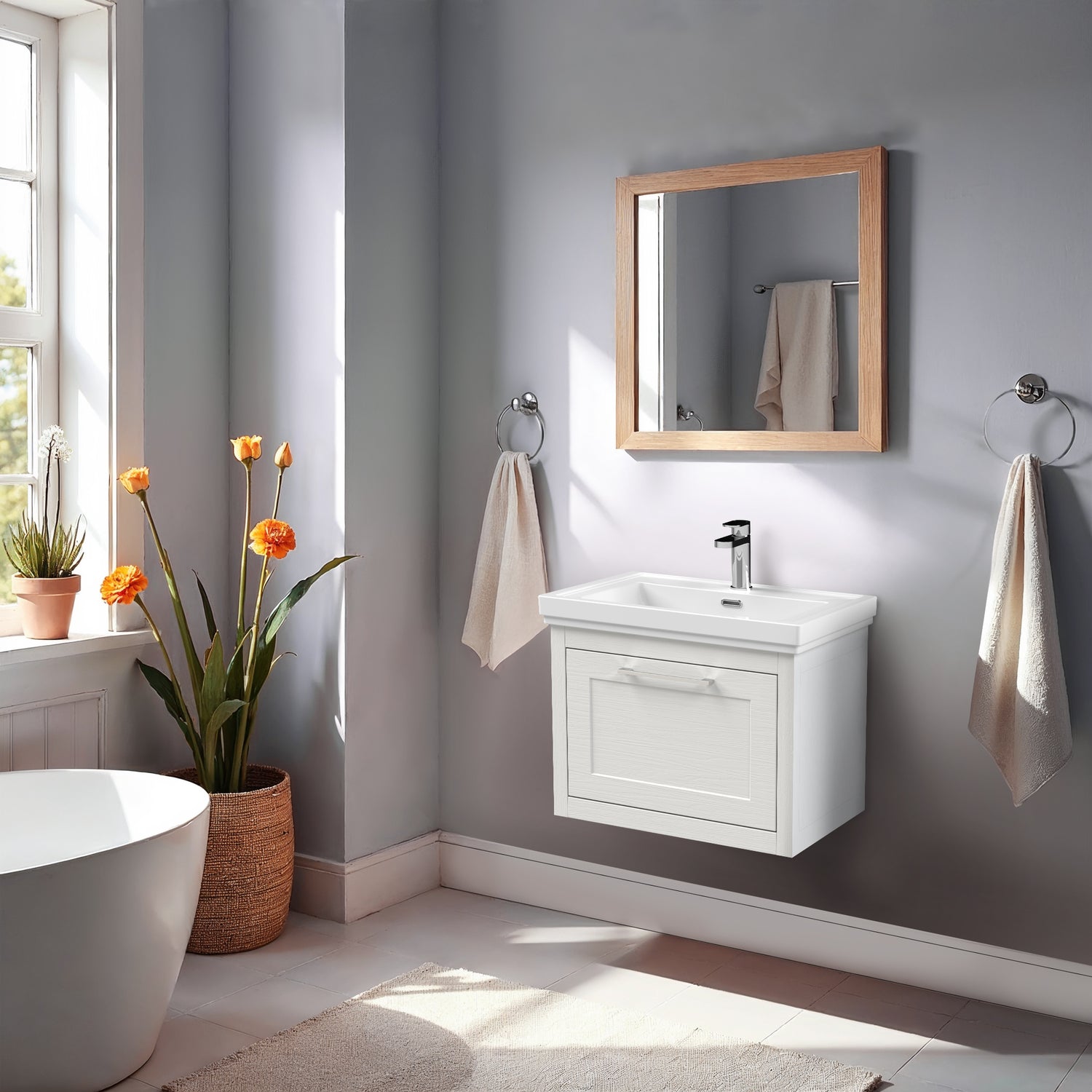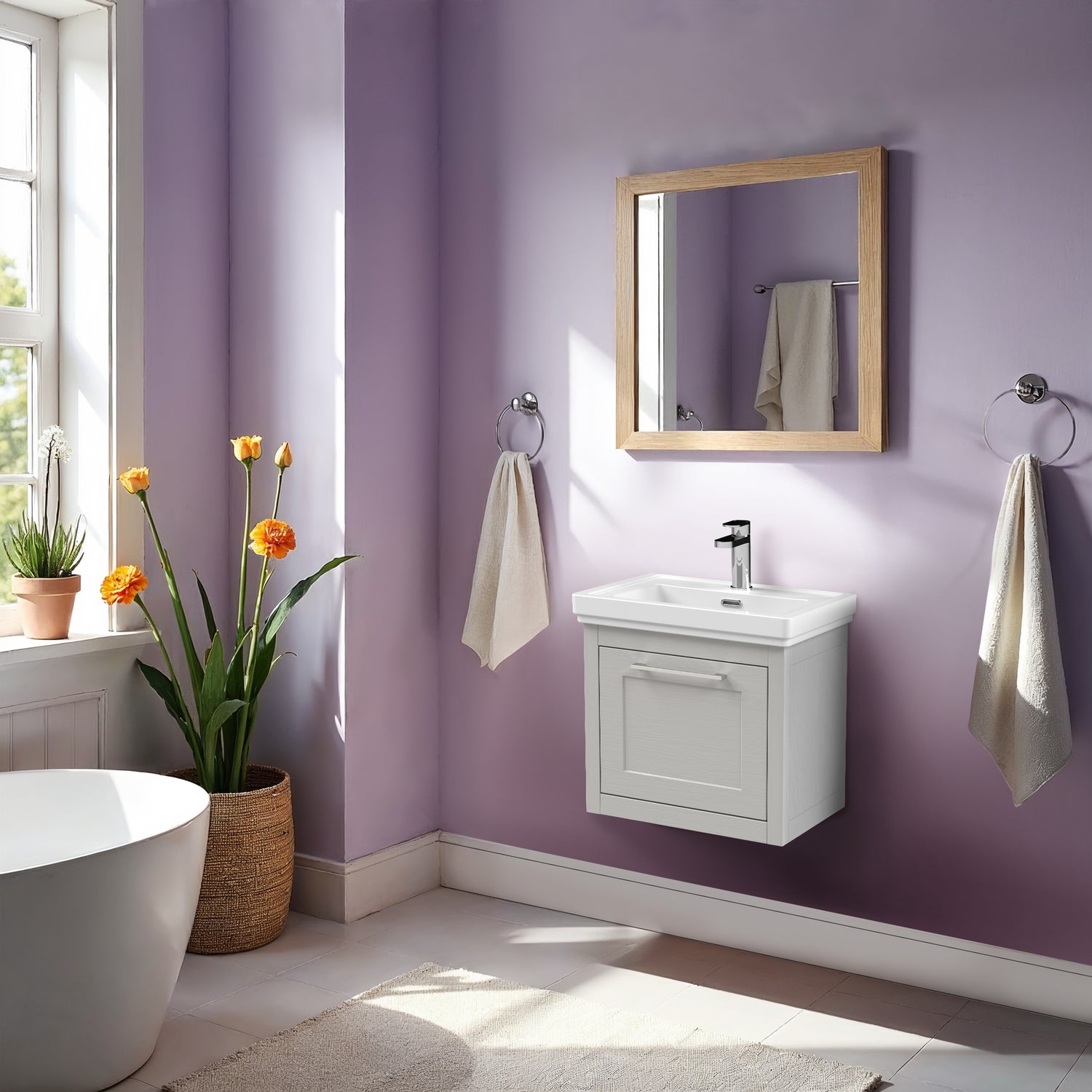 This wall-hung vanity unit from Balterley blends timeless shaker styling with contemporary function—perfect for bathrooms where design and practicality go hand in hand. Its floating silhouette brings a sense of space and calm, while the deep soft-close drawer keeps everyday items neatly stored away. Thoughtfully crafted and built to last, it’s a piece designed to support modern routines while honouring classic design principles.