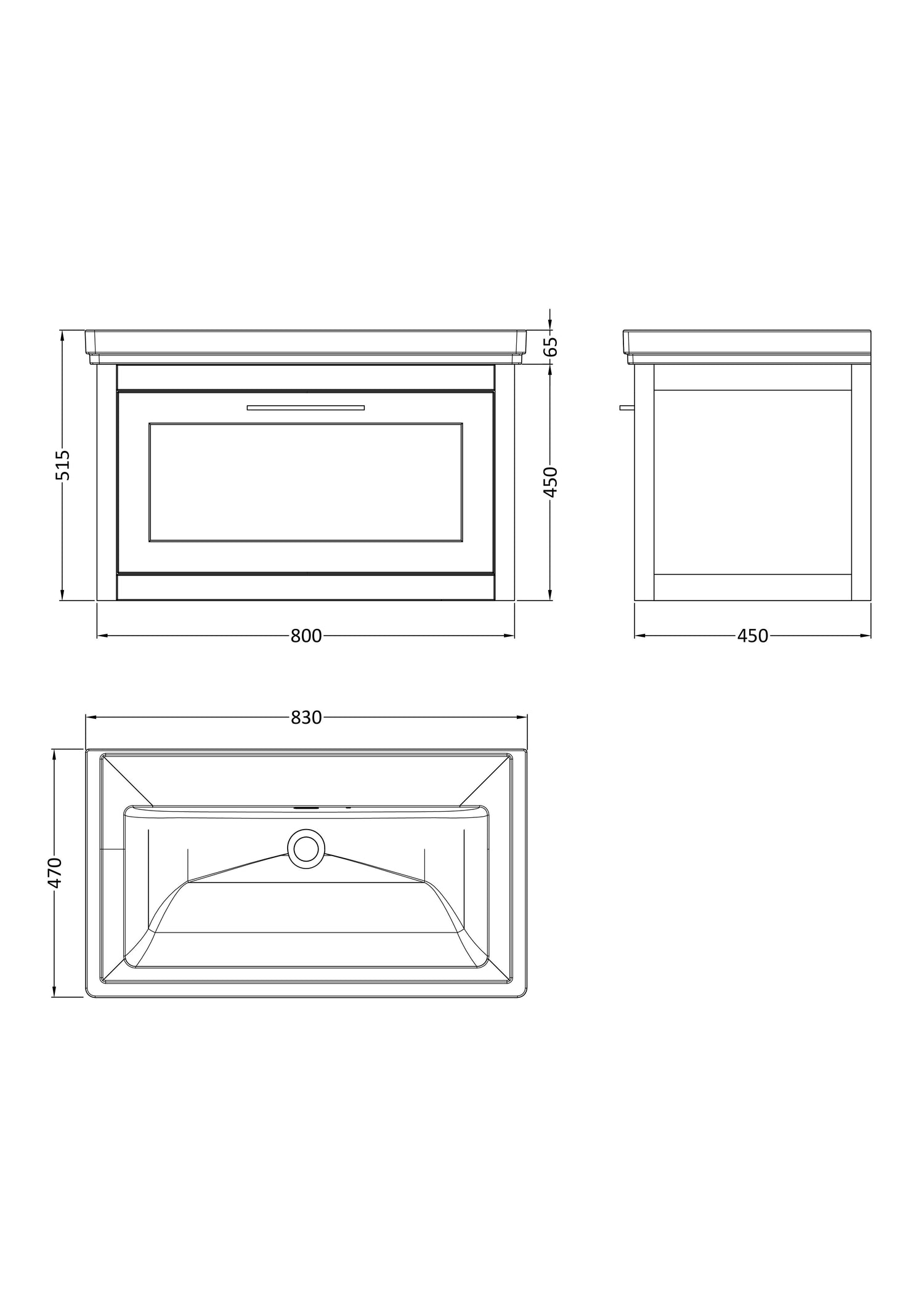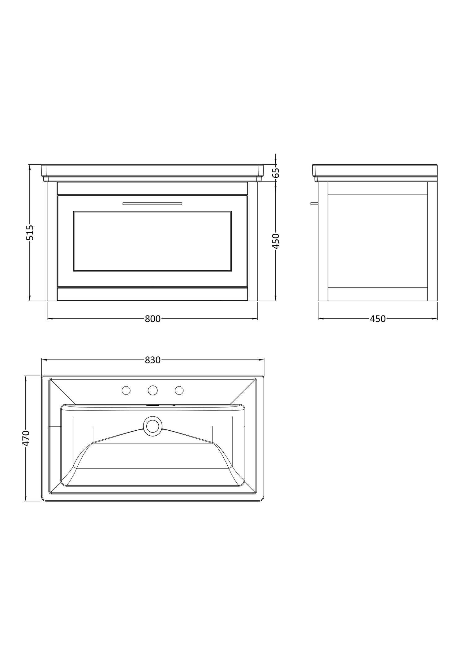 Traditional Wall Hung Vanity Basin Unit with Fireclay Basin - Choice of Size, Colour and Basin Type