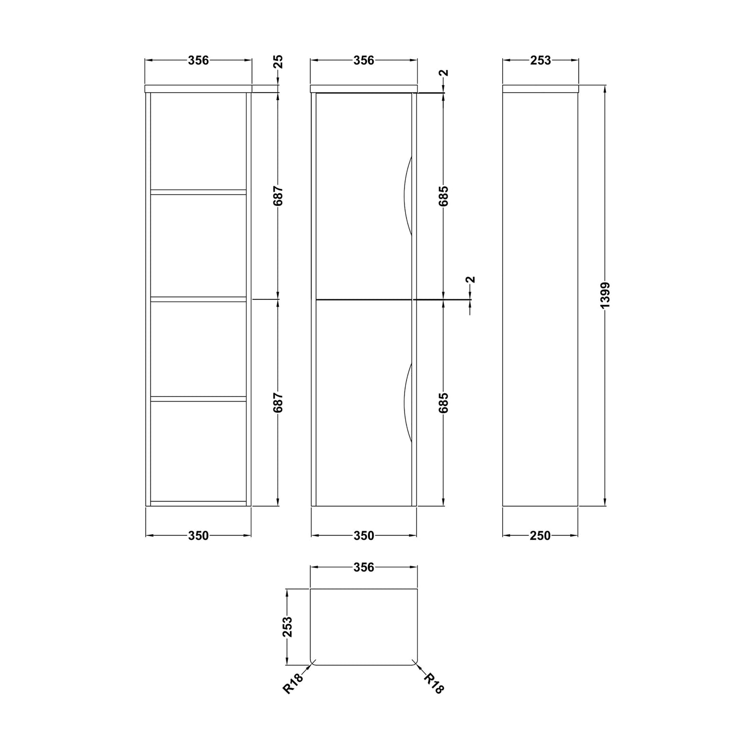 Wall Hung Tall Bathroom Storage Unit 1399 x 356 x 253mm - Choice of Colour - Dark Grey is backordered and will ship as soon as it is back in stock.